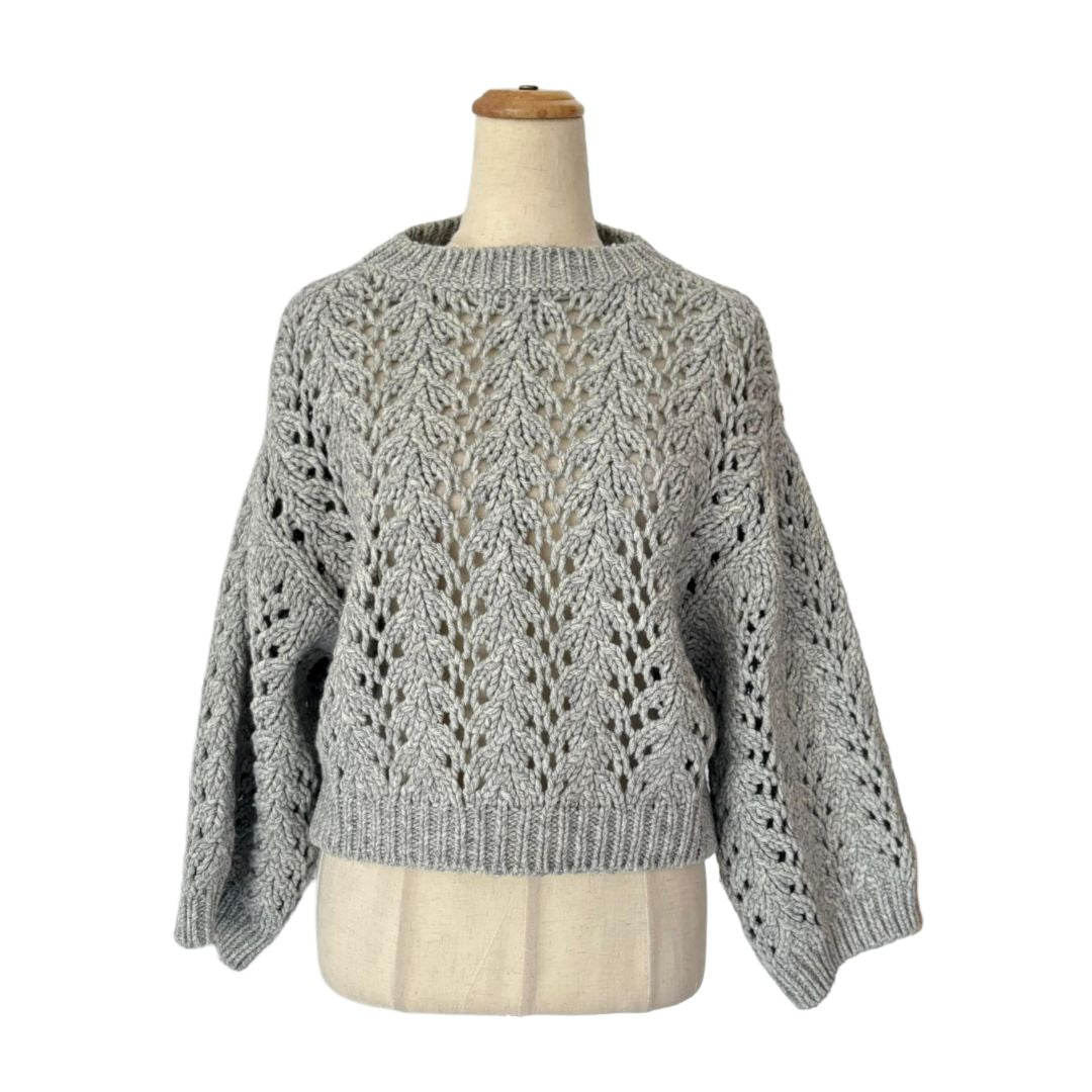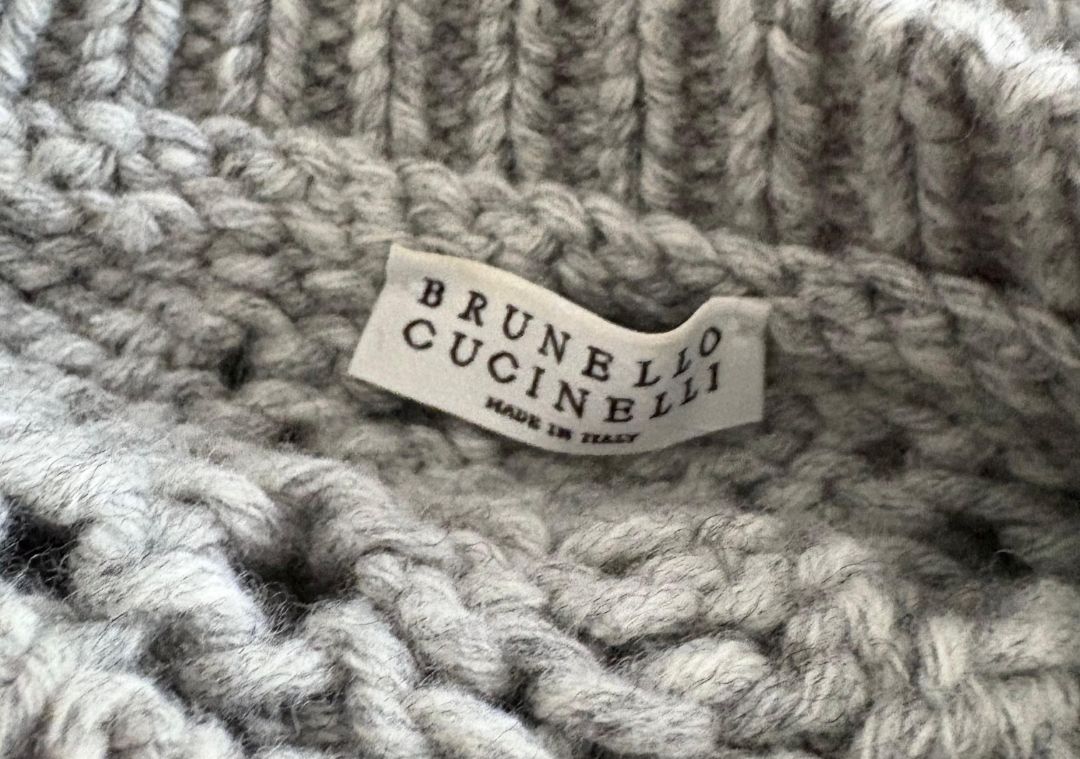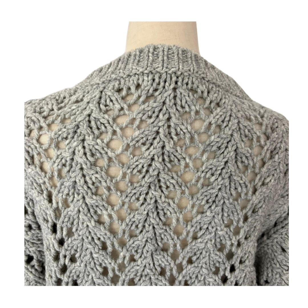Brunello Cucinelli Grey Crochette Long Sleeve Sweater