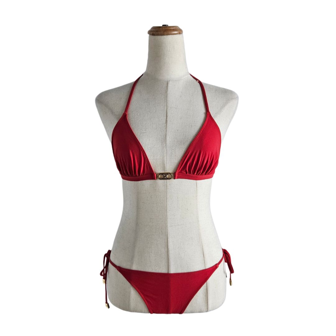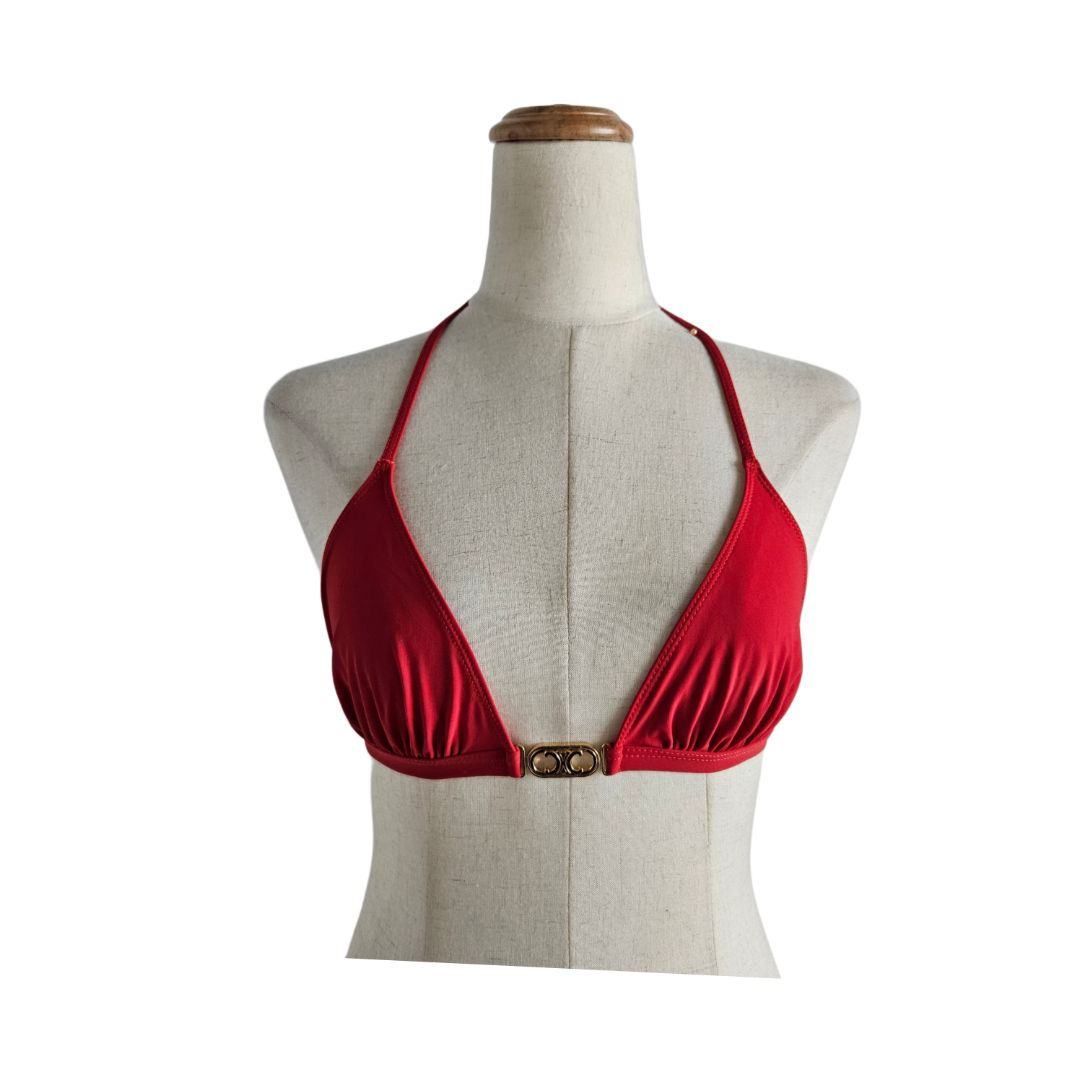 Celine Red Triomphe Logo Two Piece Swimsuit