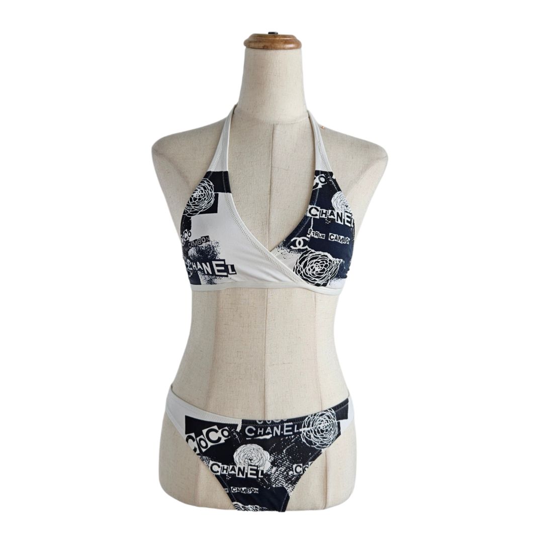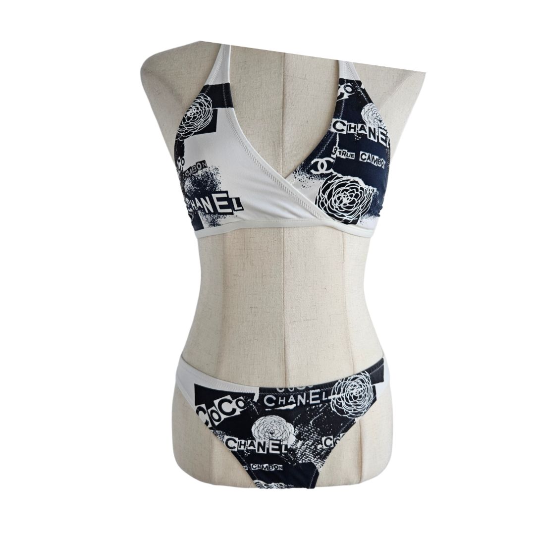 Chanel Black/White Coco 31 Rue Cambon Print Two Piece Swimsuit