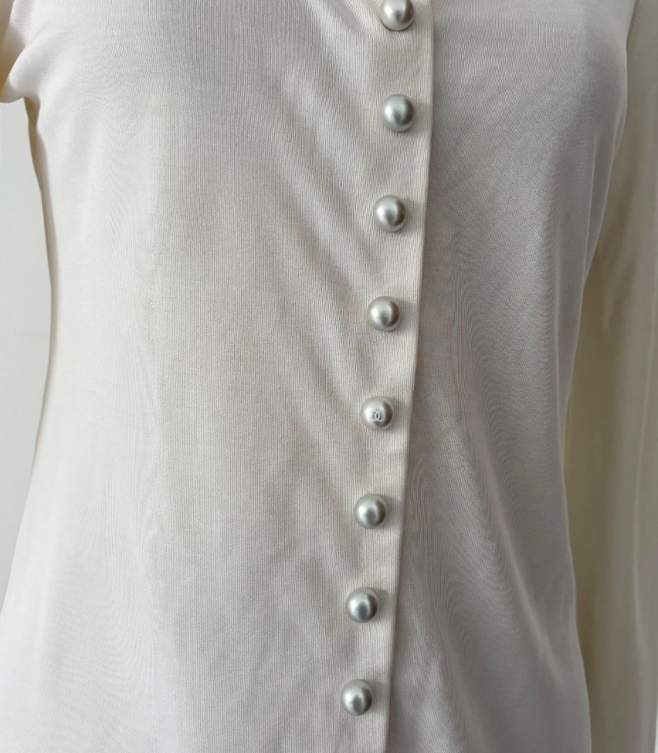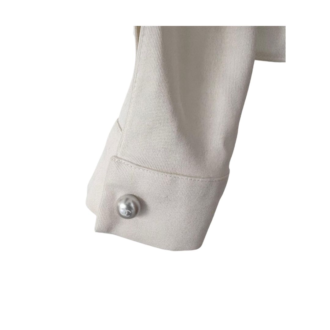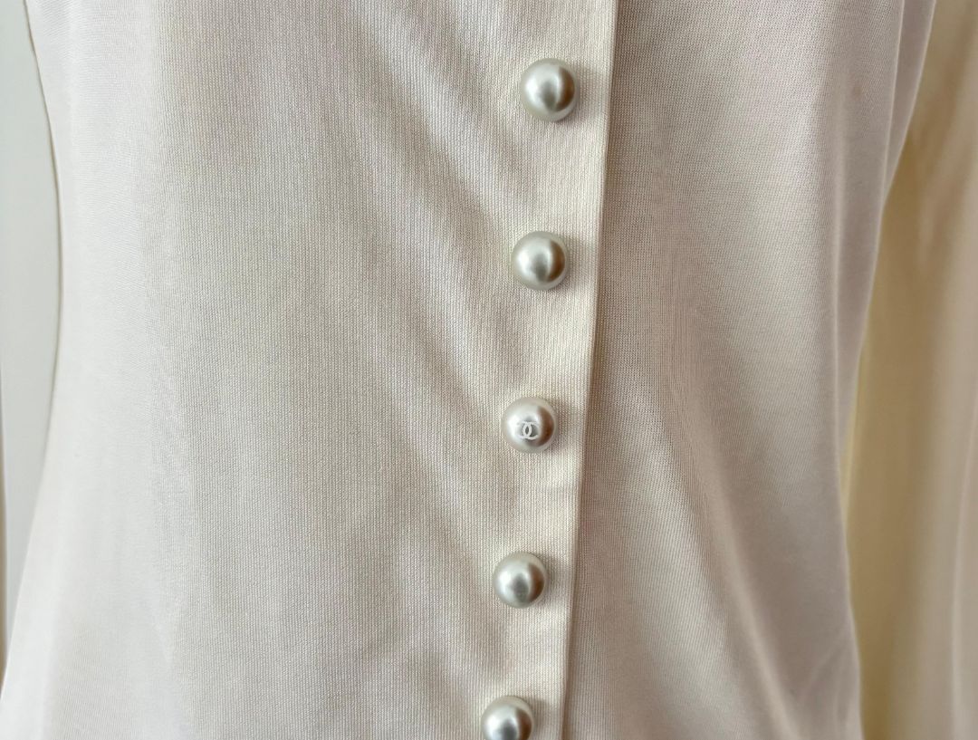 Chanel Long Sleeve Cream With Pearl Buttons Blouse