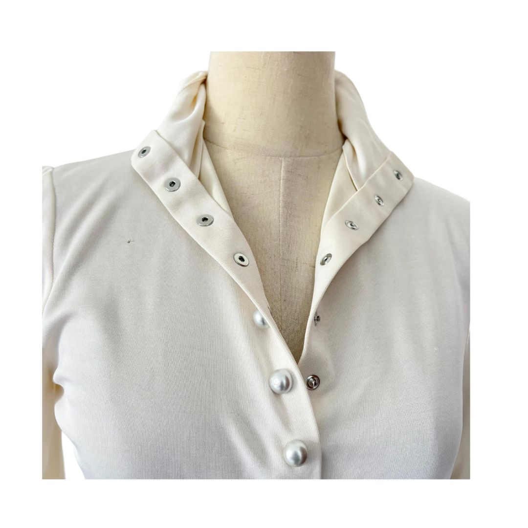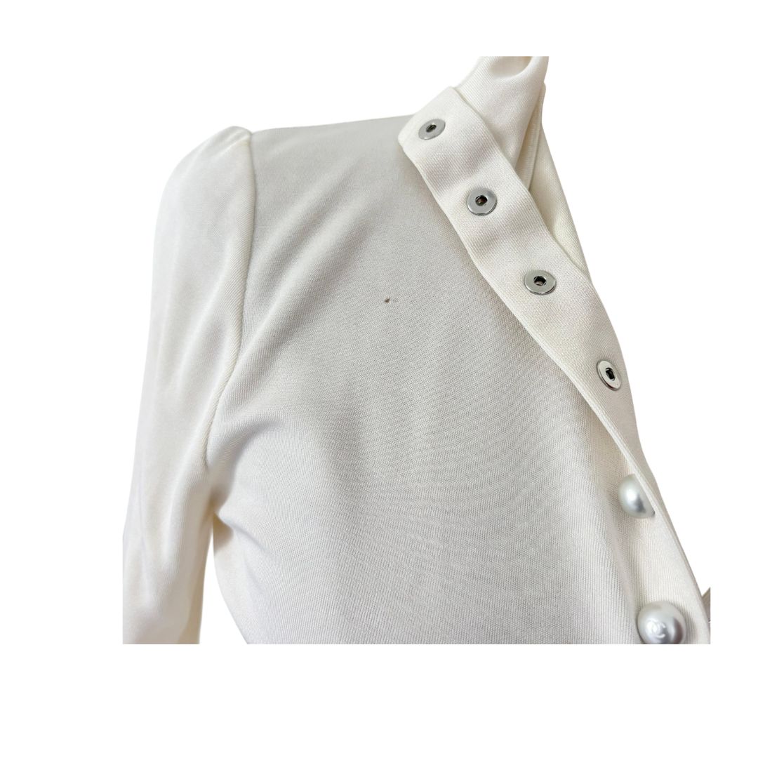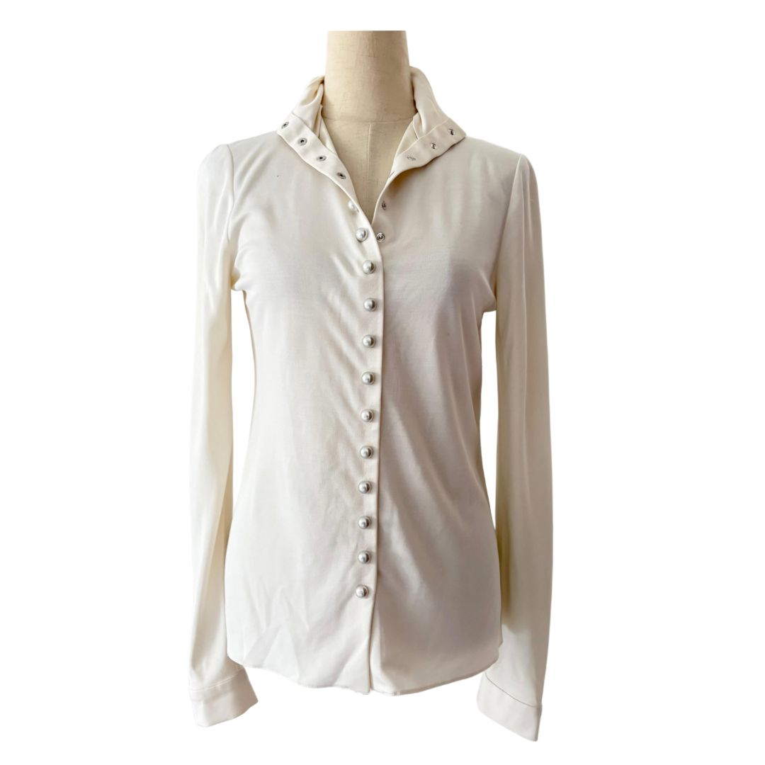 Chanel Long Sleeve Cream With Pearl Buttons Blouse