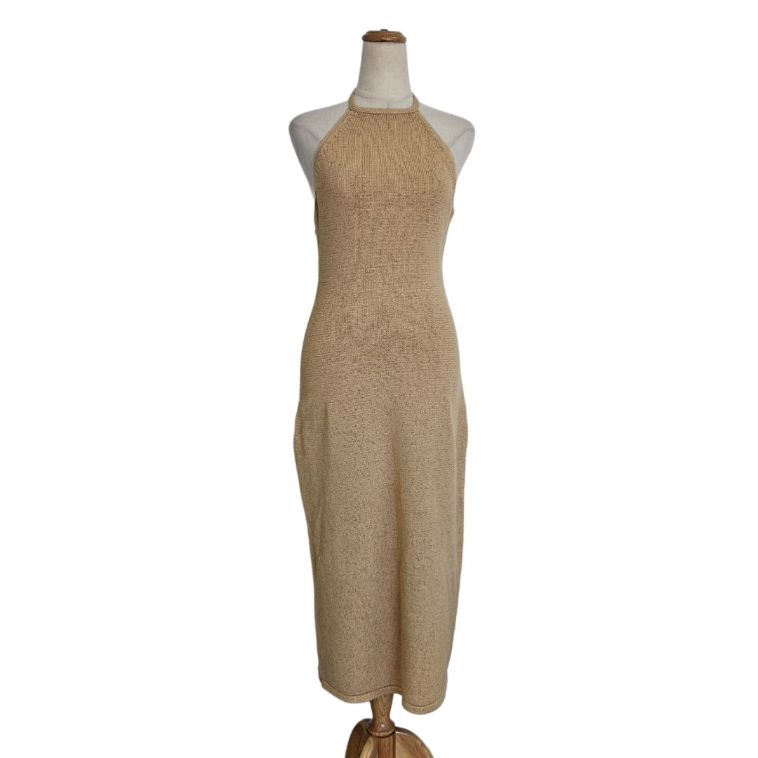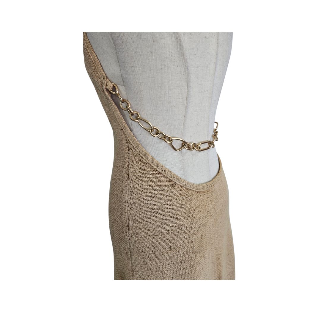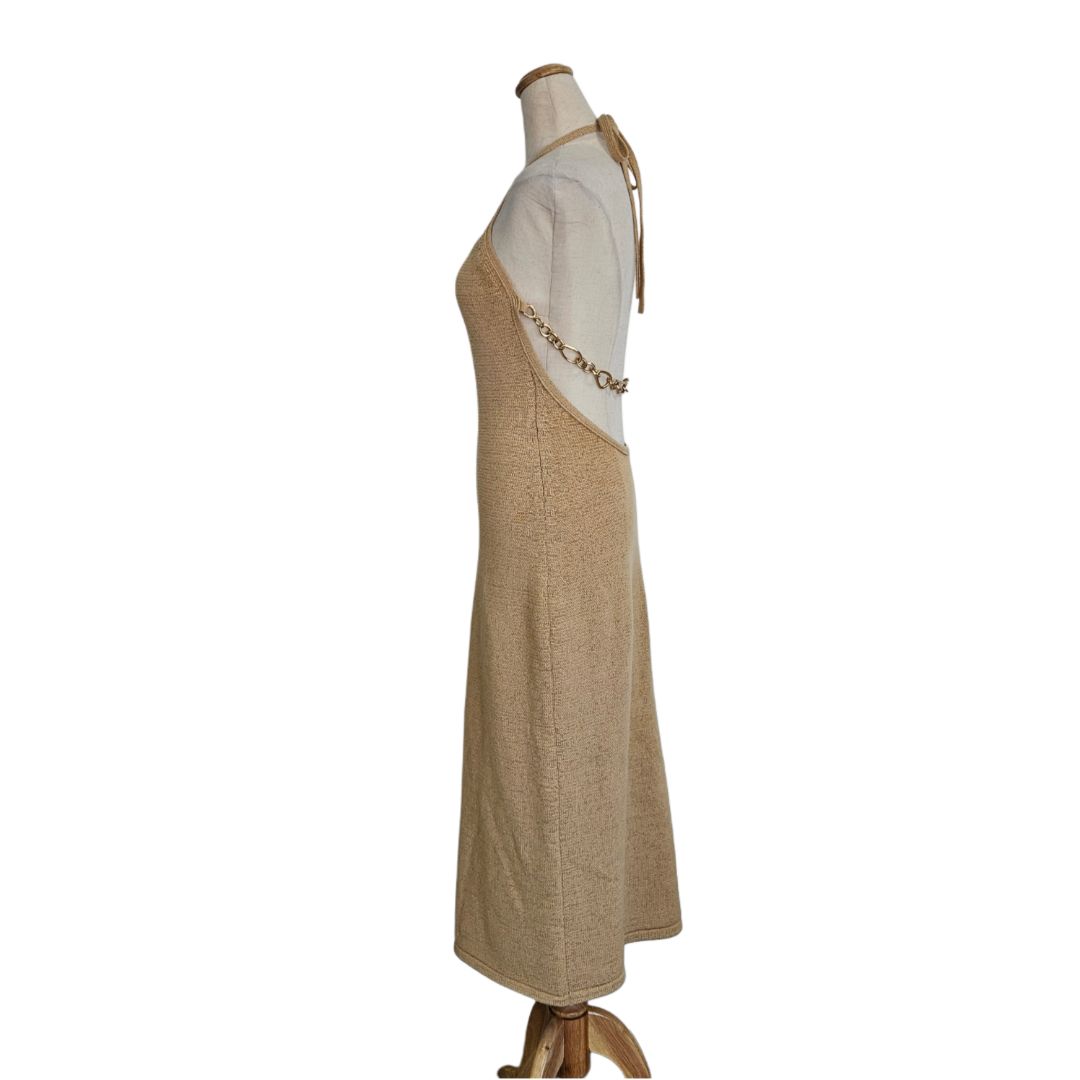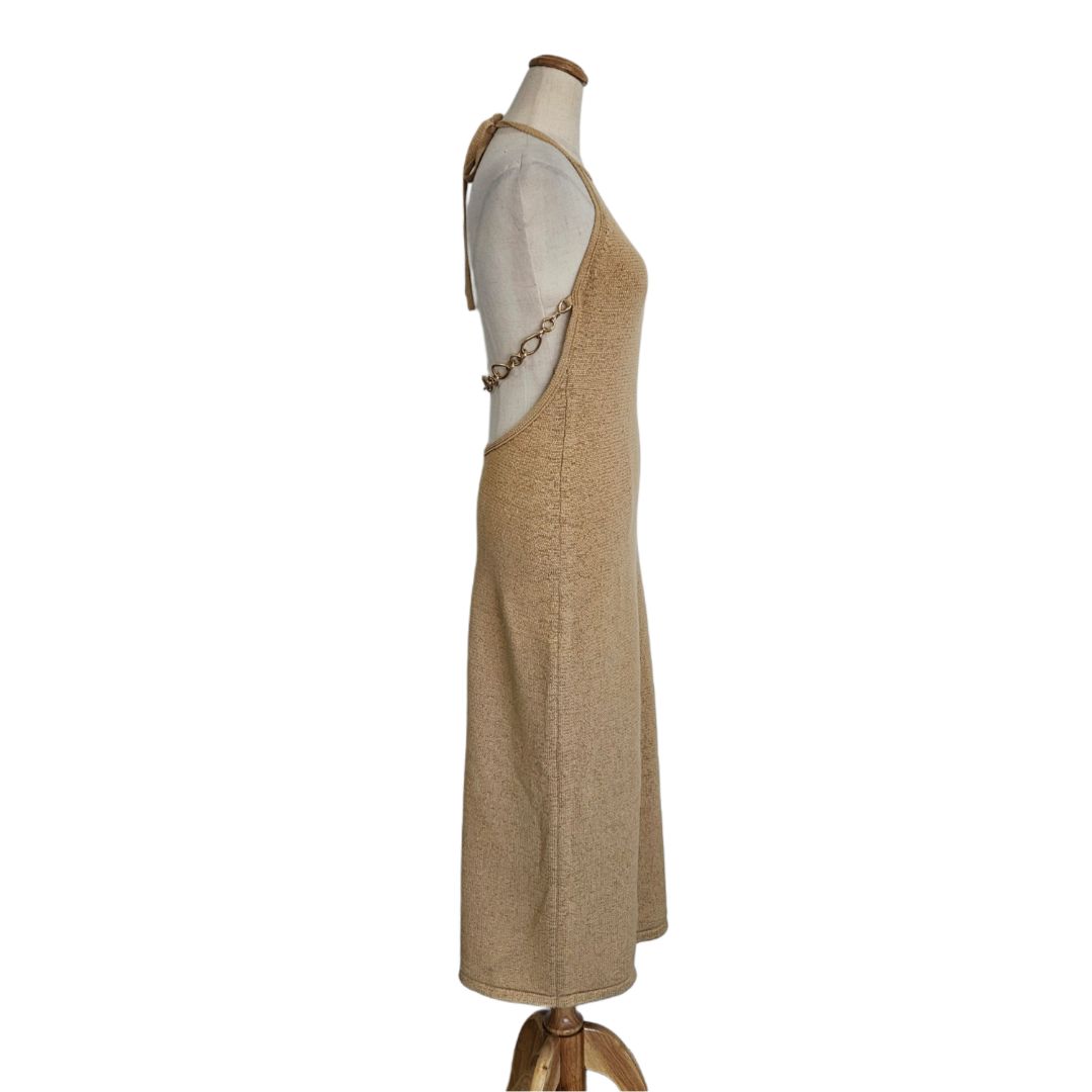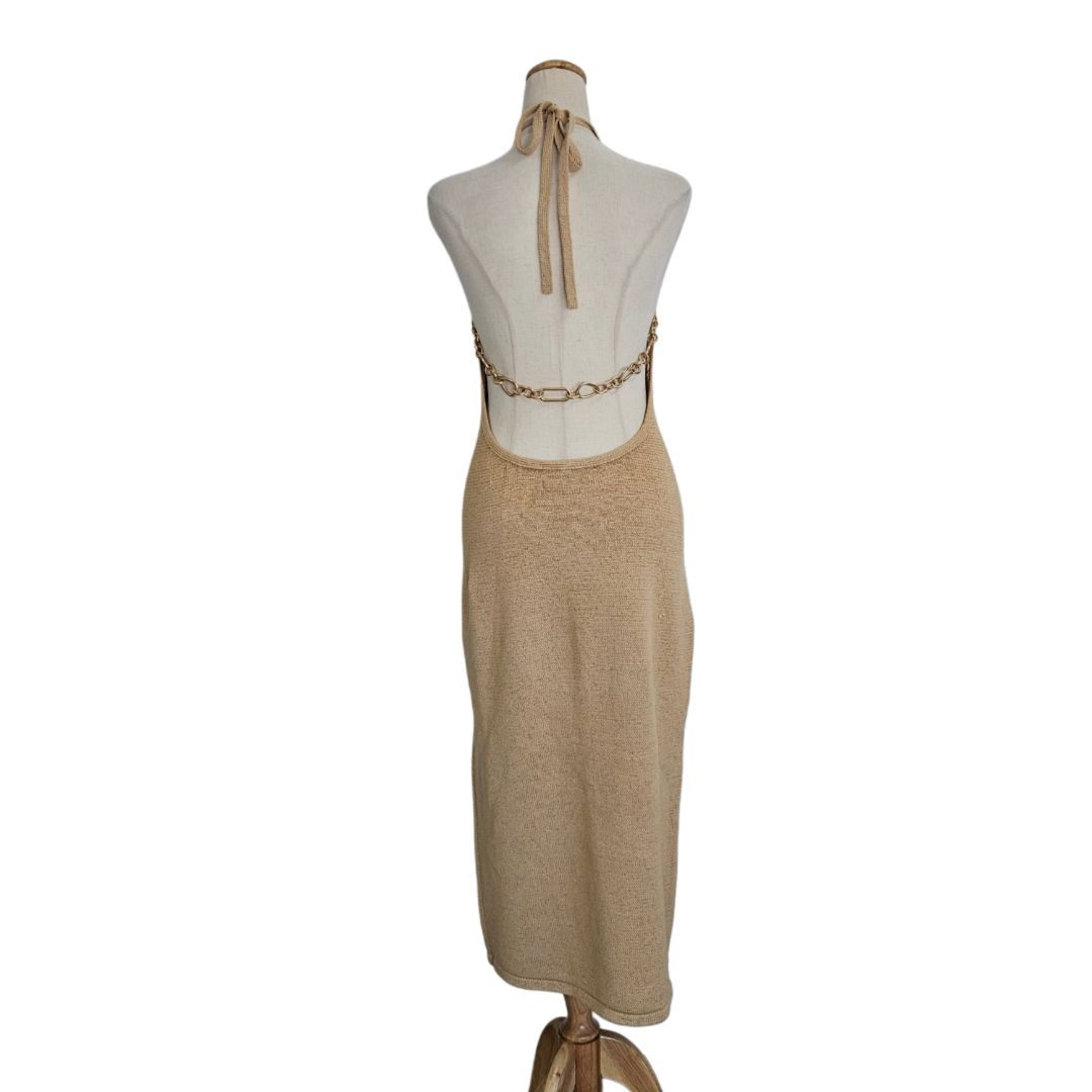Cult Gaia Tan Crochet With Chain Detail Midi Dress