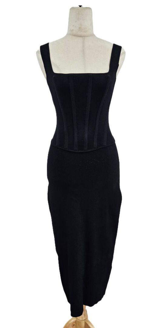 Dion Lee Black Pointelle Knit Corset Midi Dress