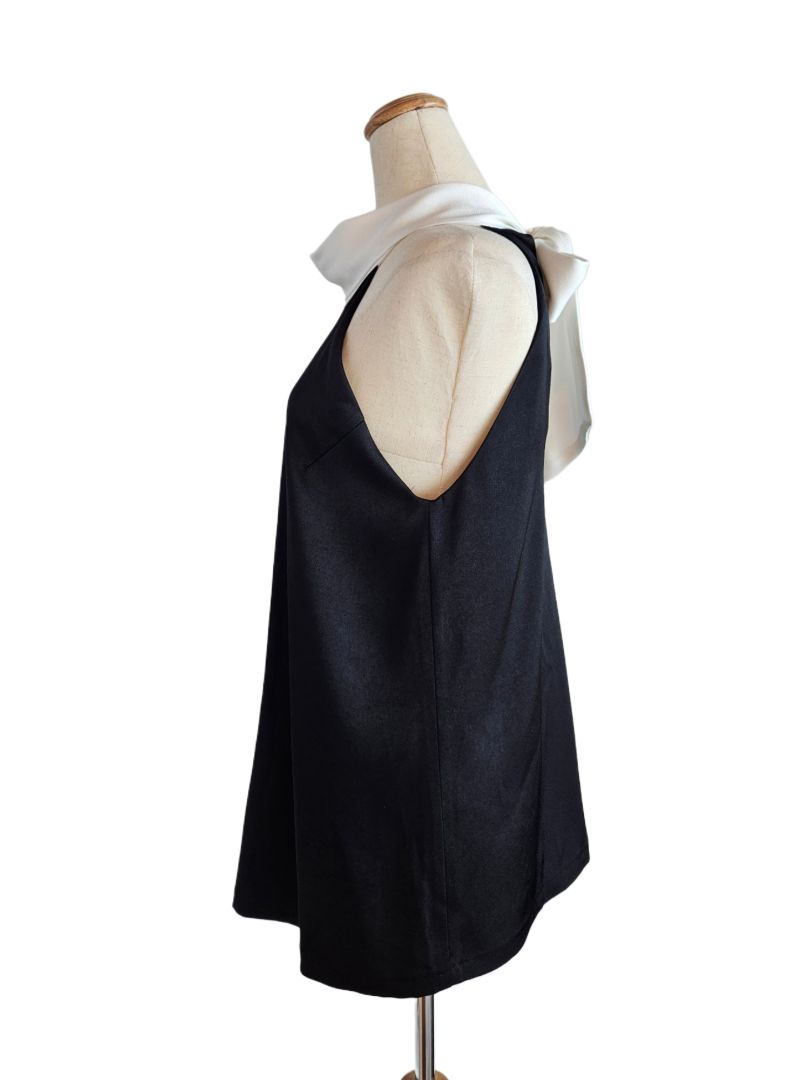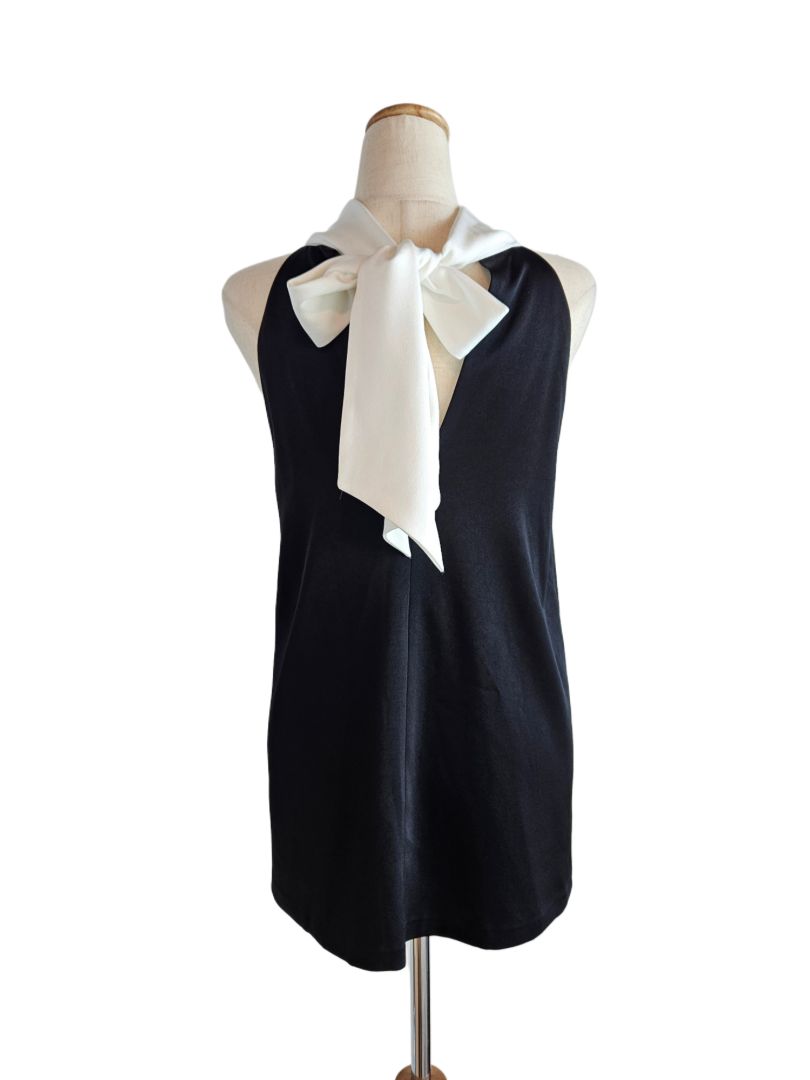 Galvan London Black & White Sash Neck Tunic Satin Crepe Top