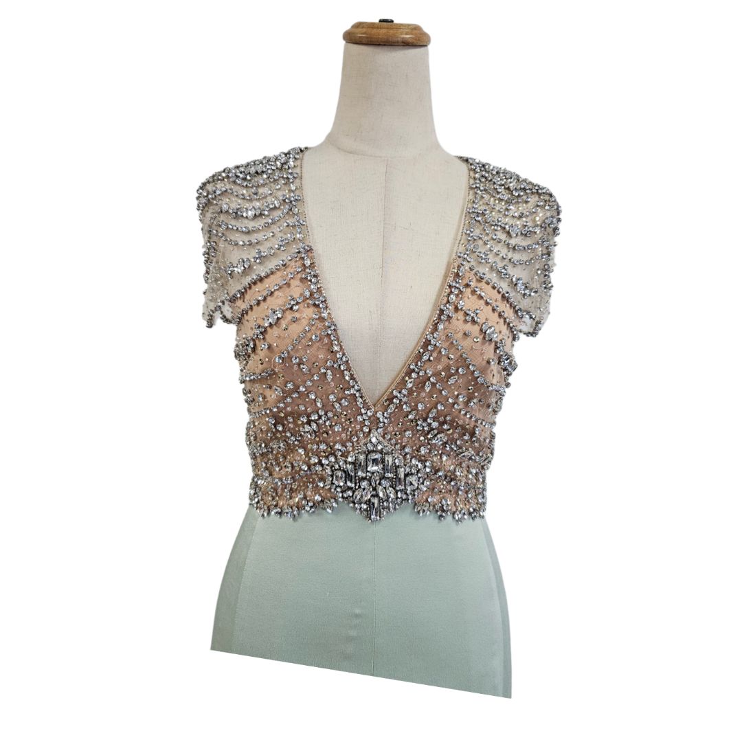 Jenny Packham Beige/Green Beaded Embellishes Wedding Gown