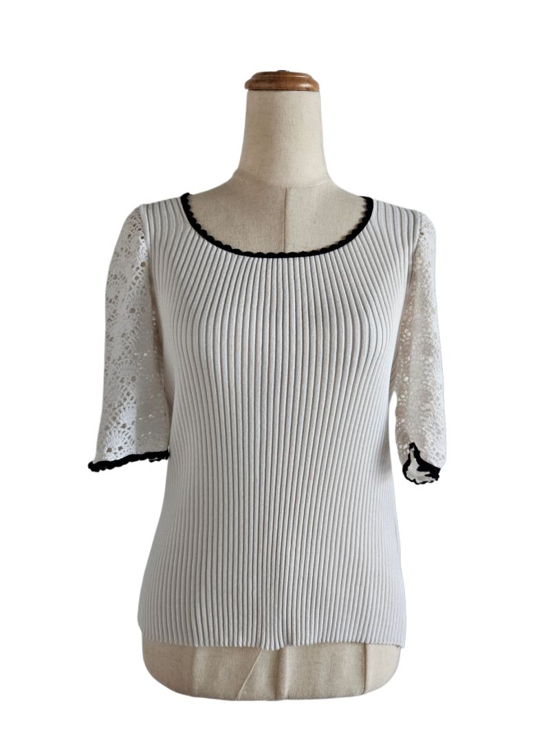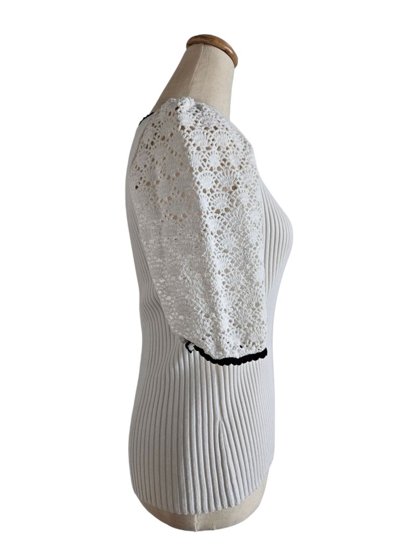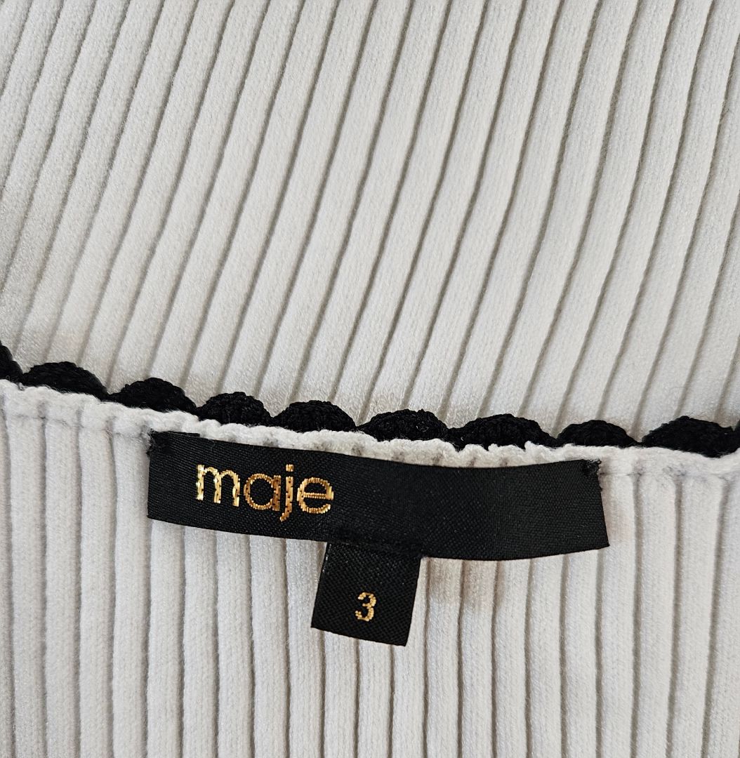 Maje White/Black W/ Embroidered Sleeve Detail Rib Top