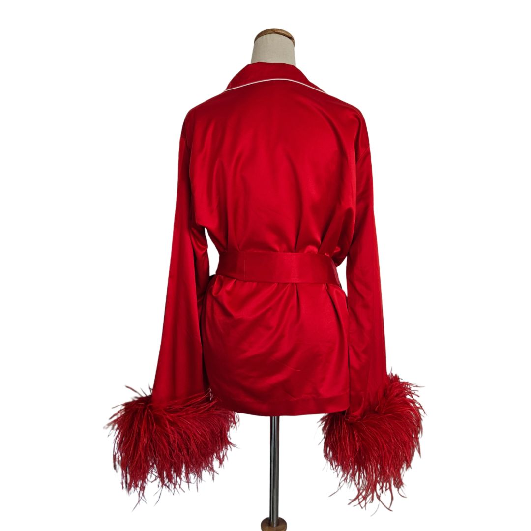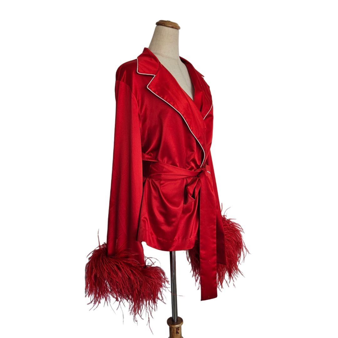 Miron Red Ostrich Sleeve Top with Matching Trousers Pajama Set
