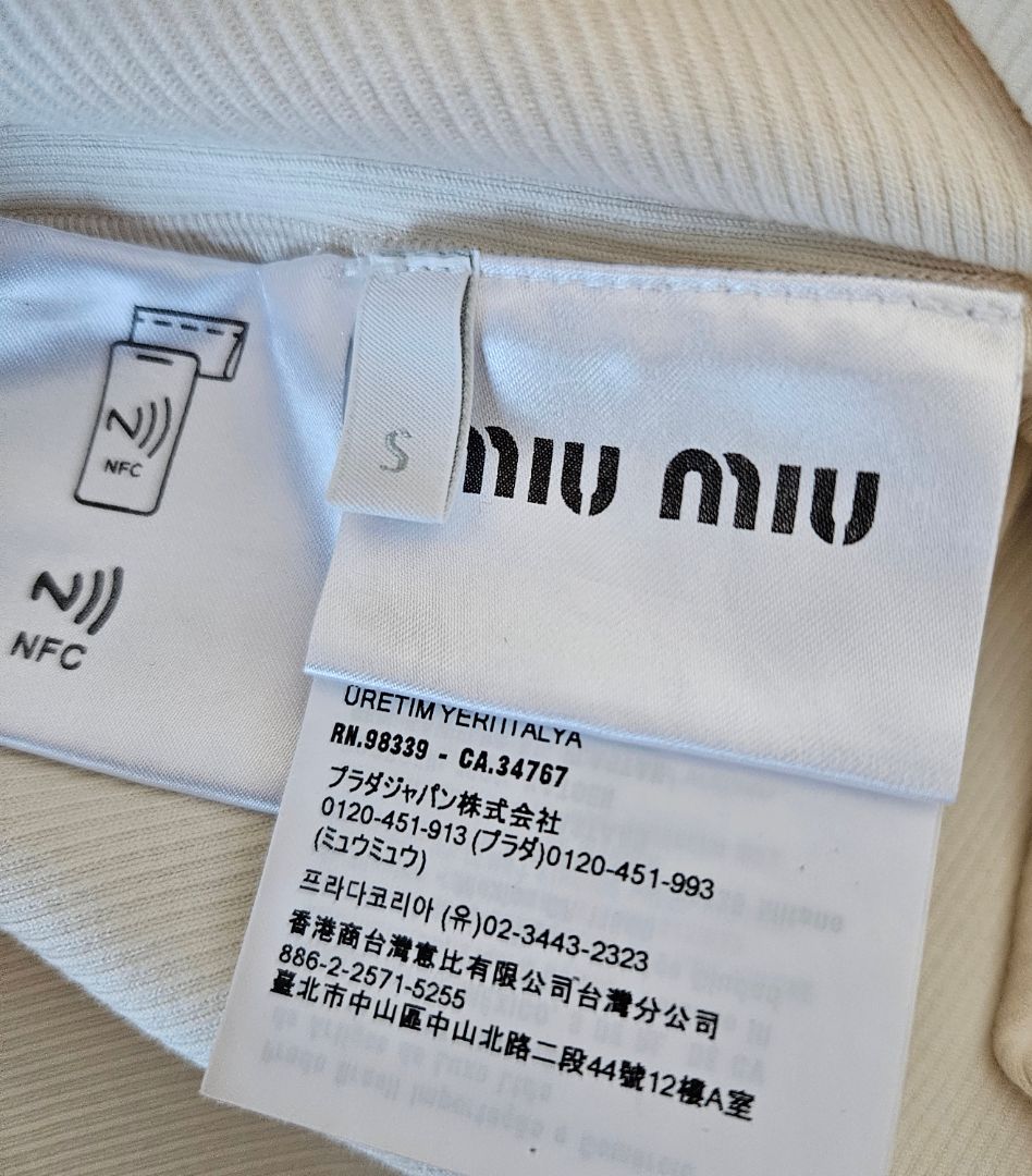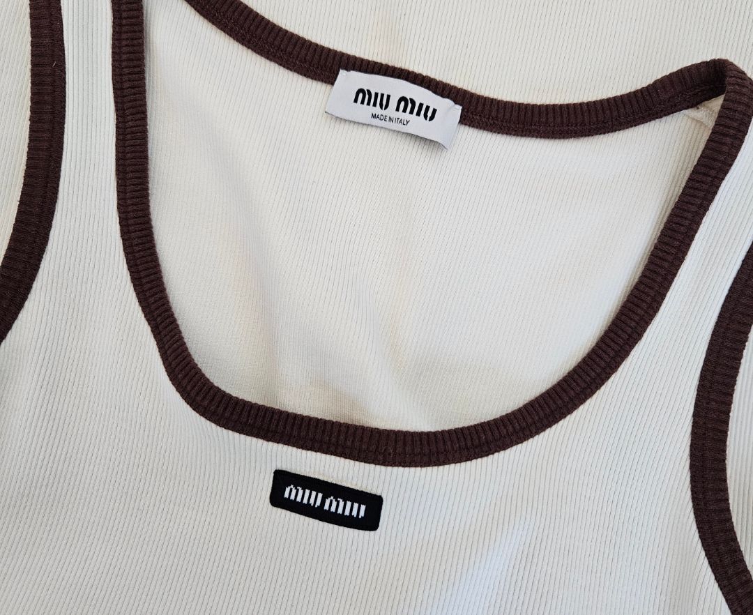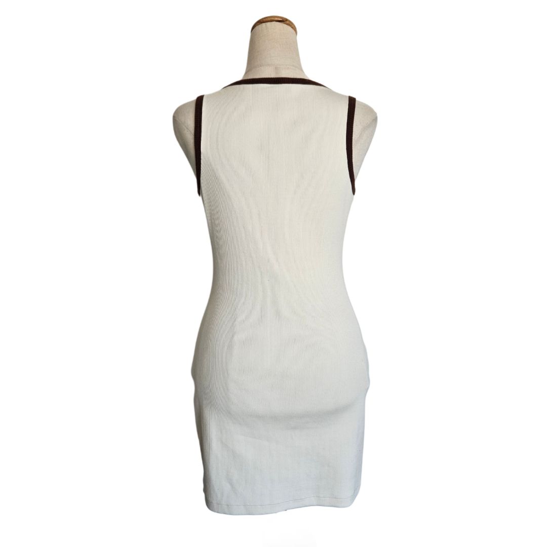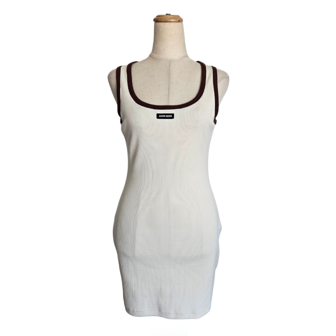 Miu Miu Beige Ribbed Dress with Brown Trim, size S