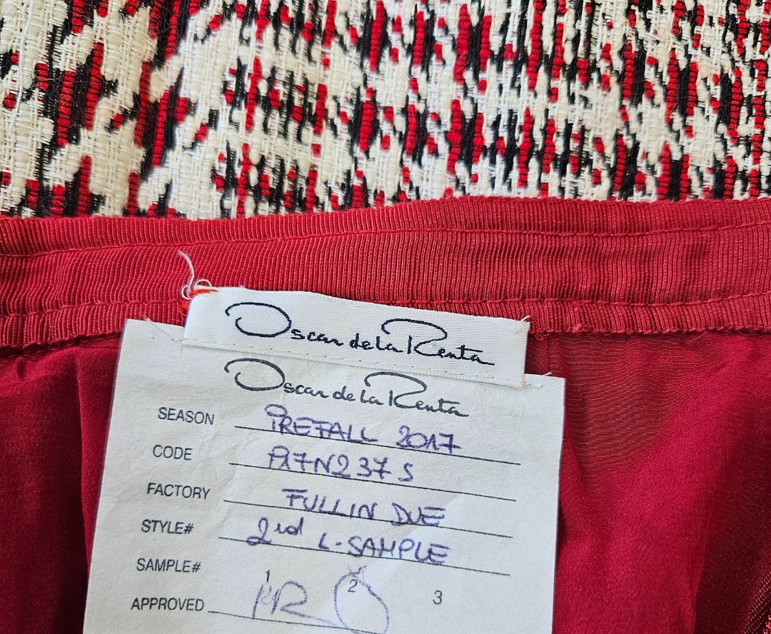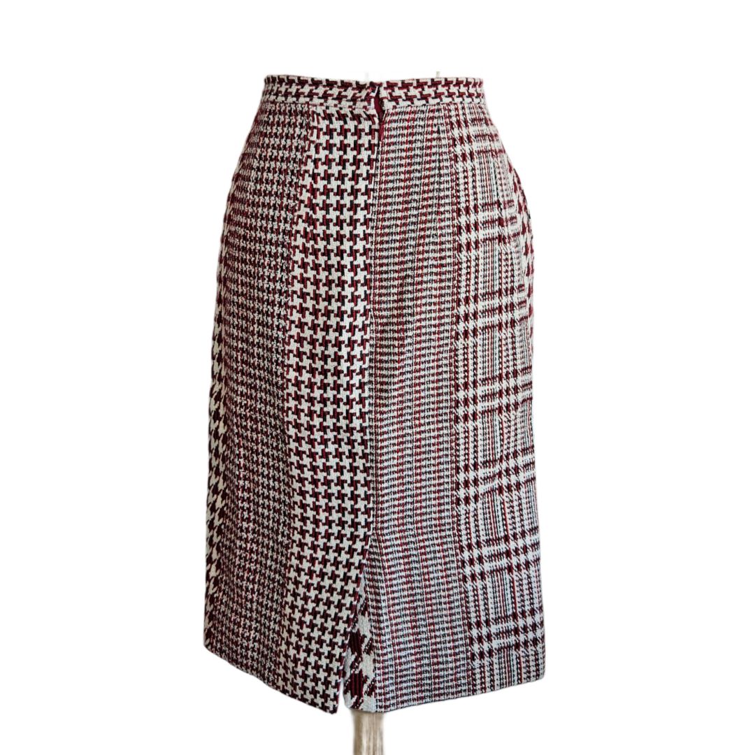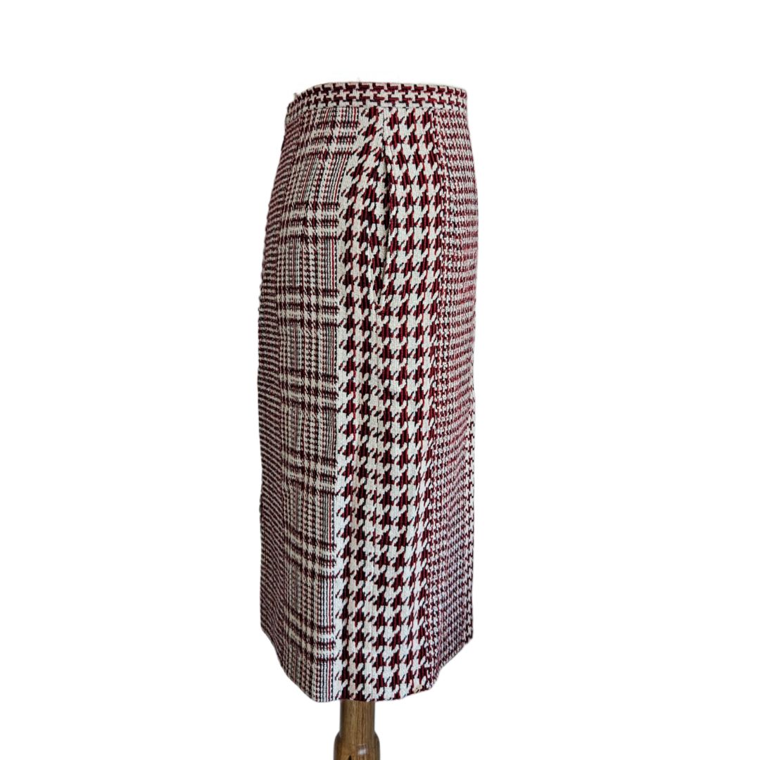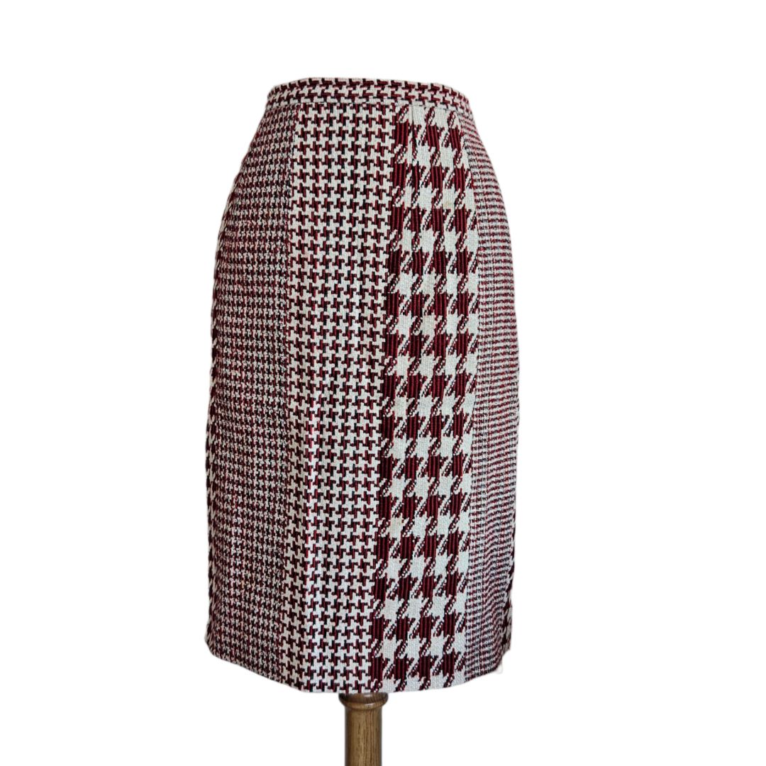 Oscar dela Renta Red and White Houndstooth Pencil Skirt