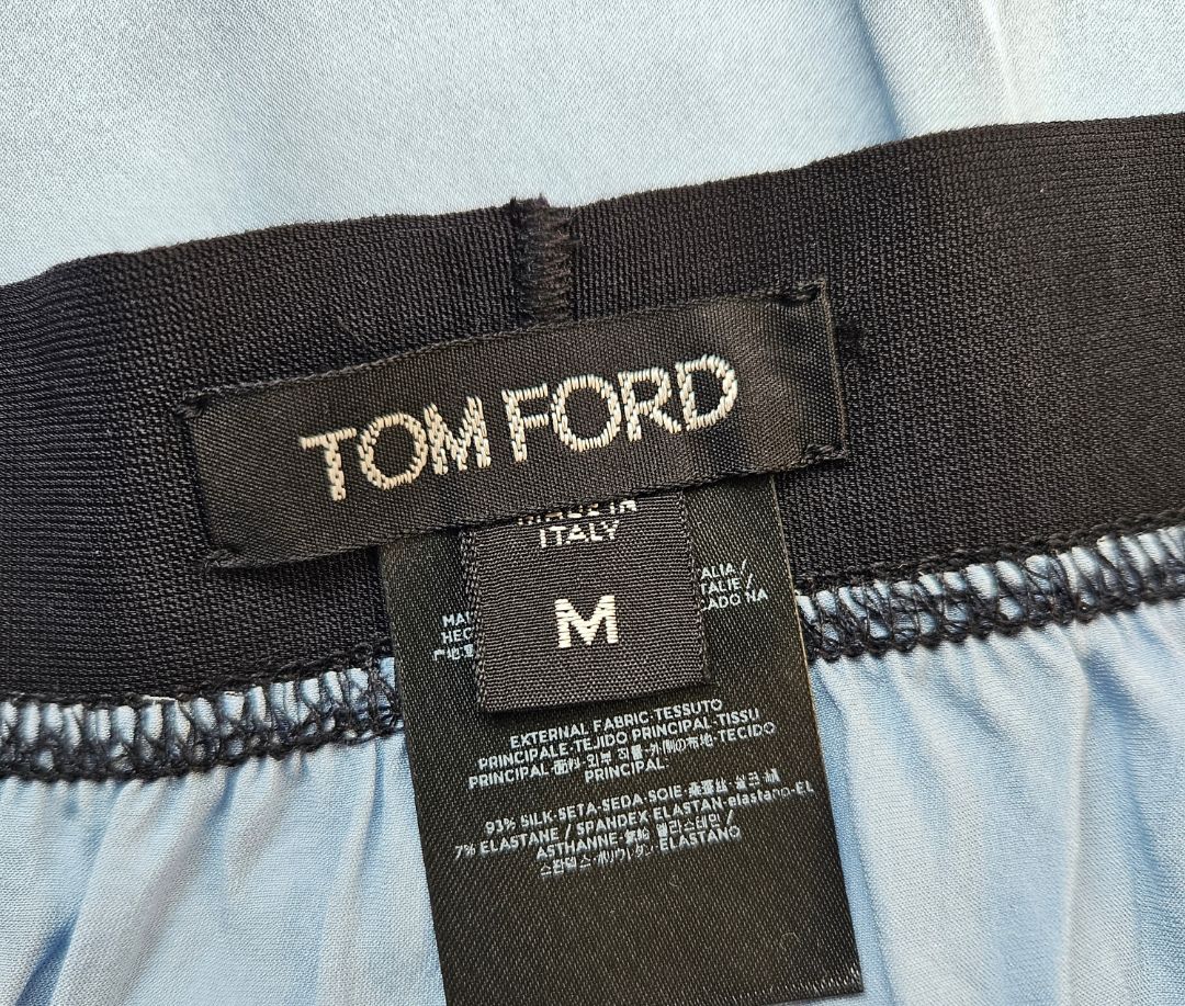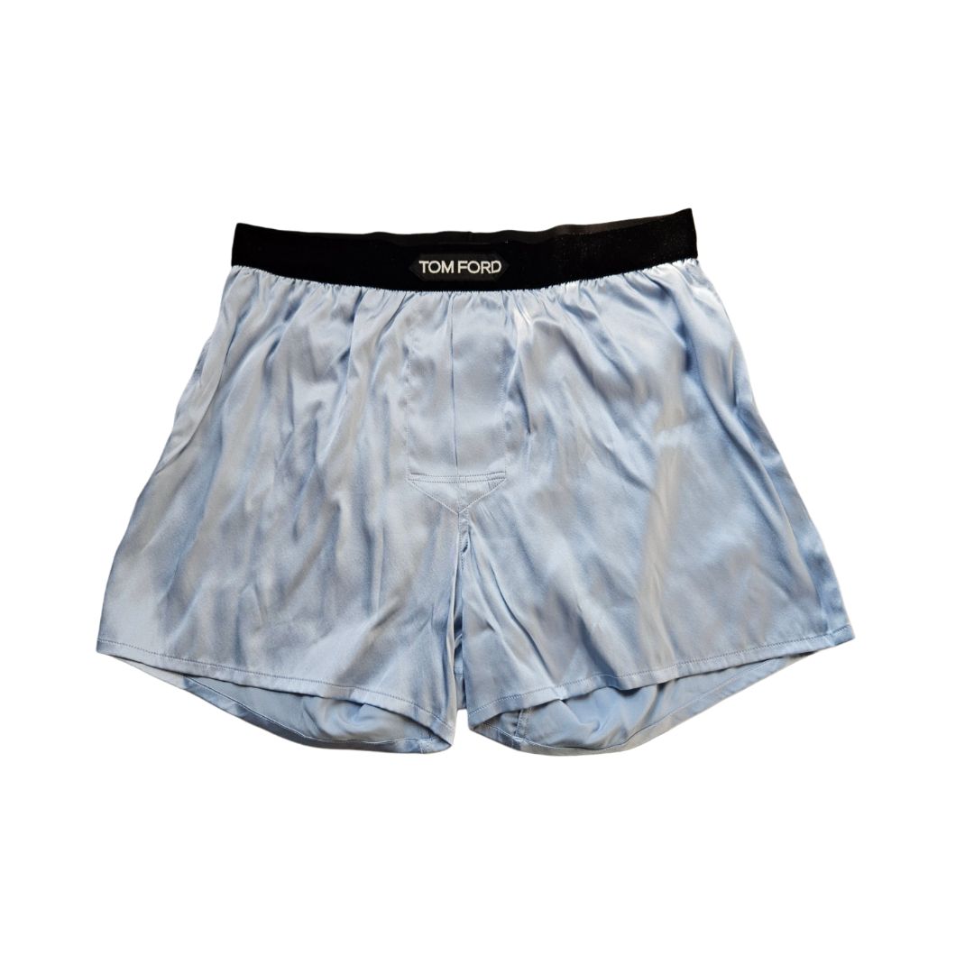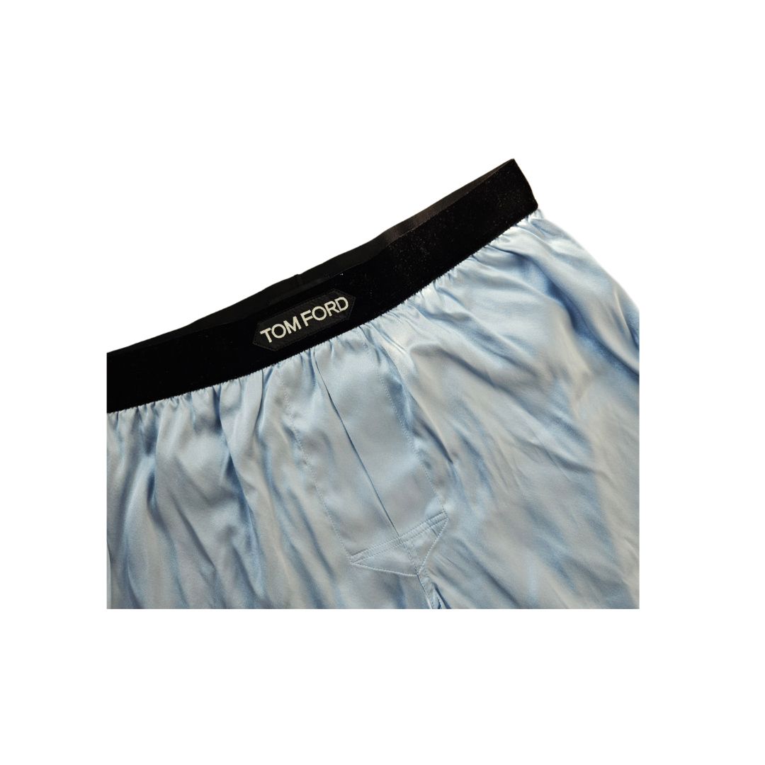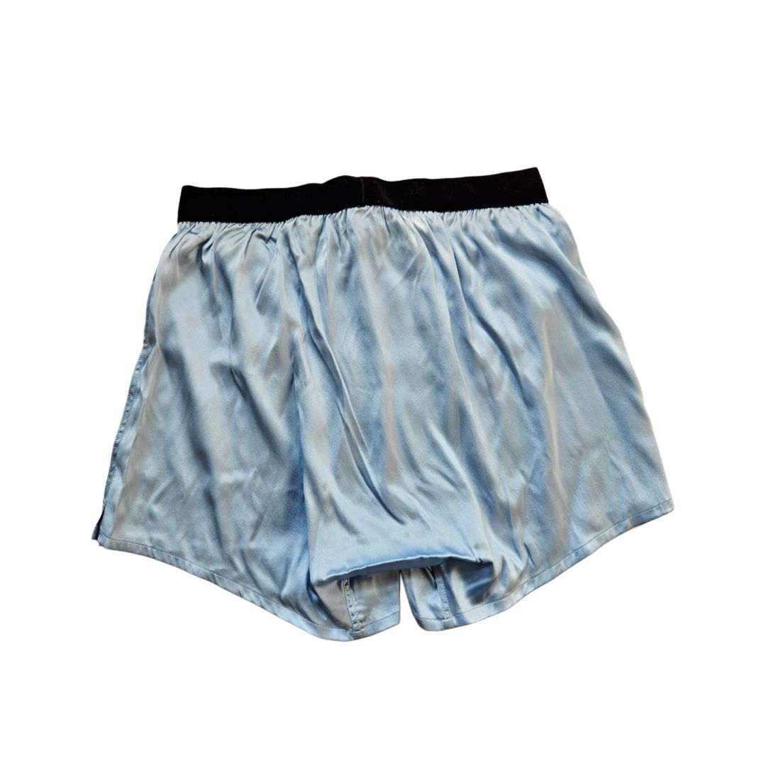 Tom Ford Light Blue Silk W/ Velvet Band Waist Logo Short