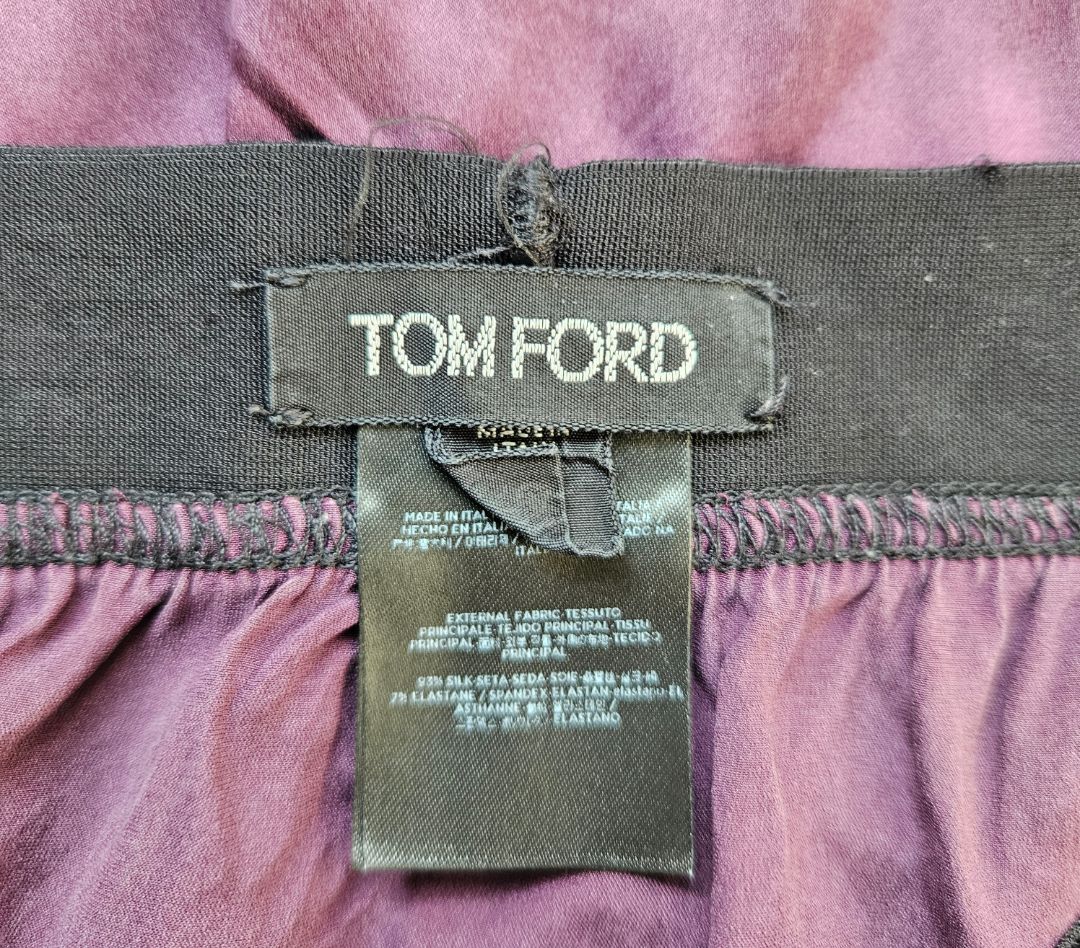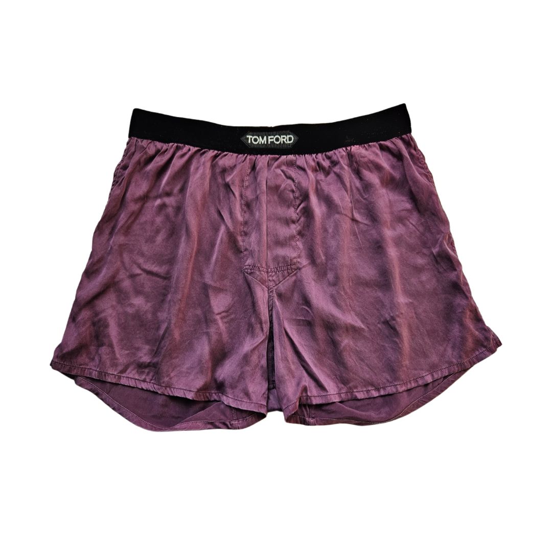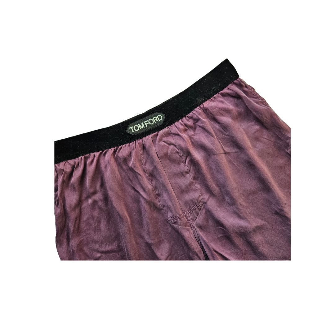 Tom Ford Plum Silk W/ Velvet Band Waist Logo Short
