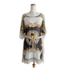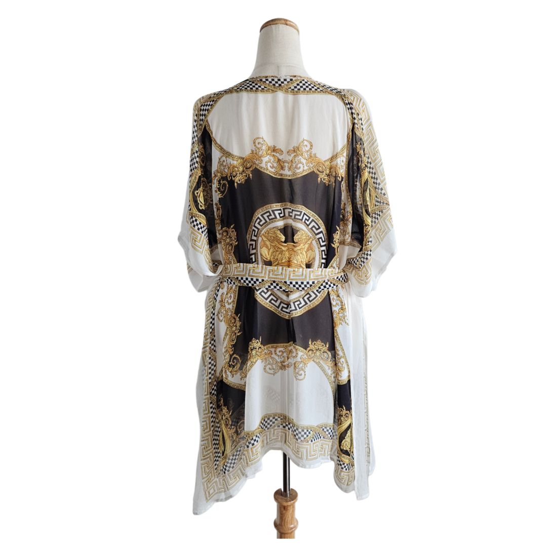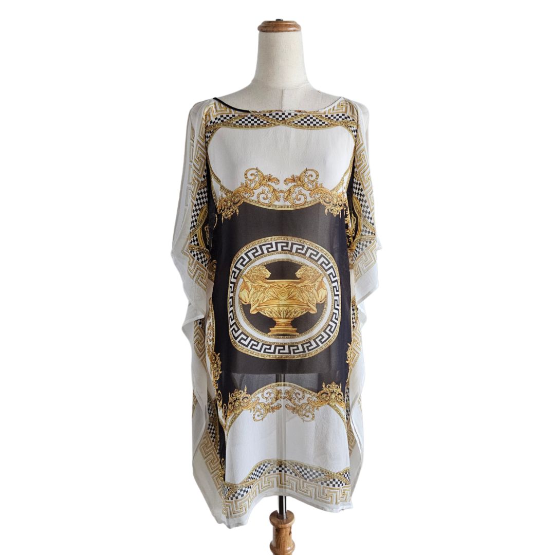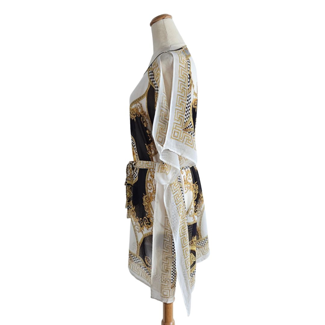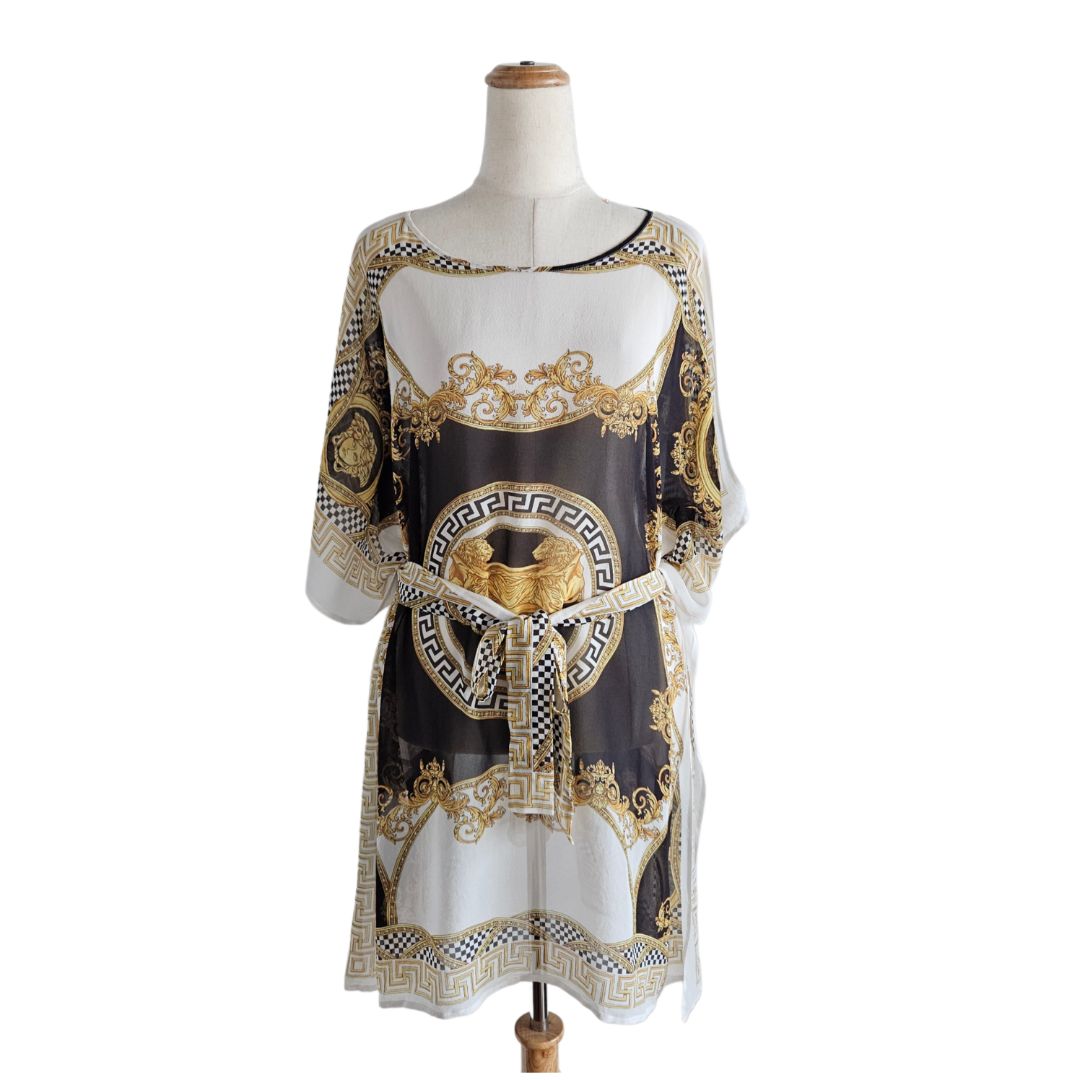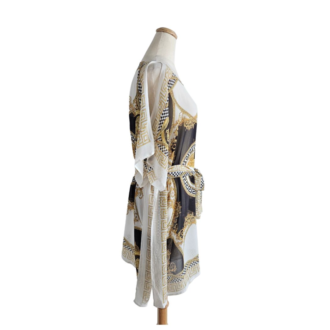 Versace Tricolor Printed Cut Out Belted Poncho Dress