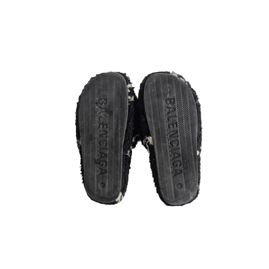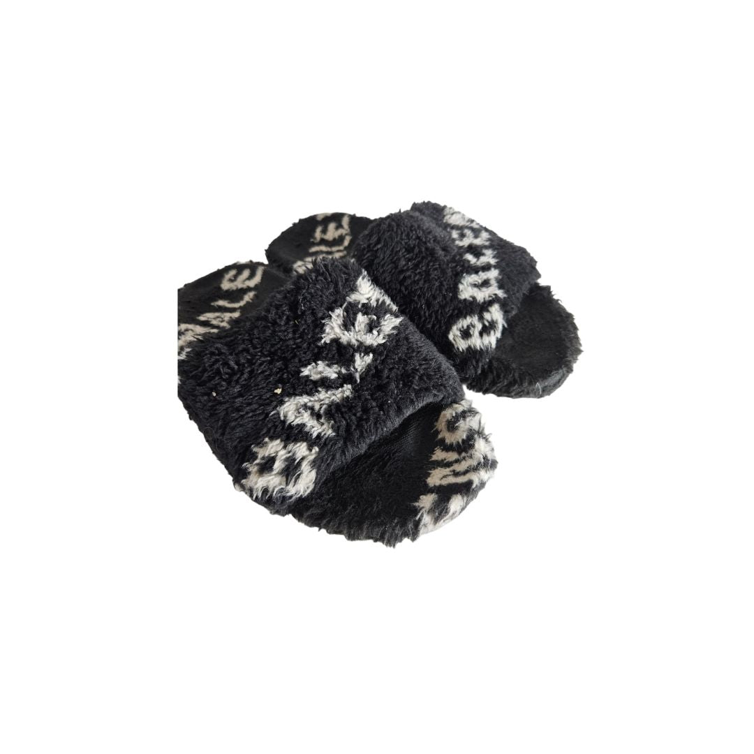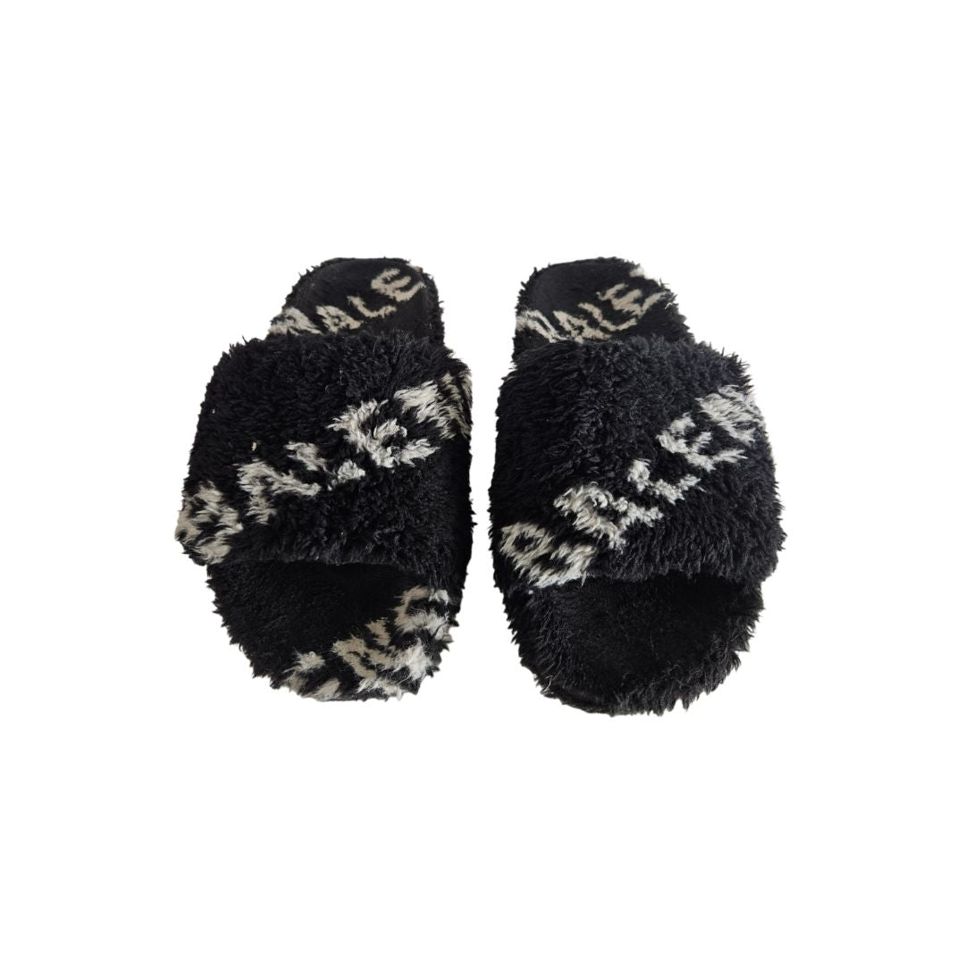 Balenciaga Black Shearling Logo Flat Slide, size 38