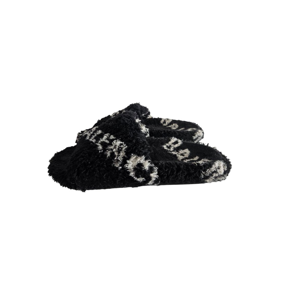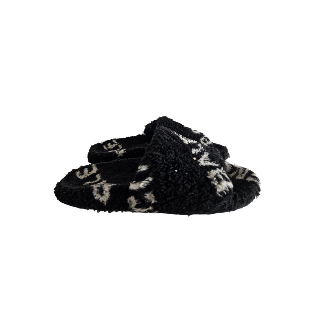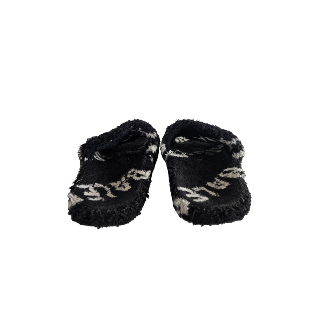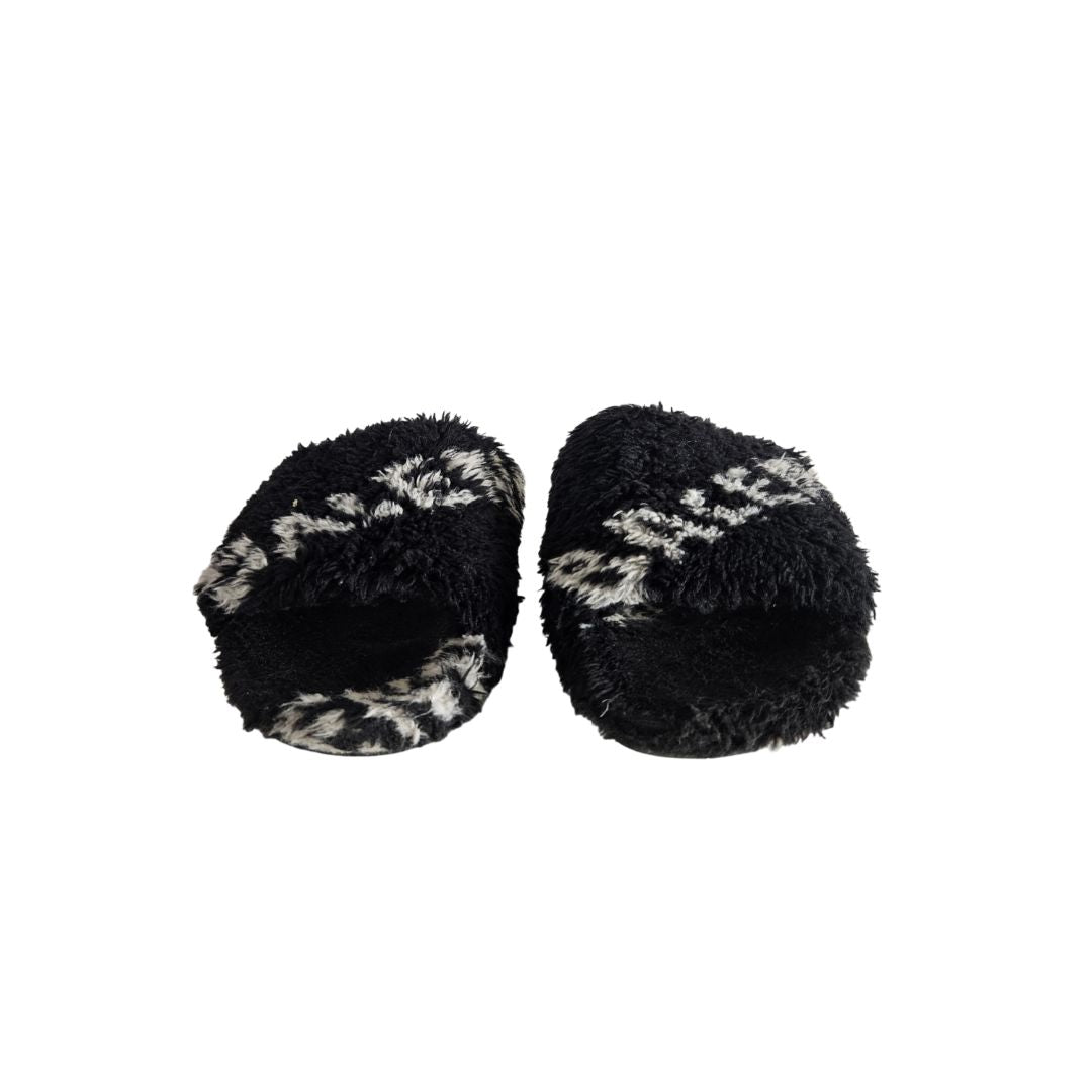 Balenciaga Black Shearling Logo Flat Slide, size 38