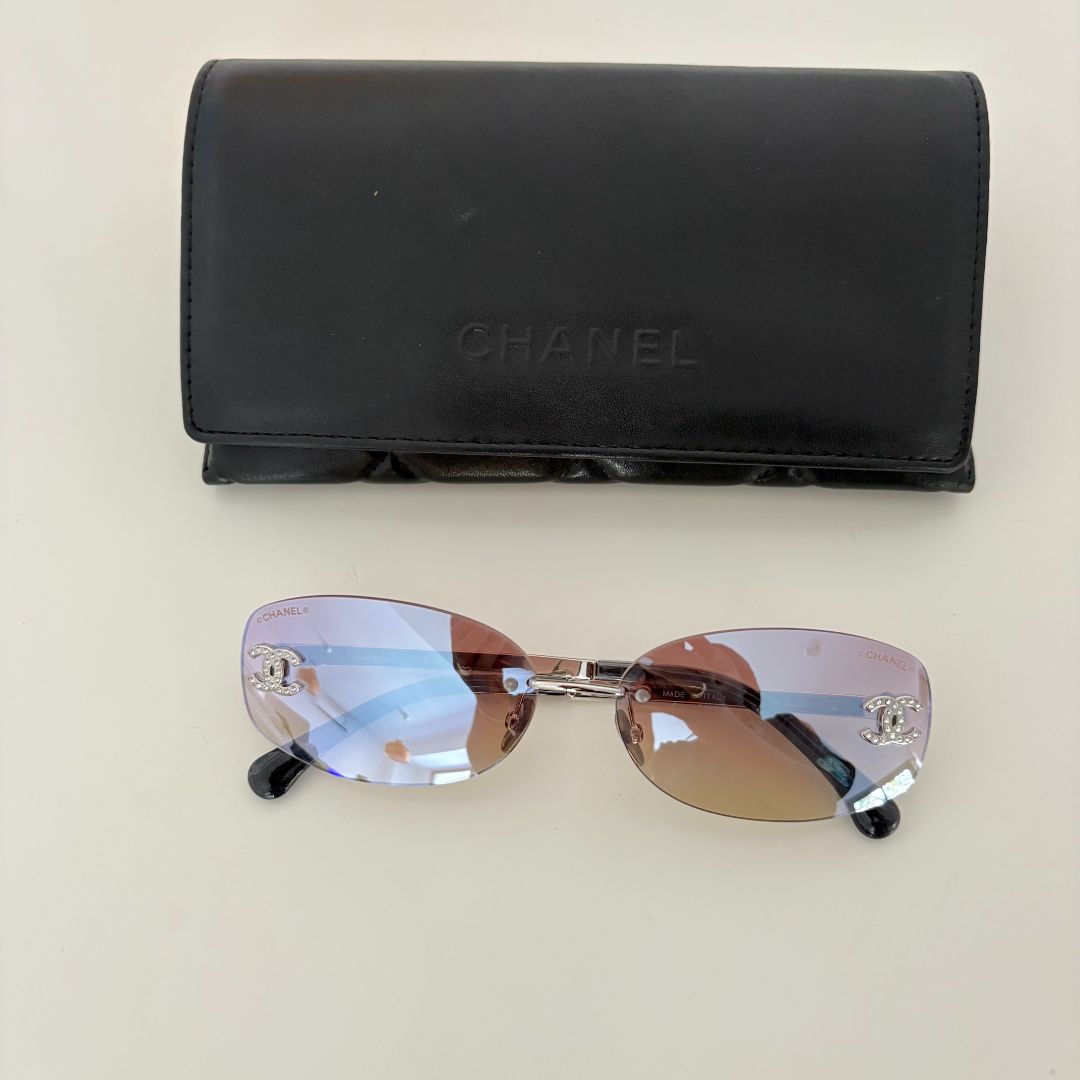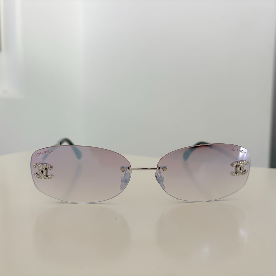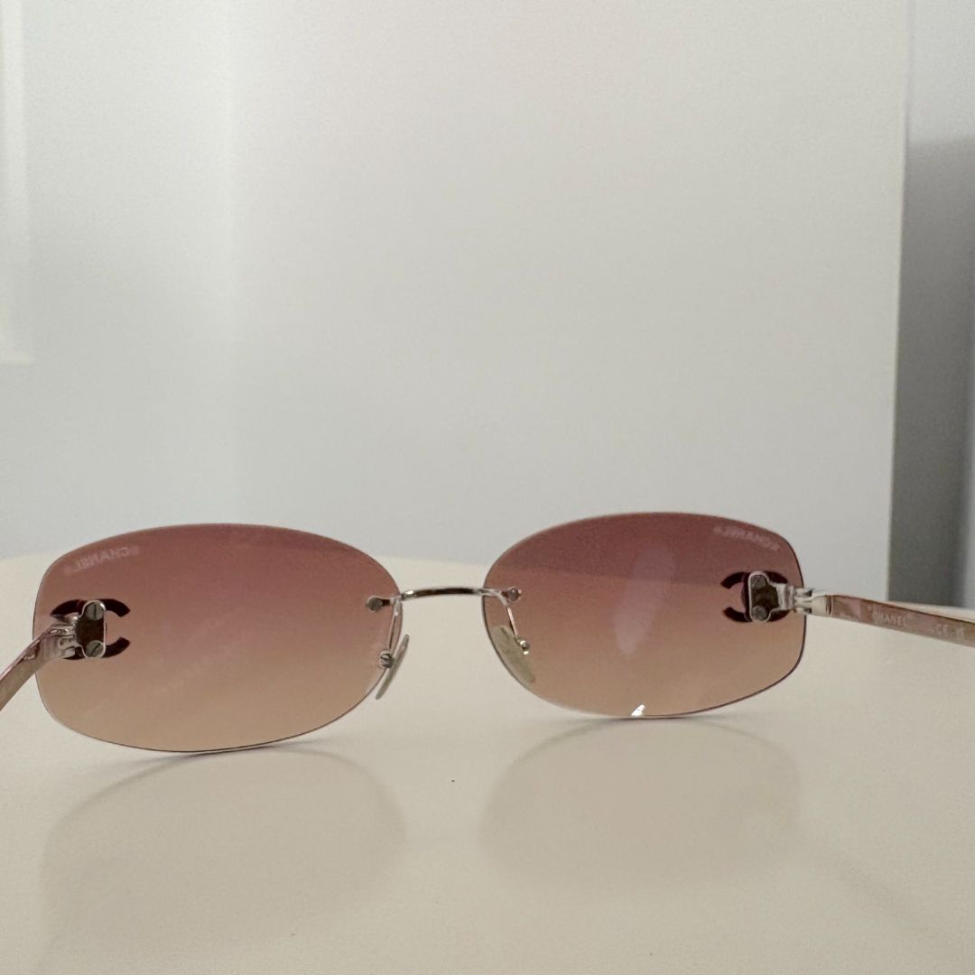 Chanel Oval Sunglasses in Silver Metal w. Pink Mirror Lenses. CC logo