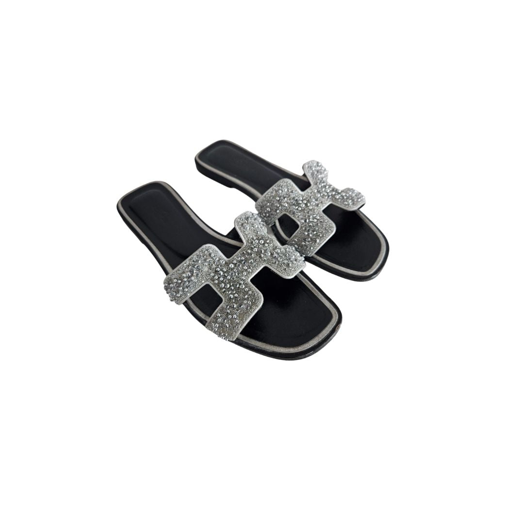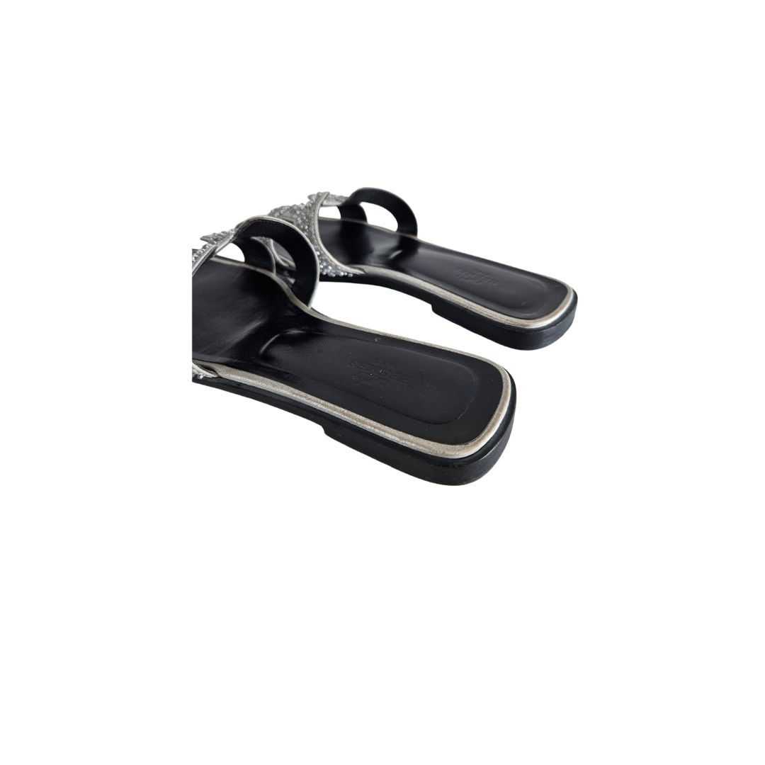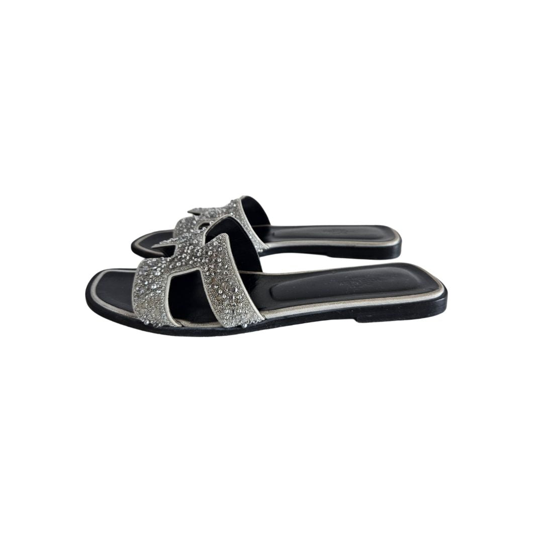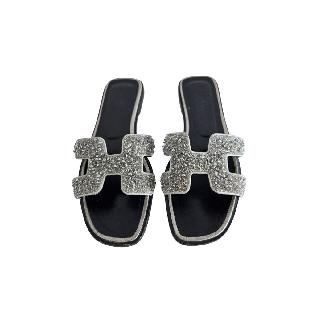 Hermes Grey Beaded Oran Flat Sandal, size 38.5