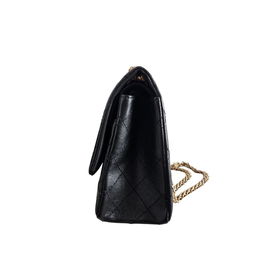 Chanel Black Aged Skin Leather Reissue 2.55 GHW Shoulder Flap Bag