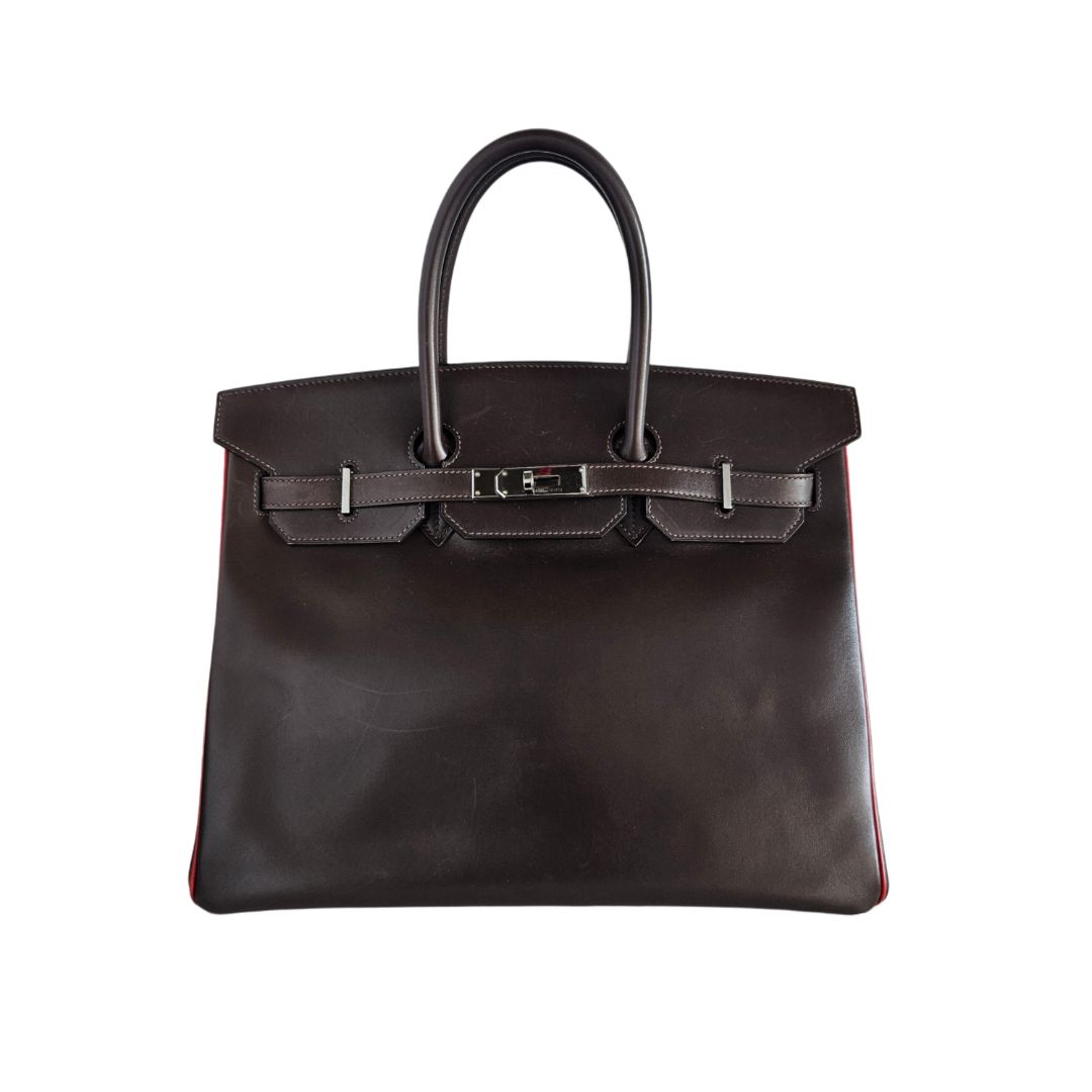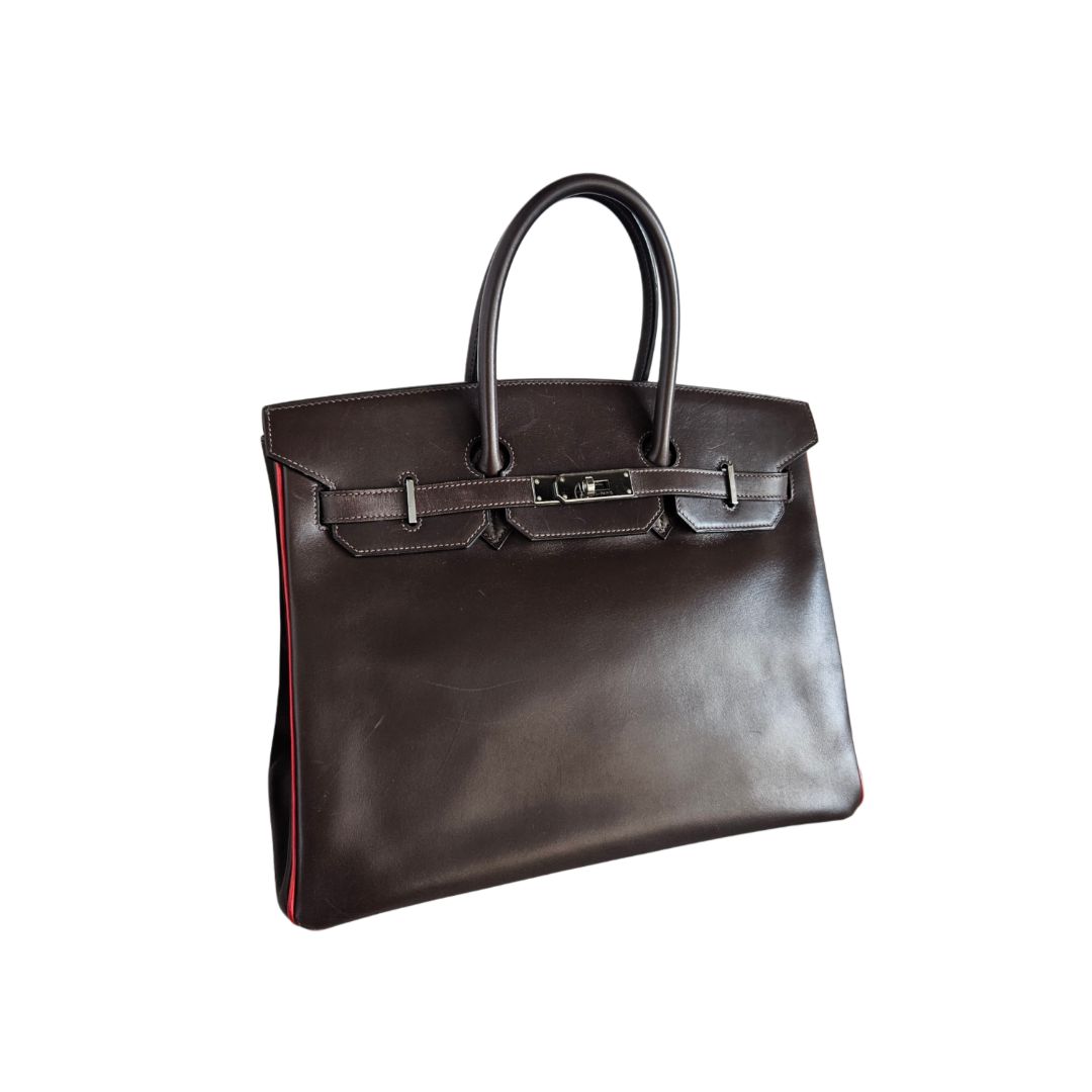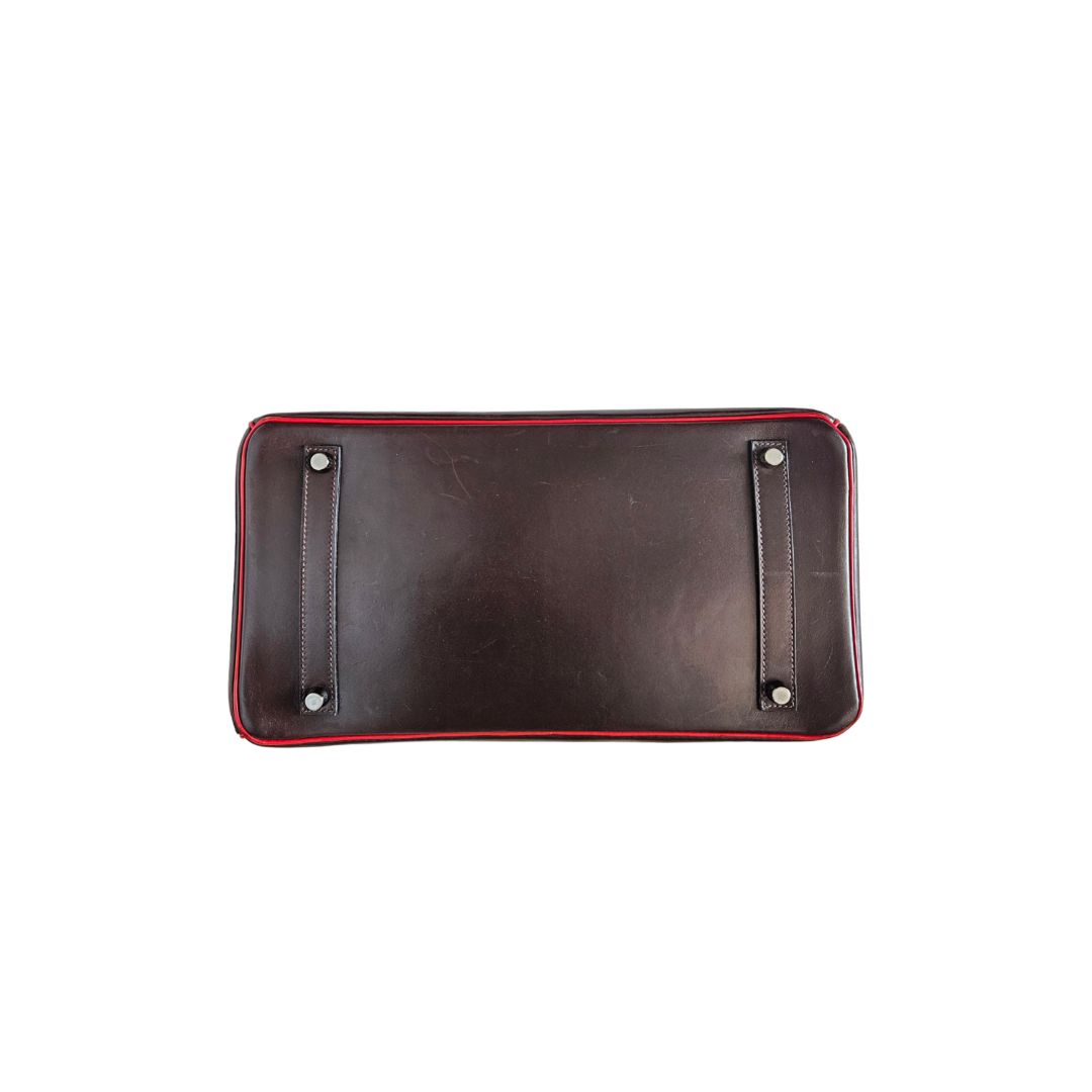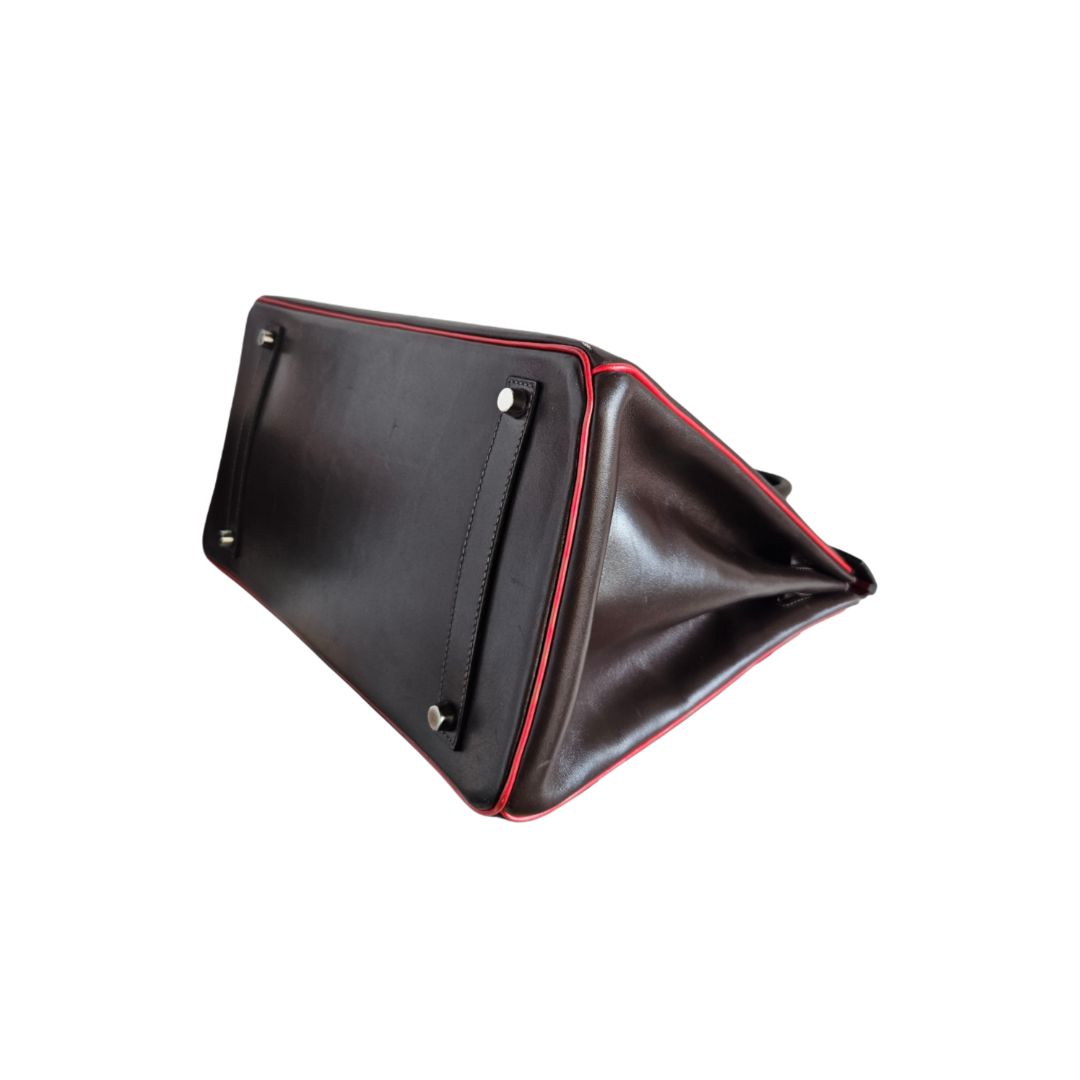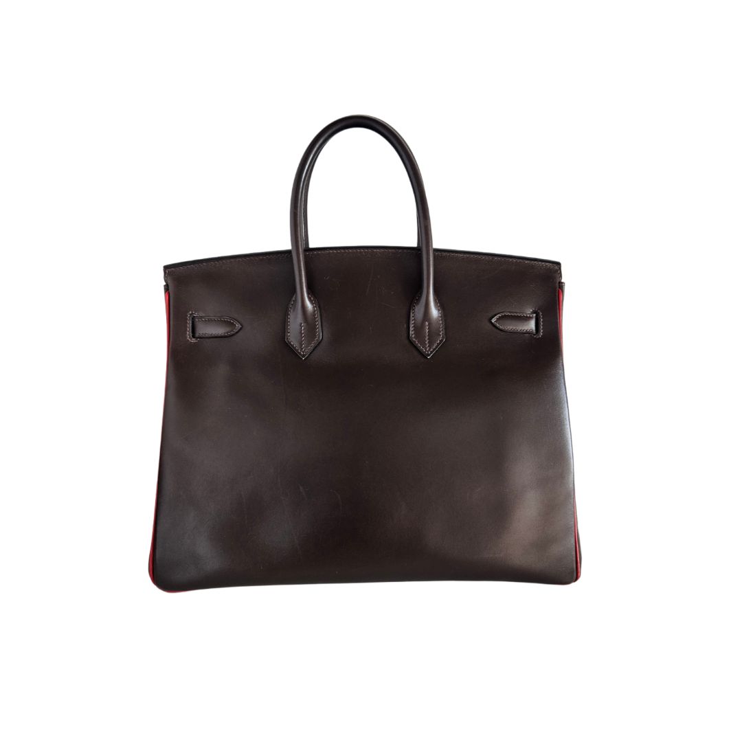Hermès Birkin 35 Box Leather Carf Ebene Rouge VIF Purse (Bicolor)