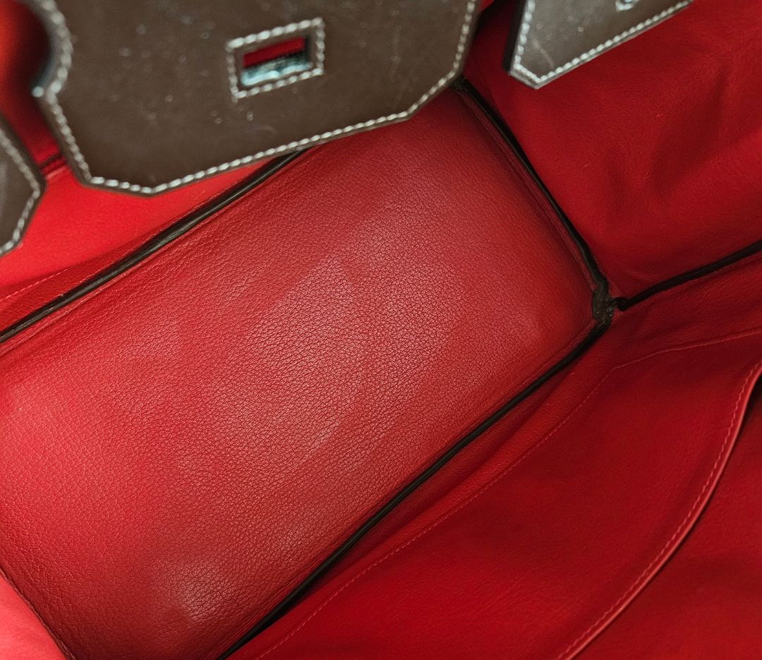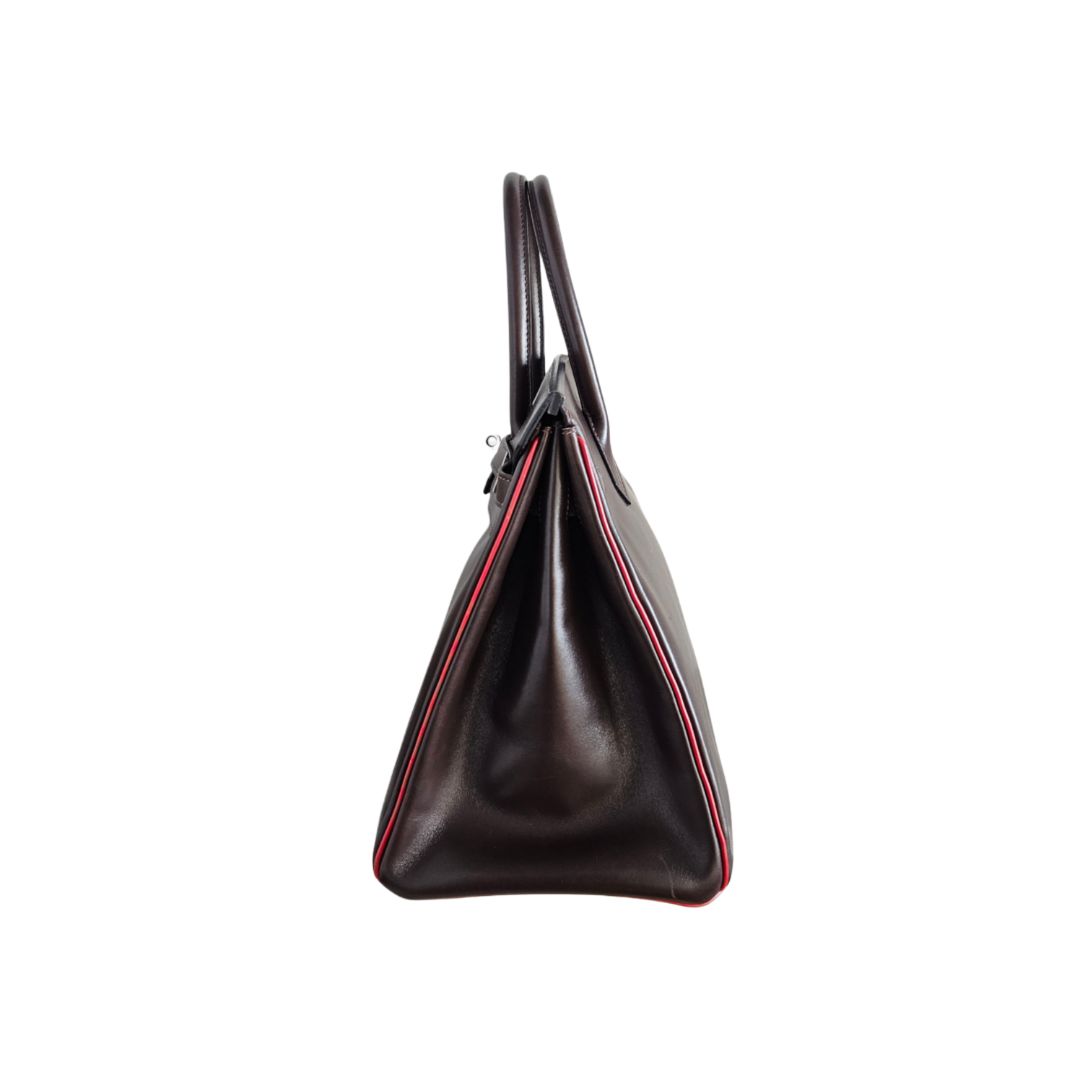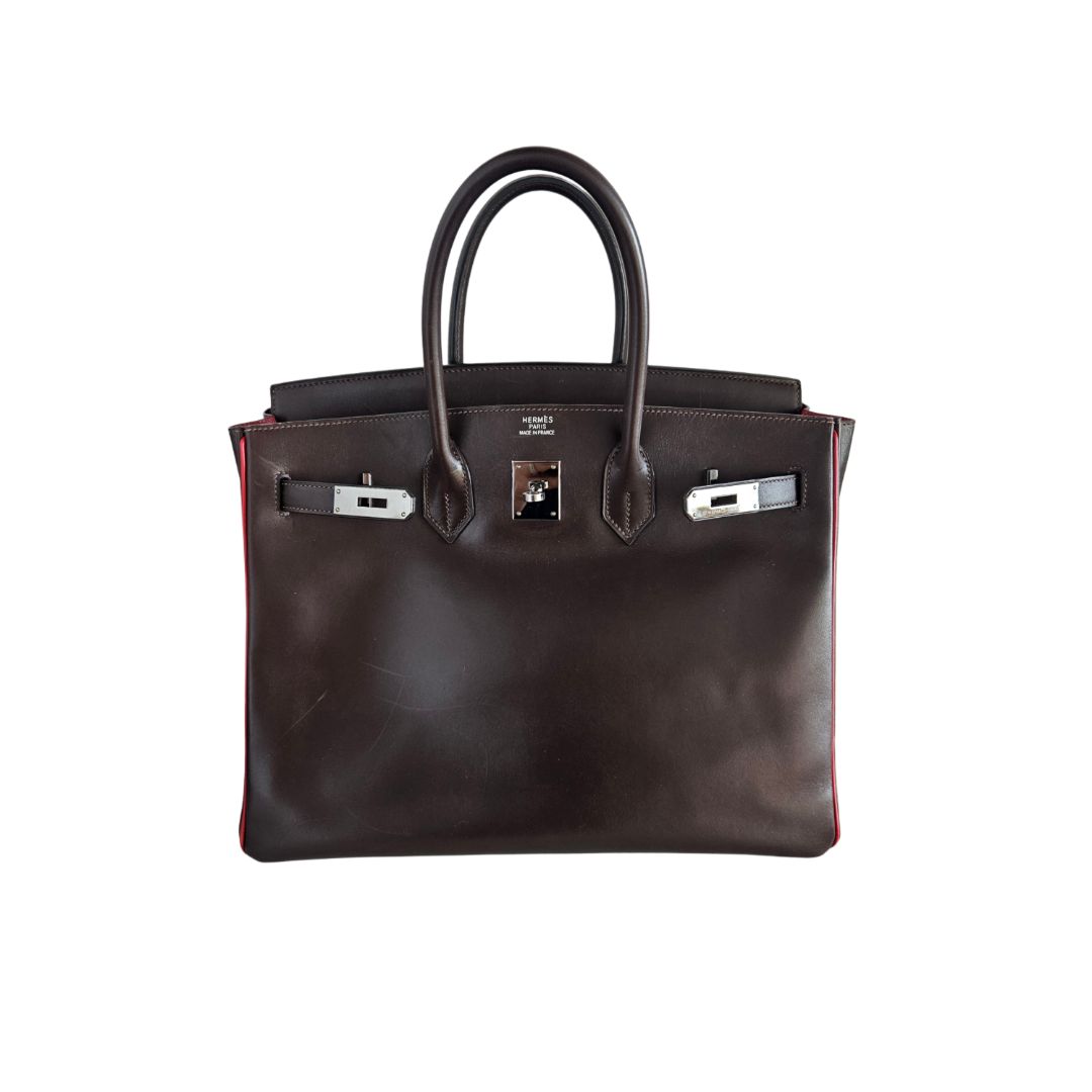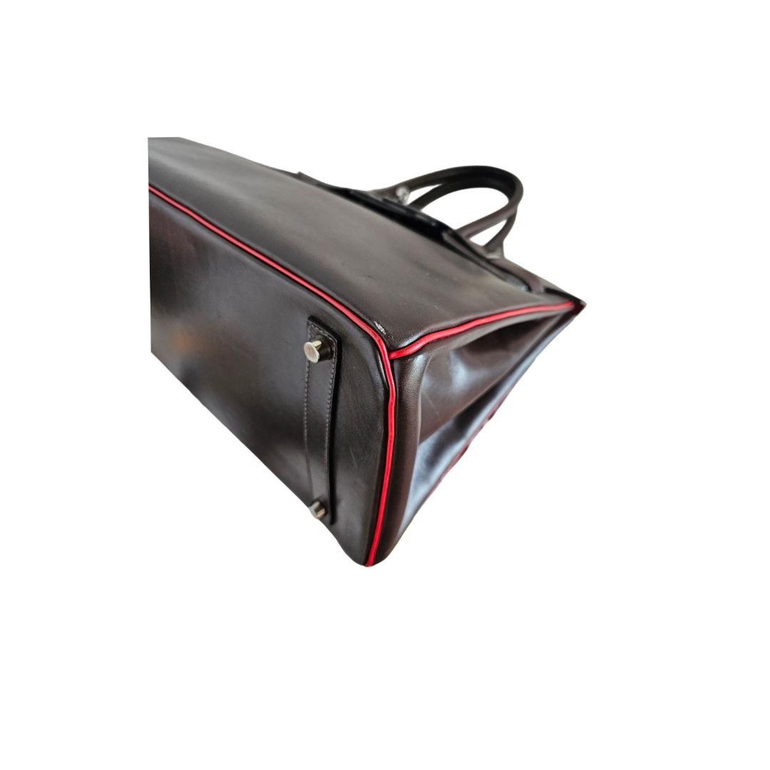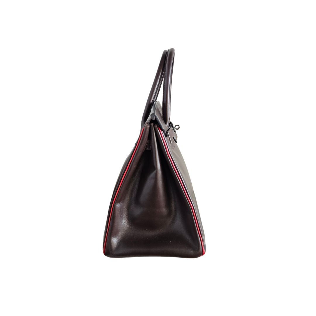 Hermès Birkin 35 Box Leather Carf Ebene Rouge VIF Purse (Bicolor)