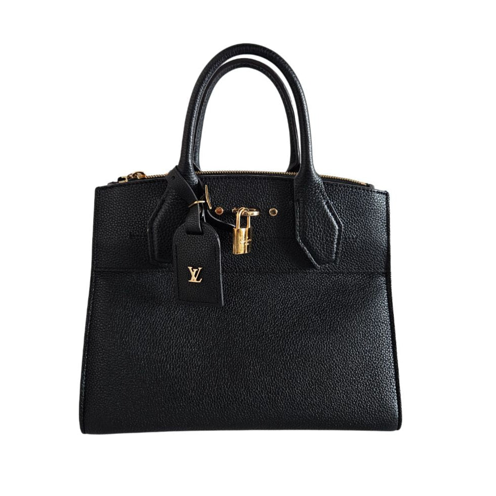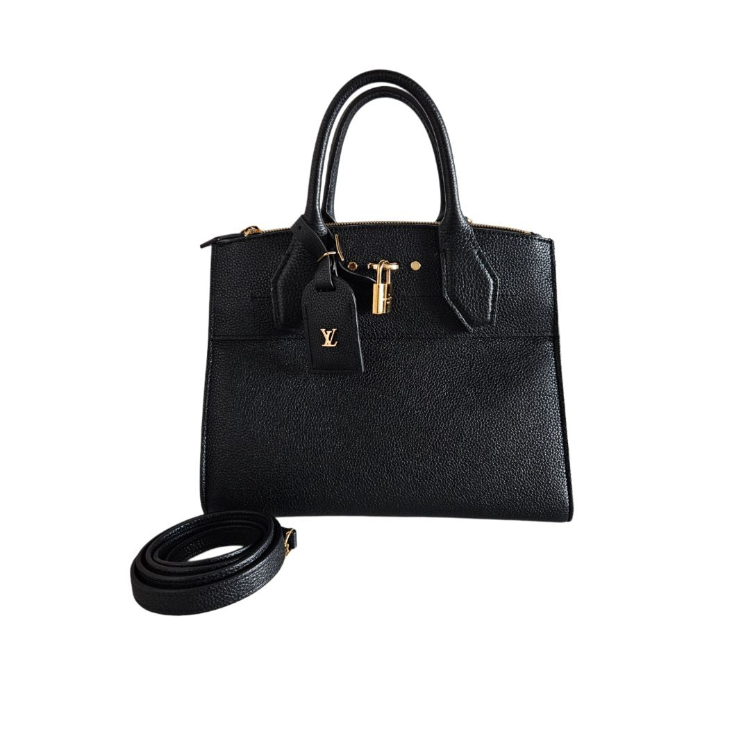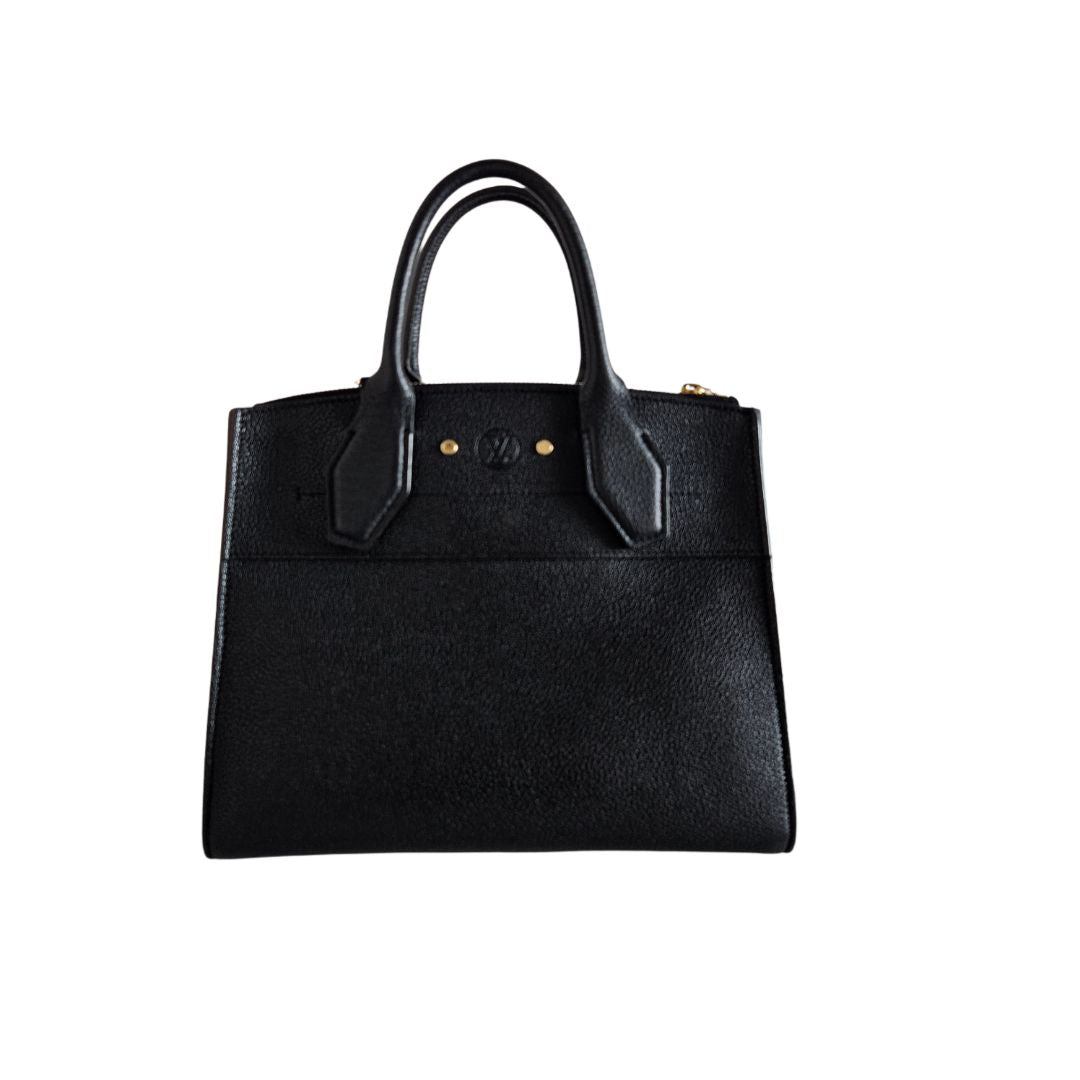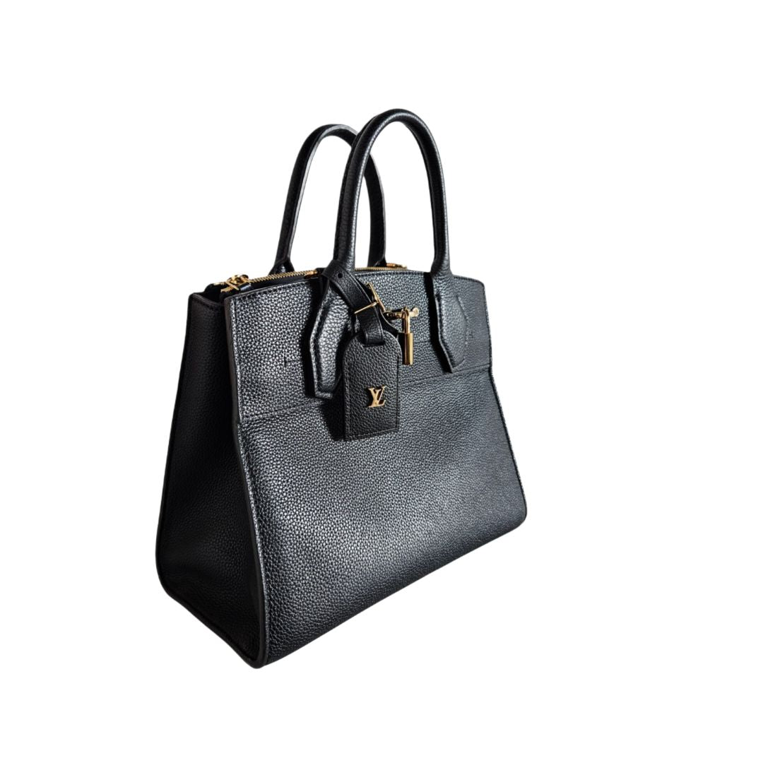 Louis Vuitton Black Leather City Steamer Tote PM Bag
