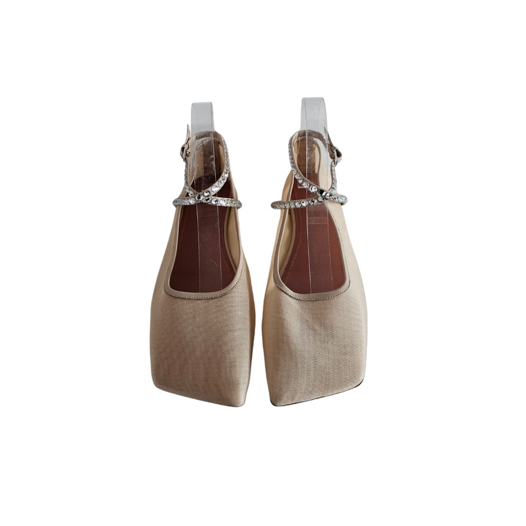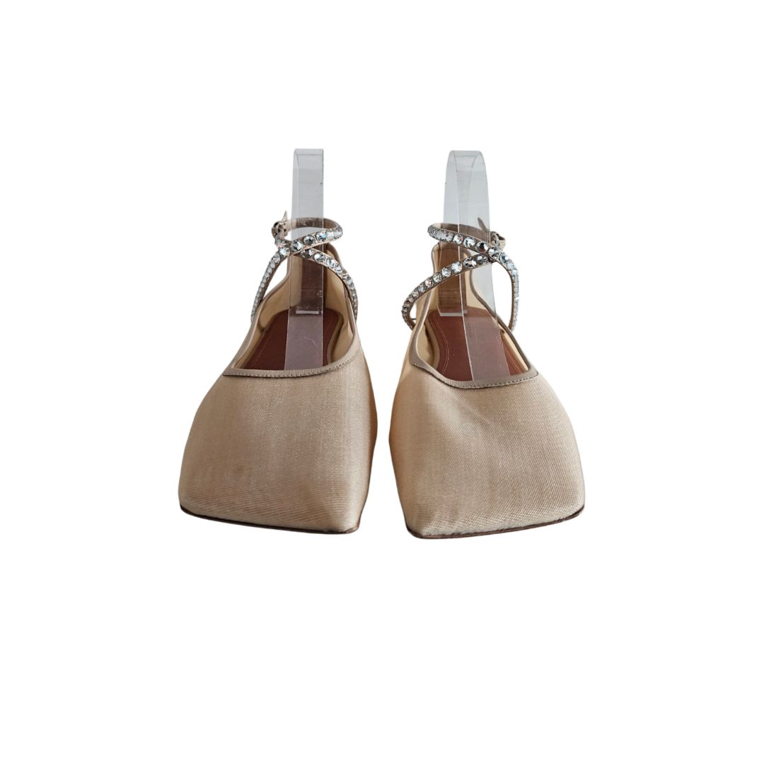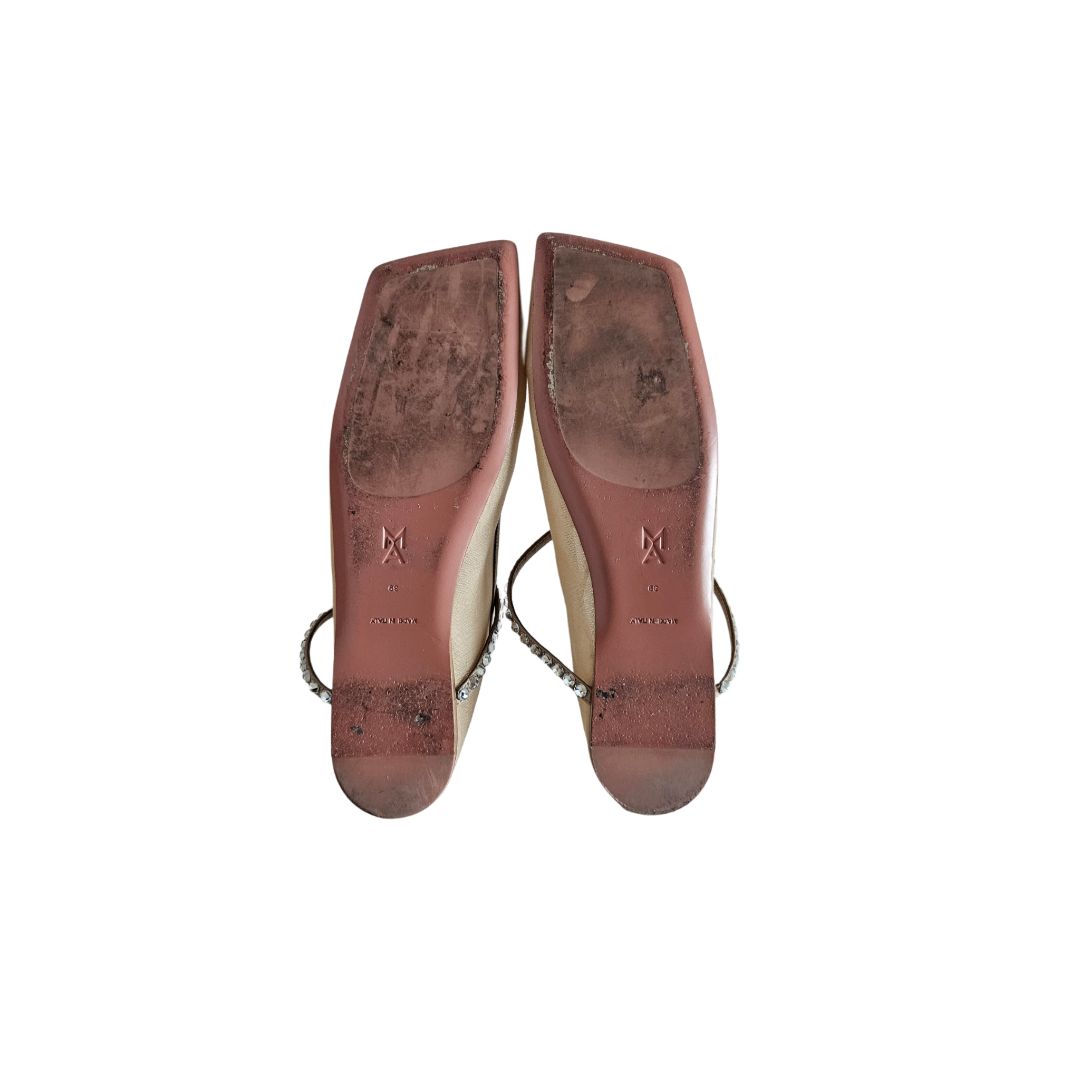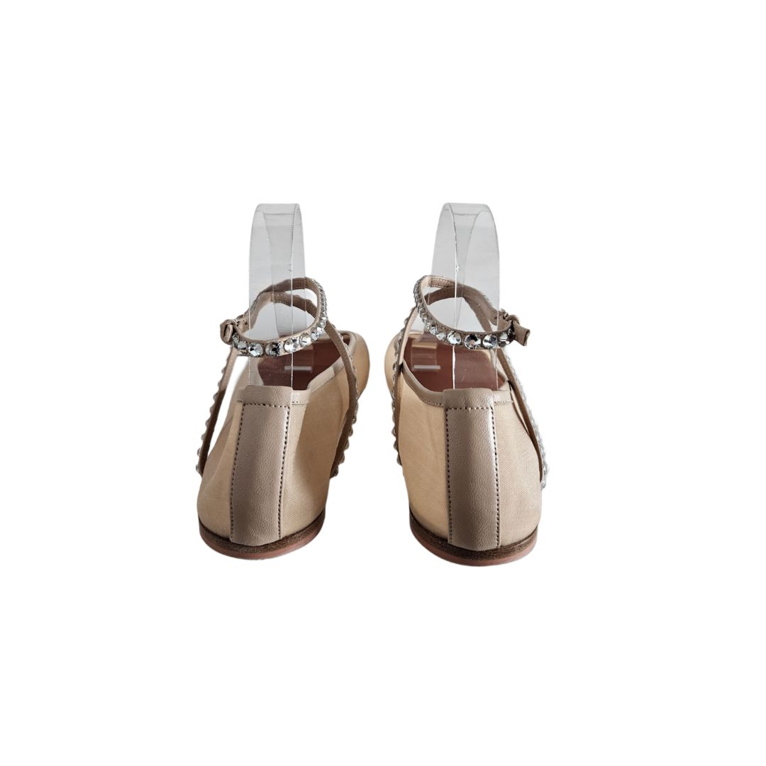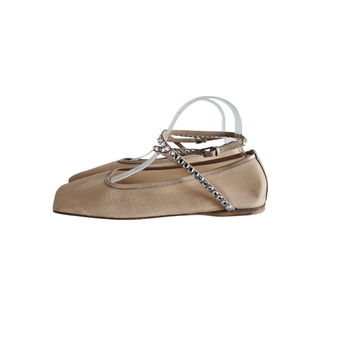 Amina Muaddi Ane Beige Mesh Crystal Embellished Ankle Strap Flats, Size 39