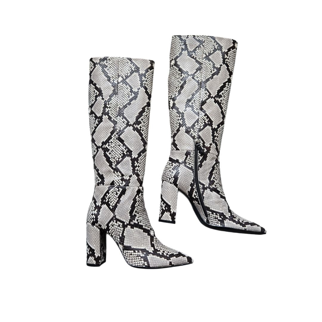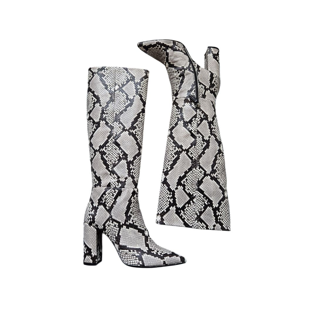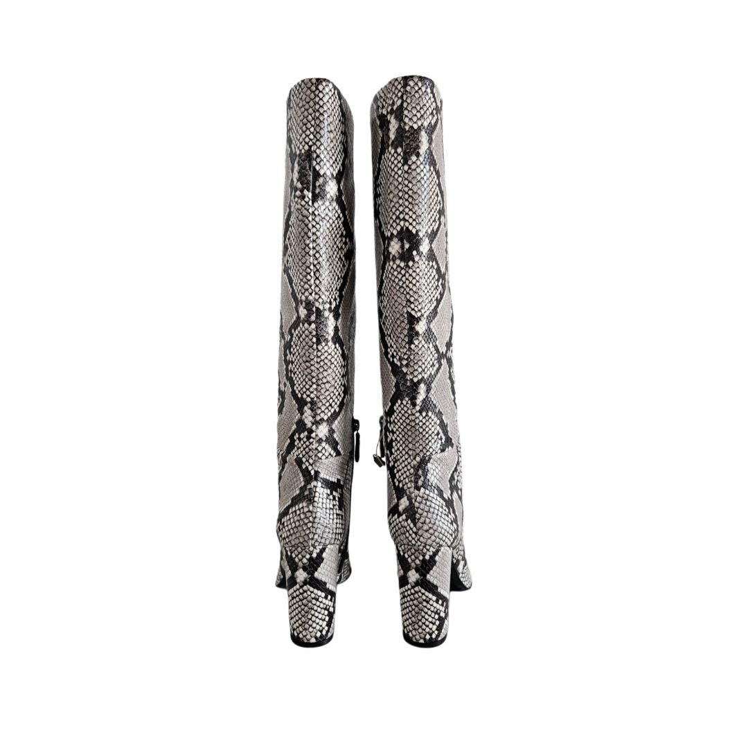 Bruno Premi Snakeskin Print Knee High Heeled Boots