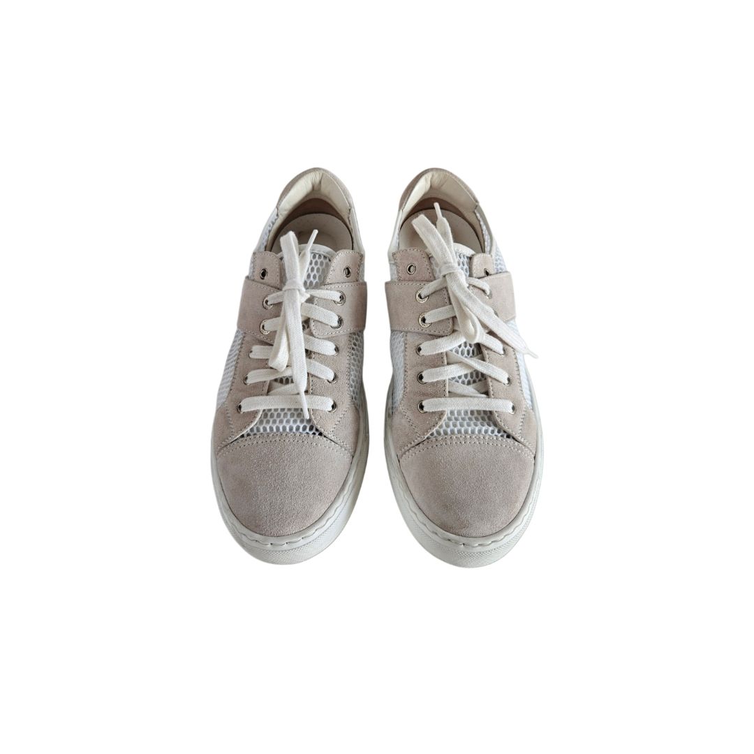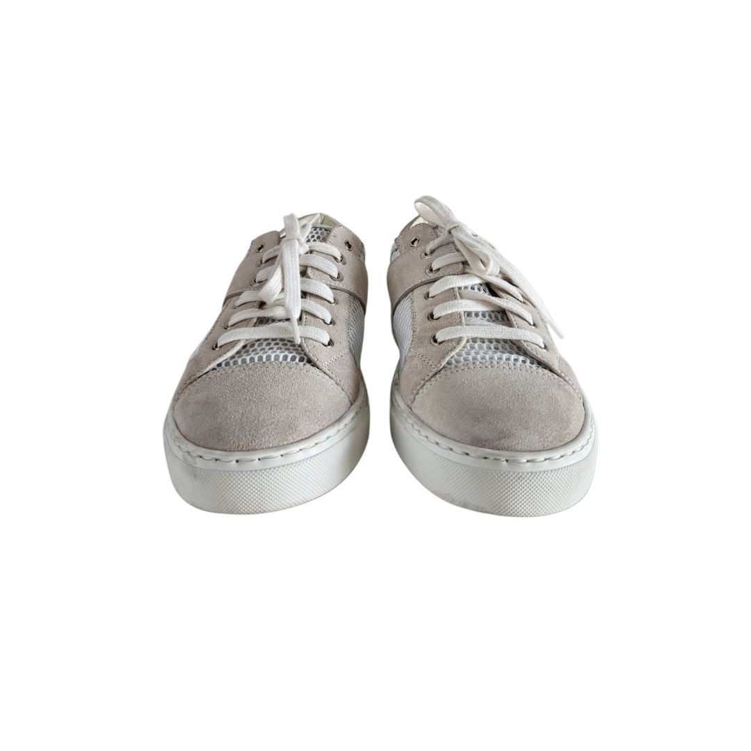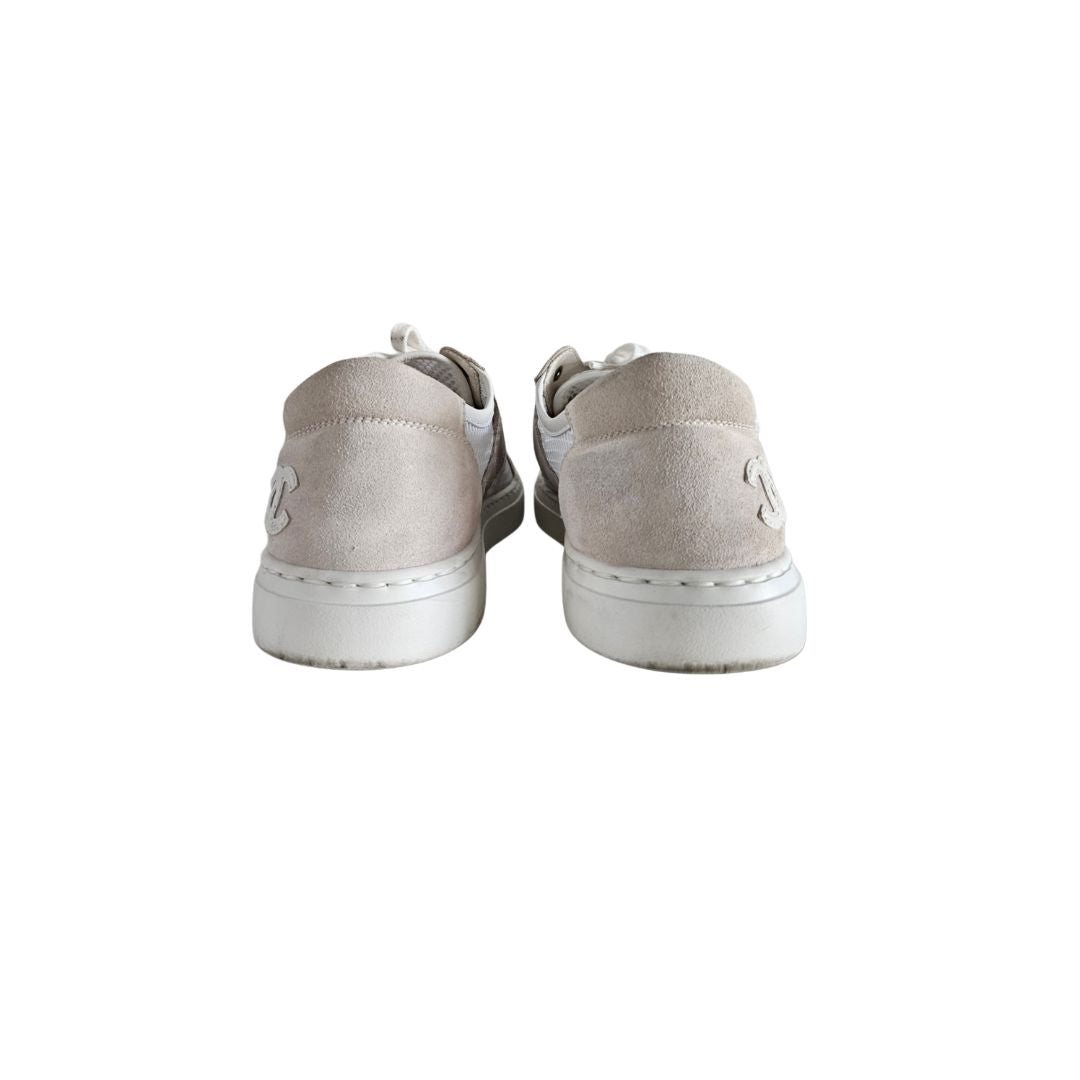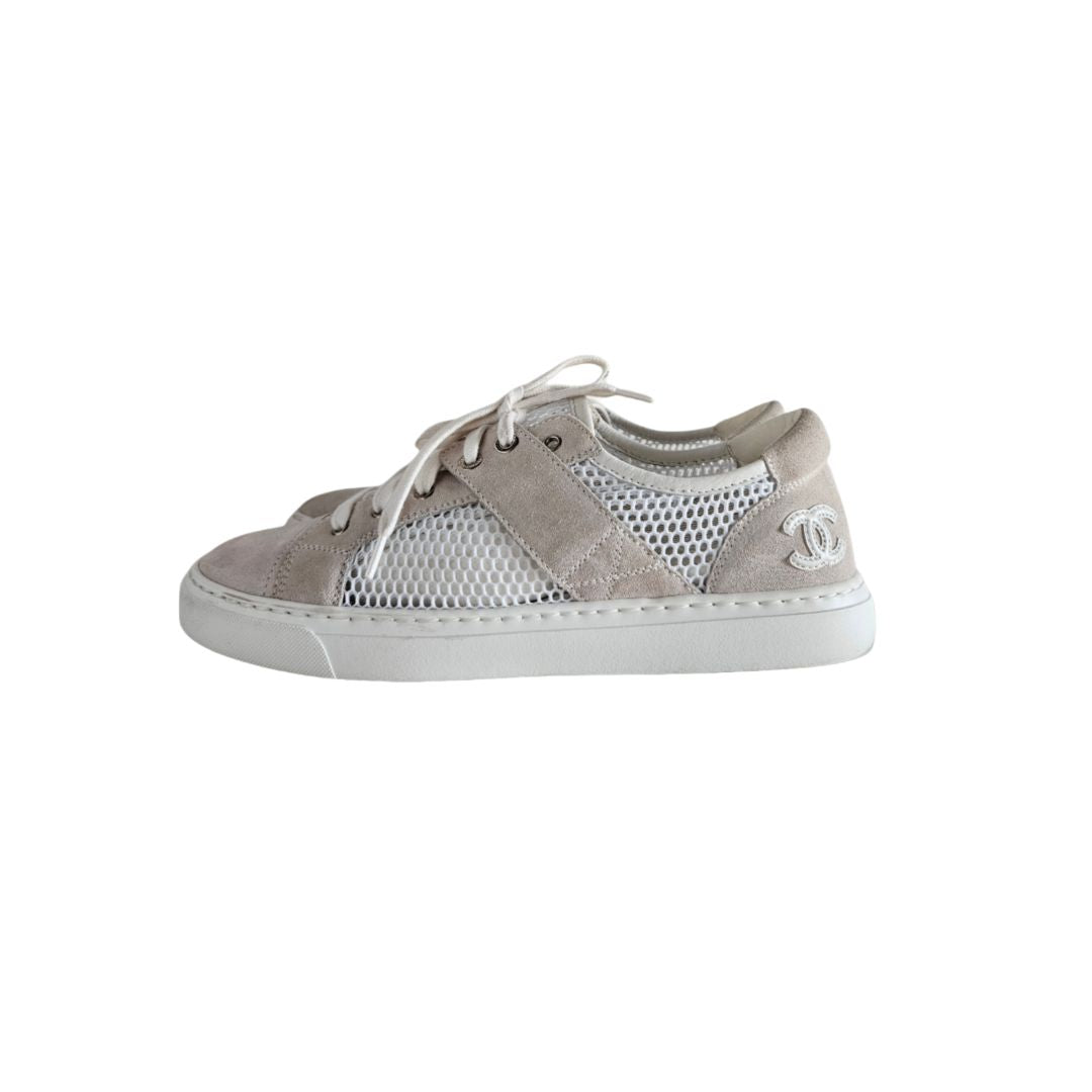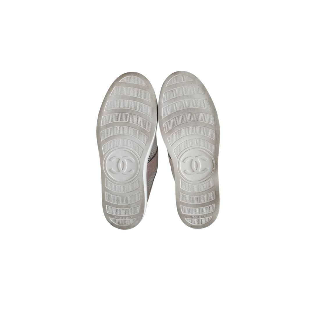 Chanel White and Grey Mesh Suede Low Top Sneakers, size 38