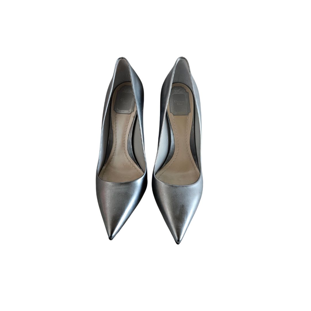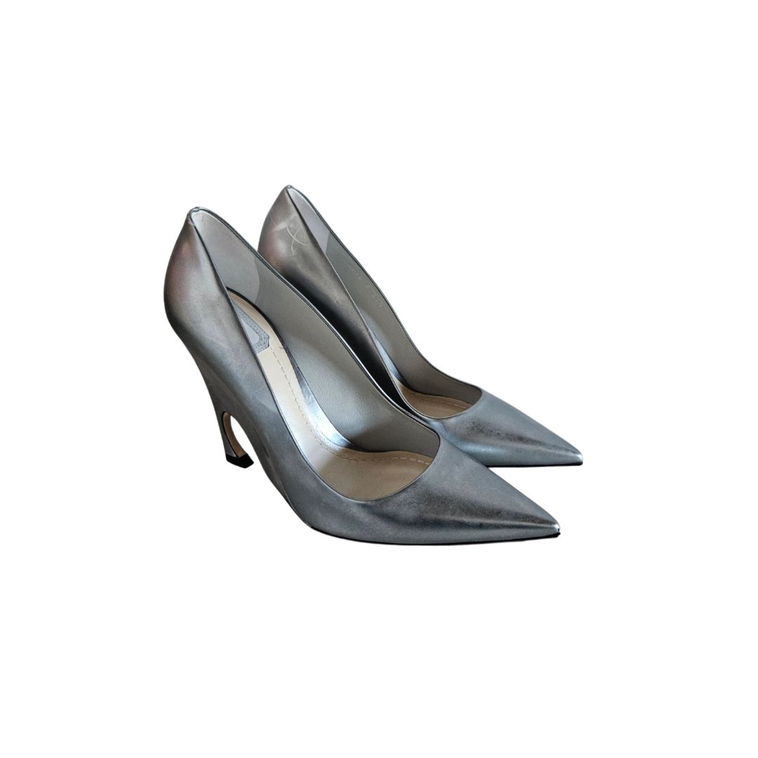 Christian Dior Grey Leather Pointed Detail Heel Pumps