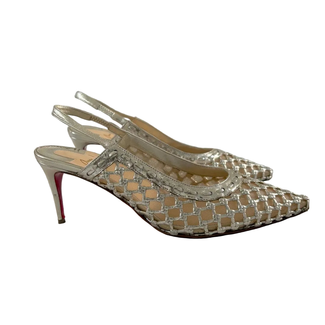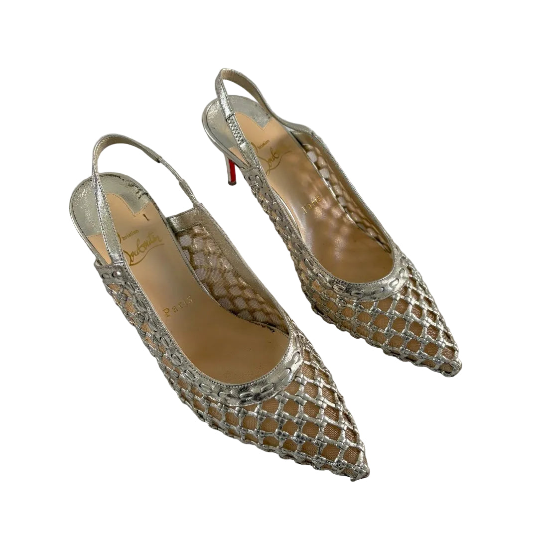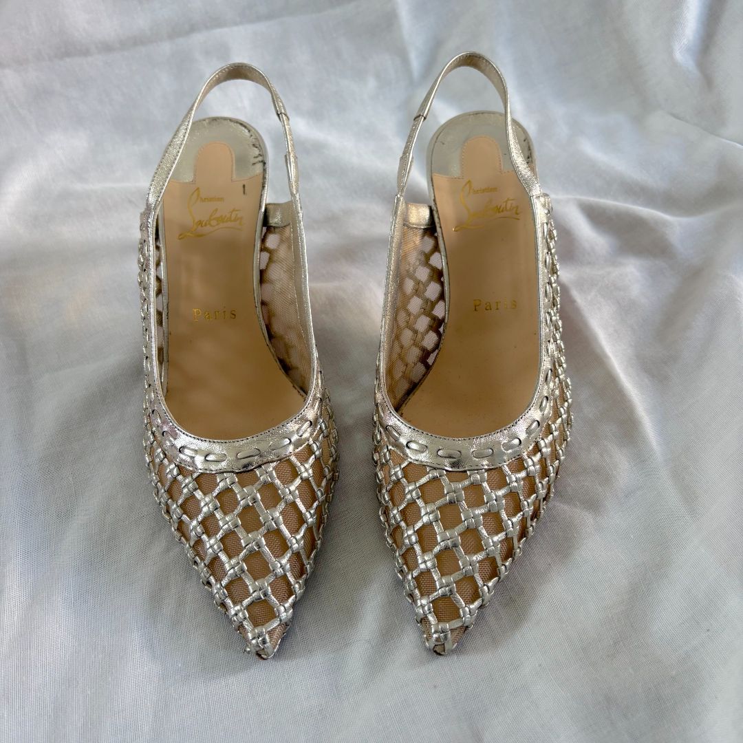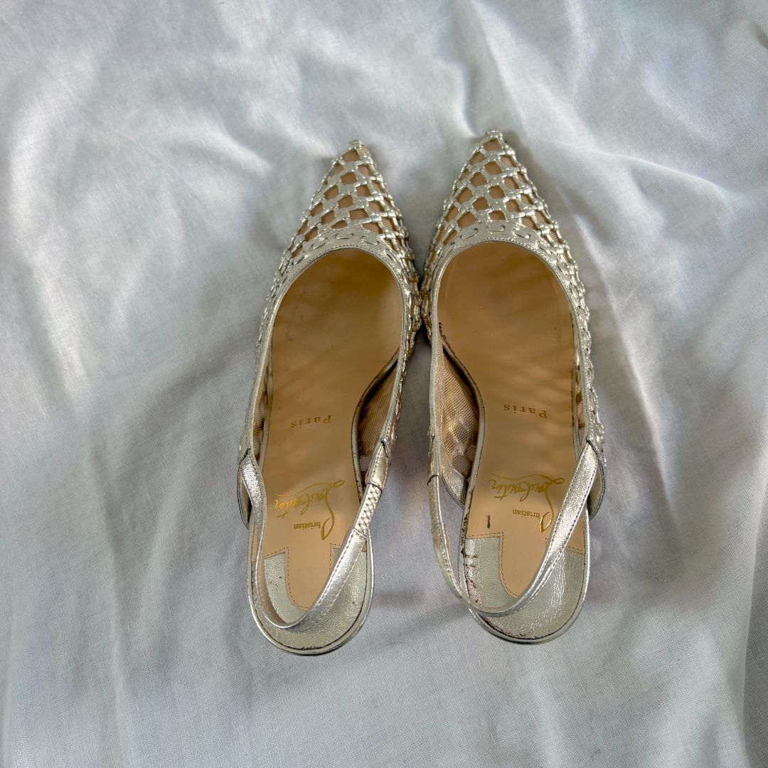 Christian Louboutin gold braided leather and mesh pointed toe mid heel