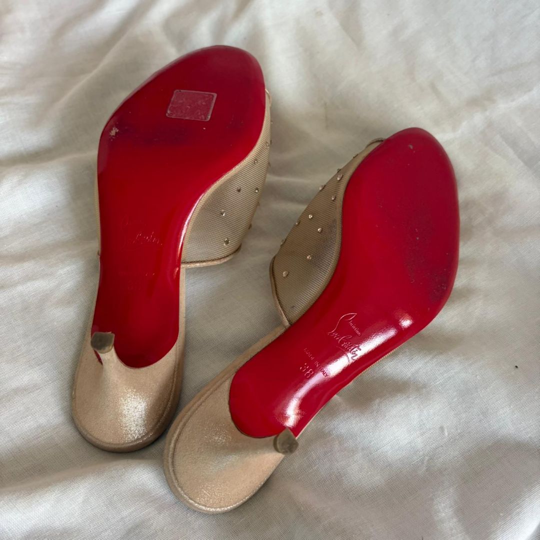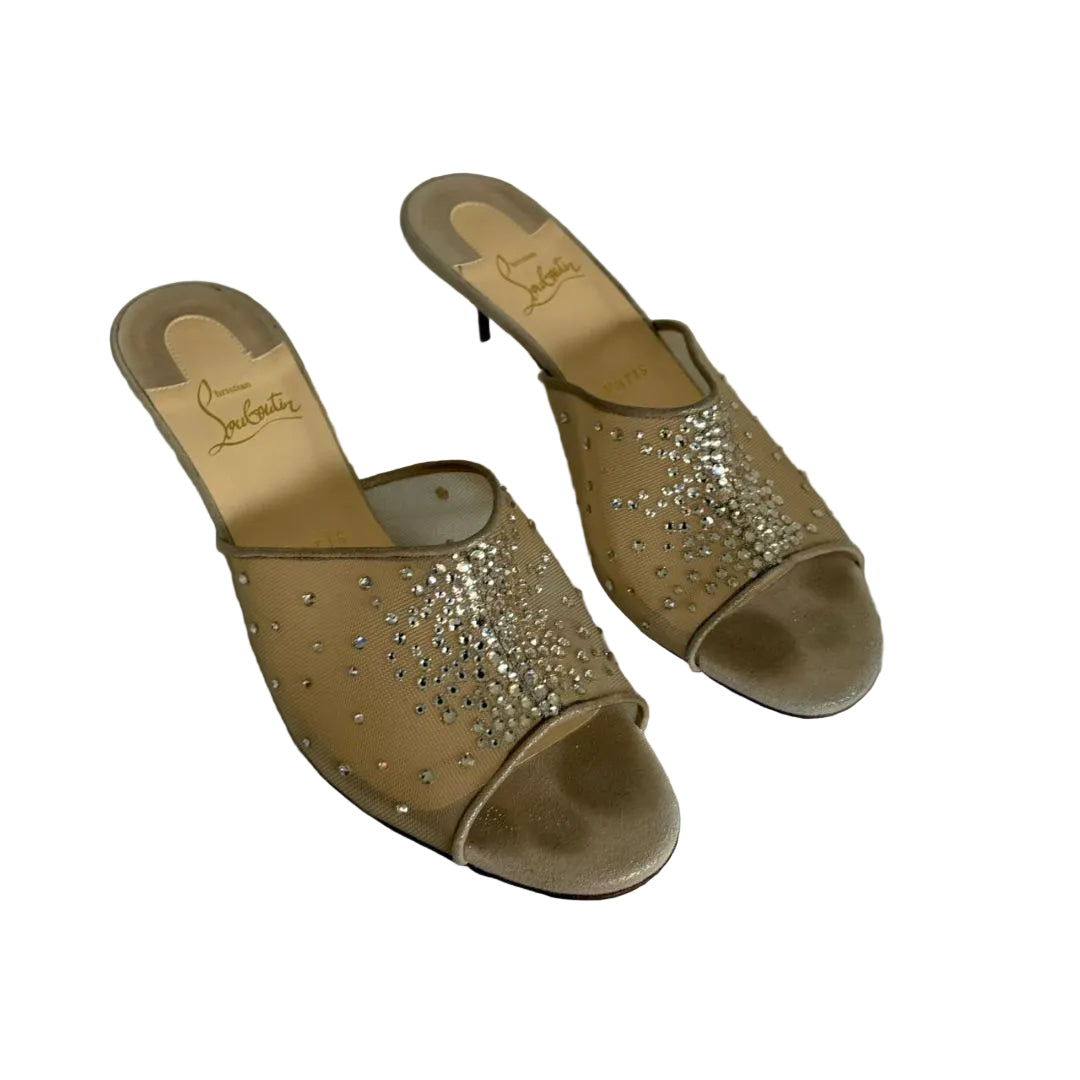 Christian Louboutin nude patent leather pumps with crystal on vamp