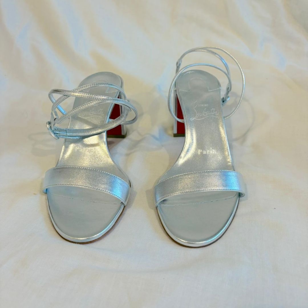Christian Louboutin silver leather strappy sandal heels, size 38 brand new