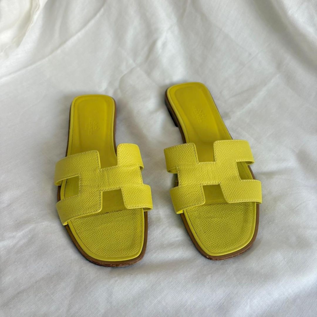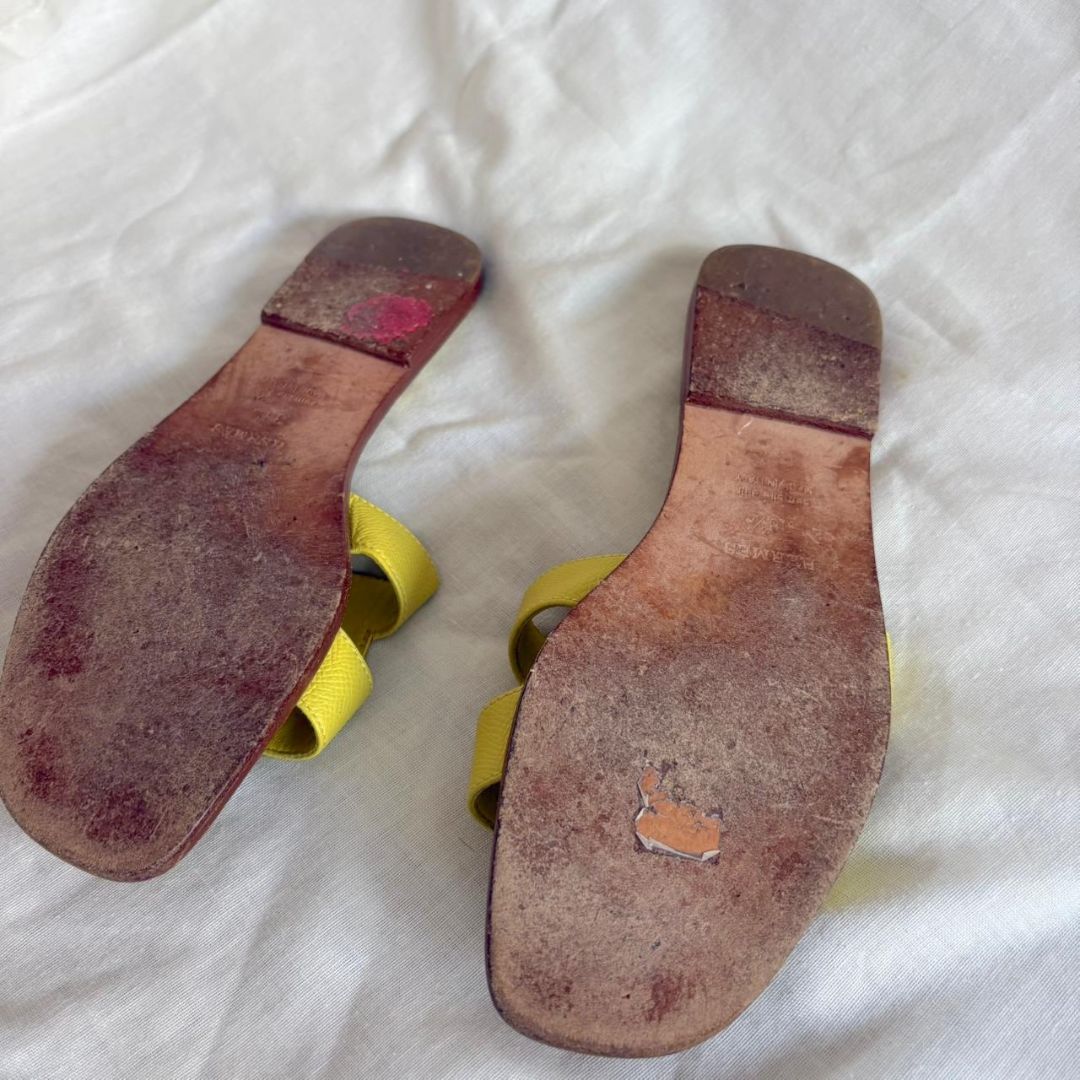 Hermes yellow epsom oran sandals