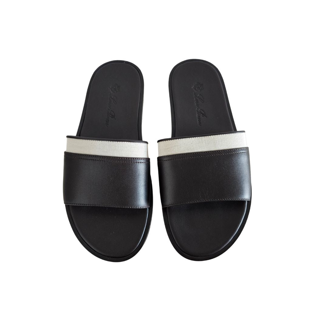 Loro Piana Dark Brown Leather Mens Slide Flat, size 41