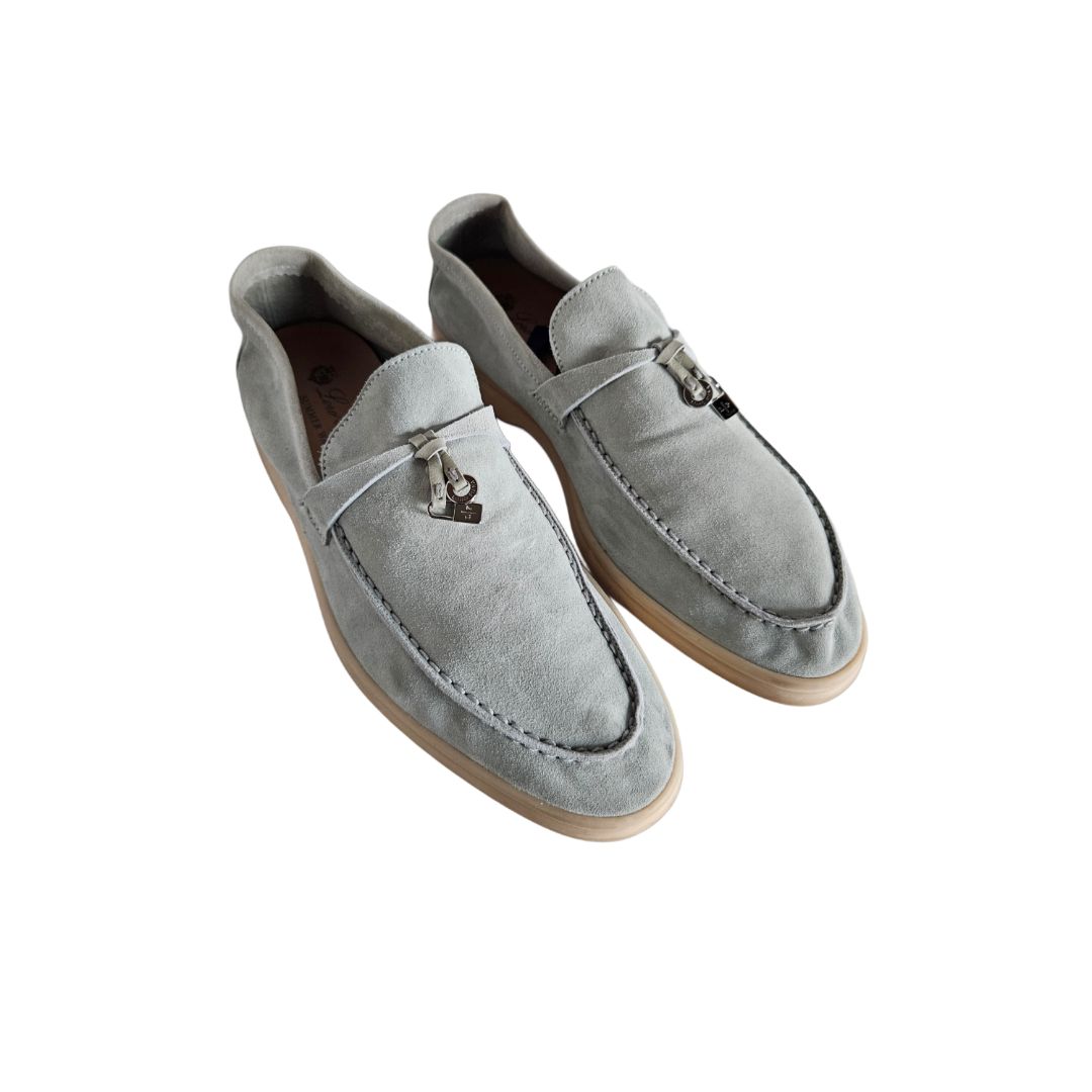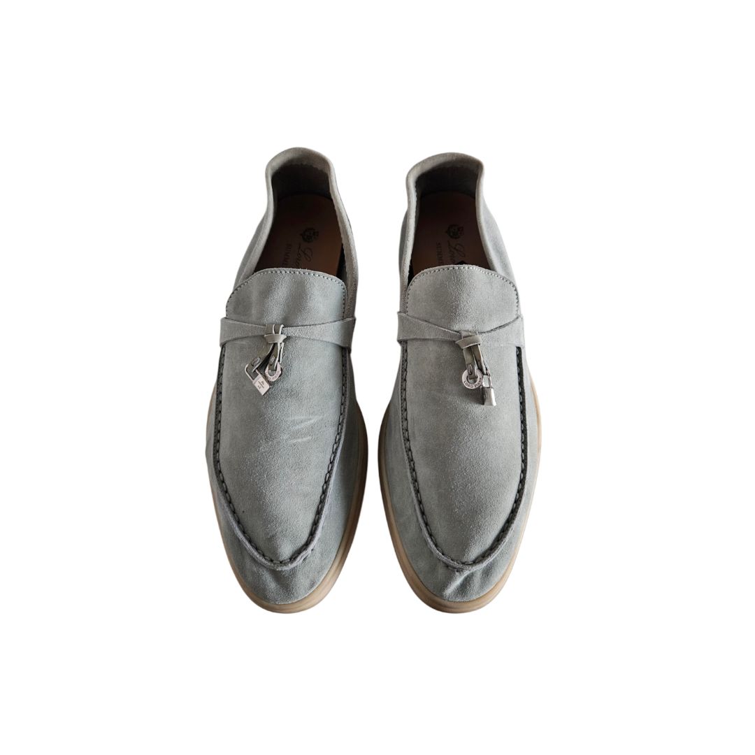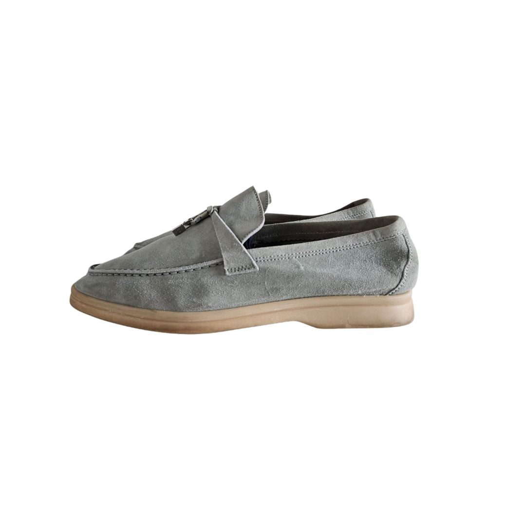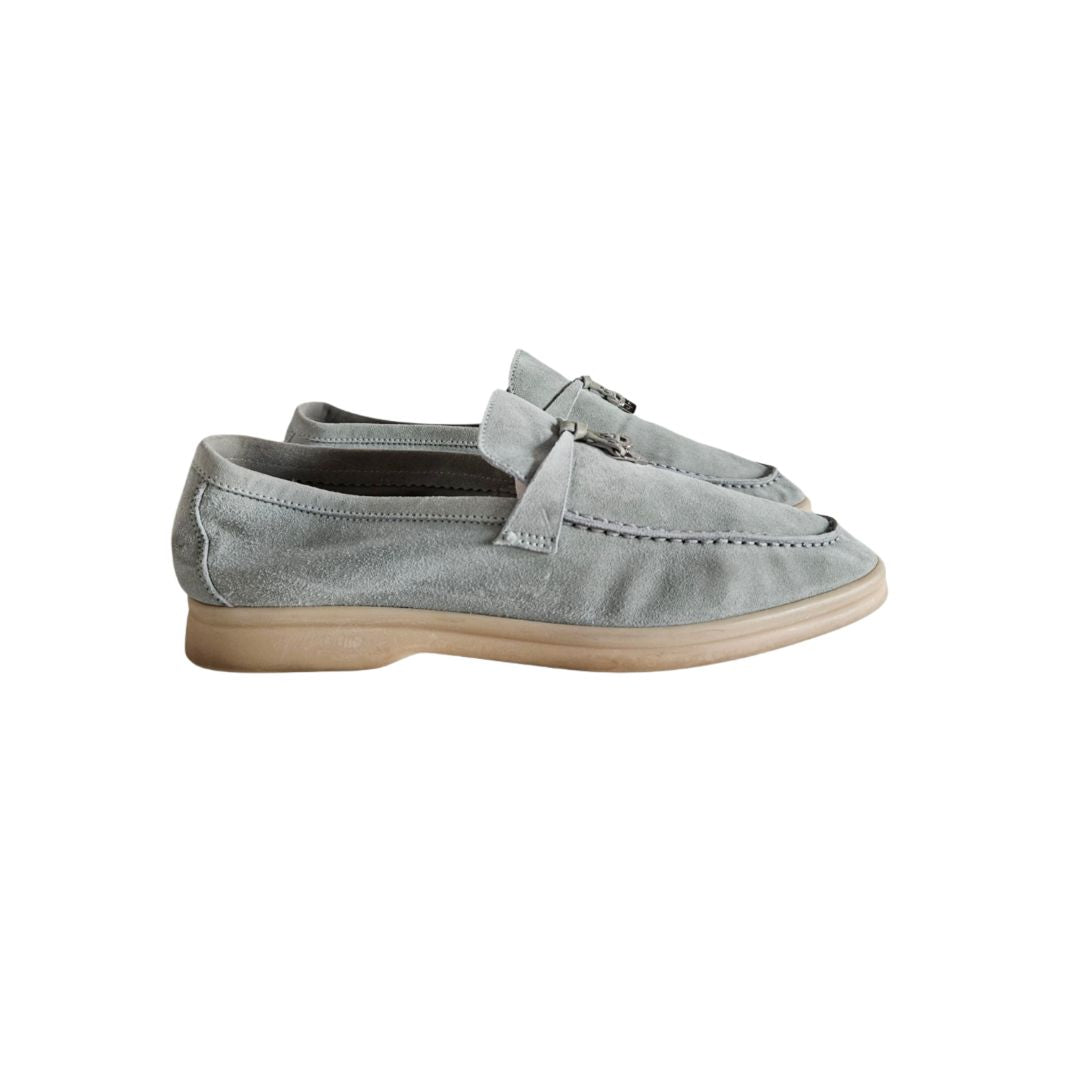 Loro Piana Summer Charms Walk Light Blue Suede Slip On Loafers, Size 40