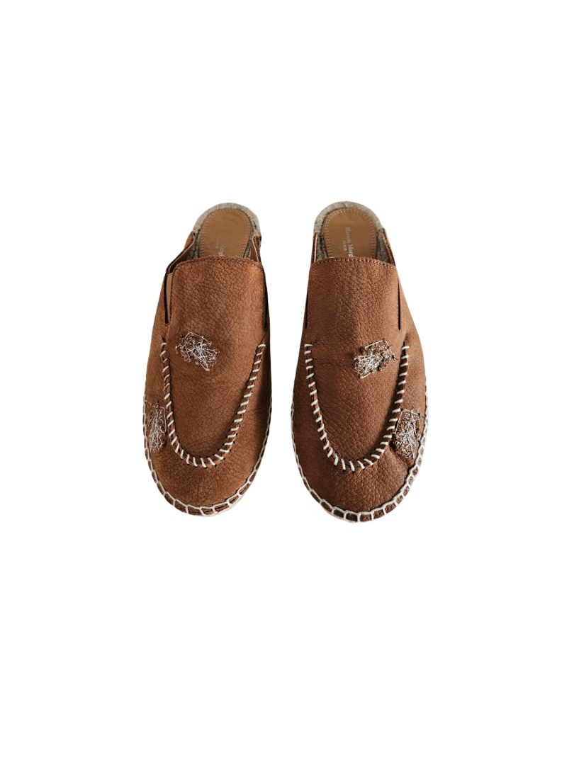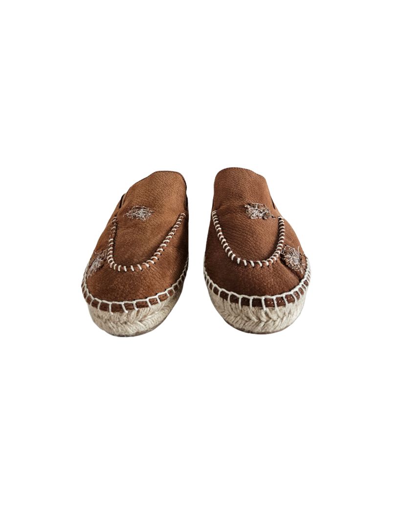 Maison Margiela Brown Embroidered Pebbled-Leather Espadrilles Mules