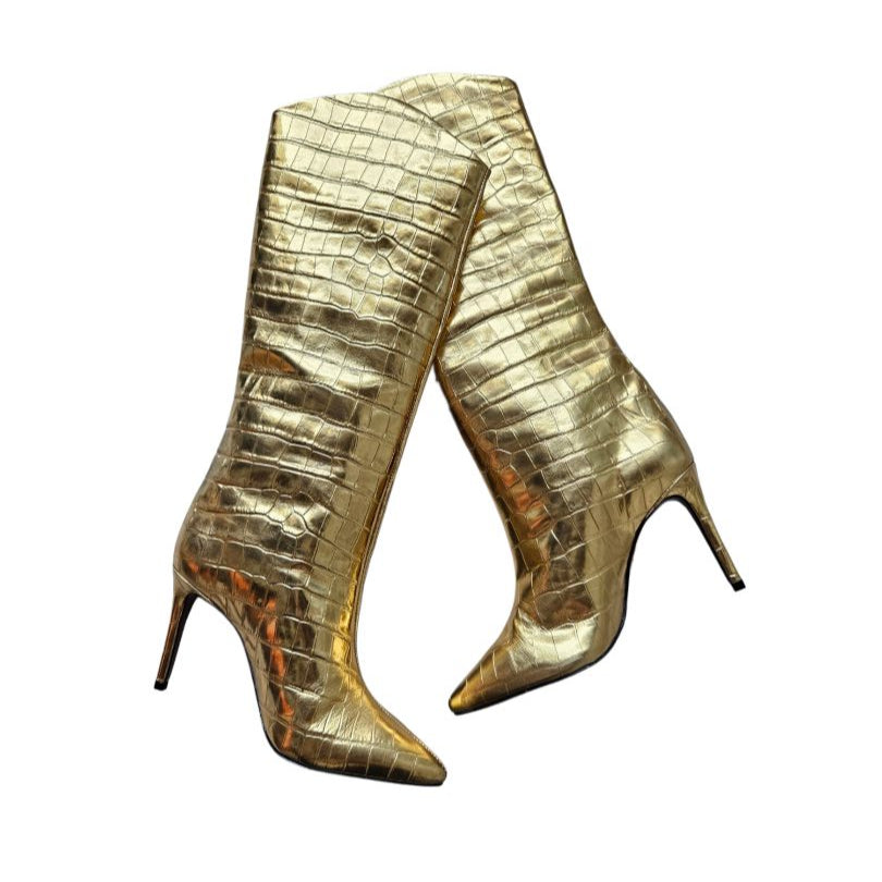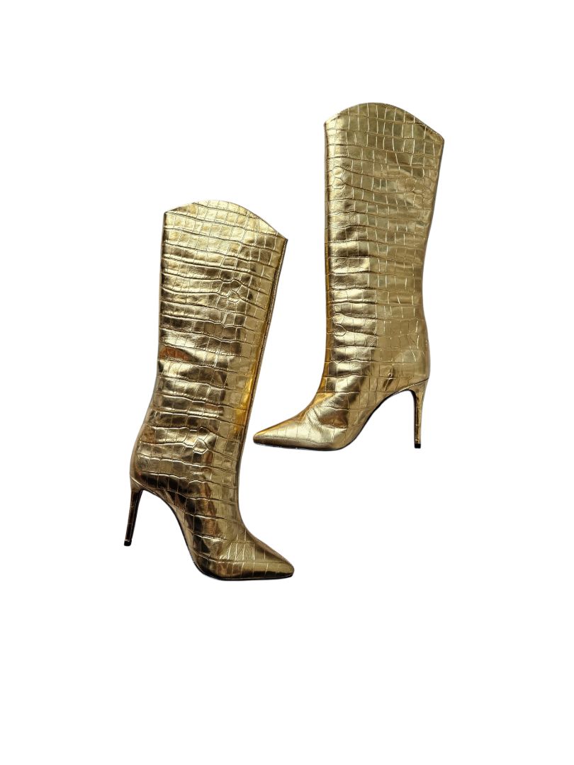 Schutz Gold Maryana Croc Embossed Knee-High Boots