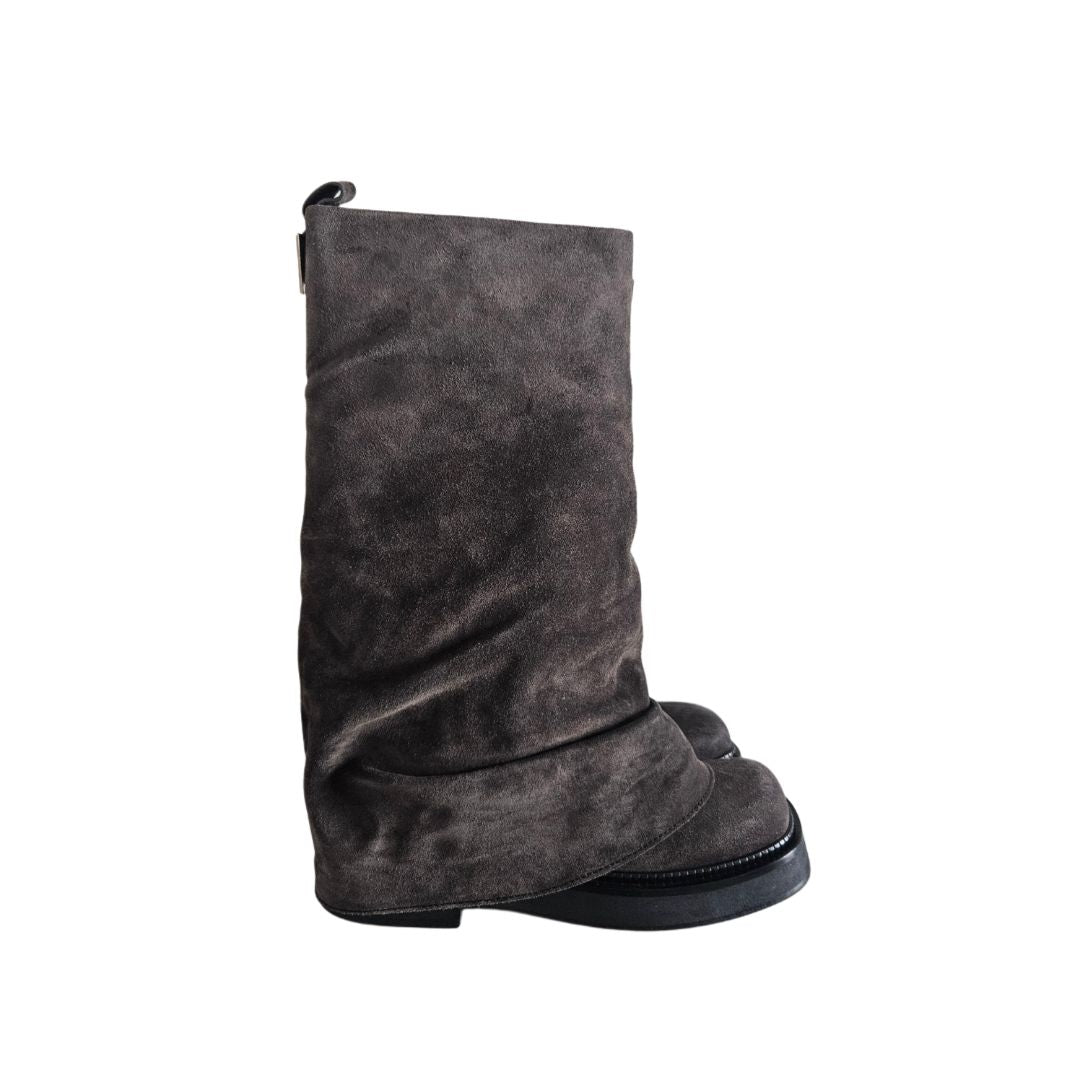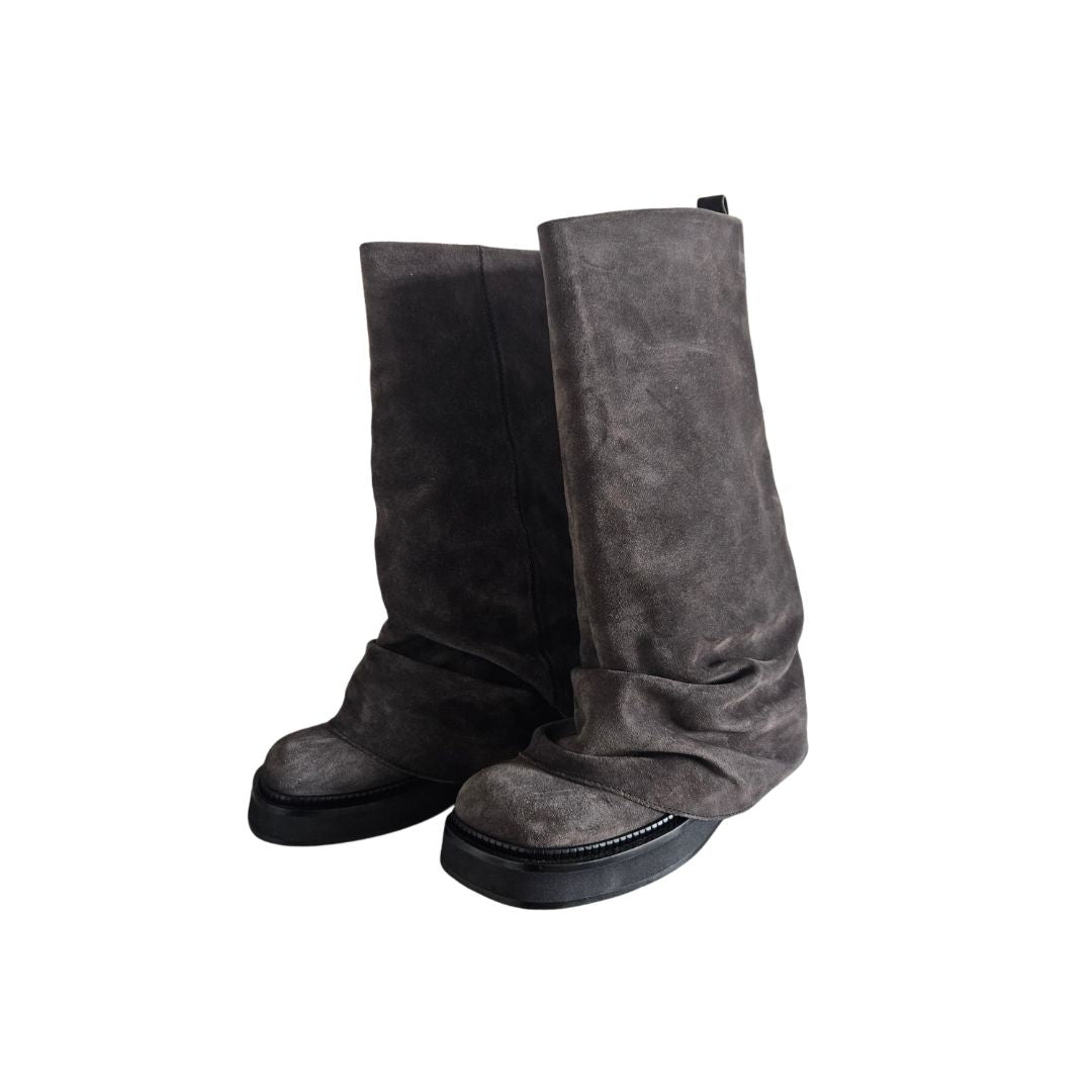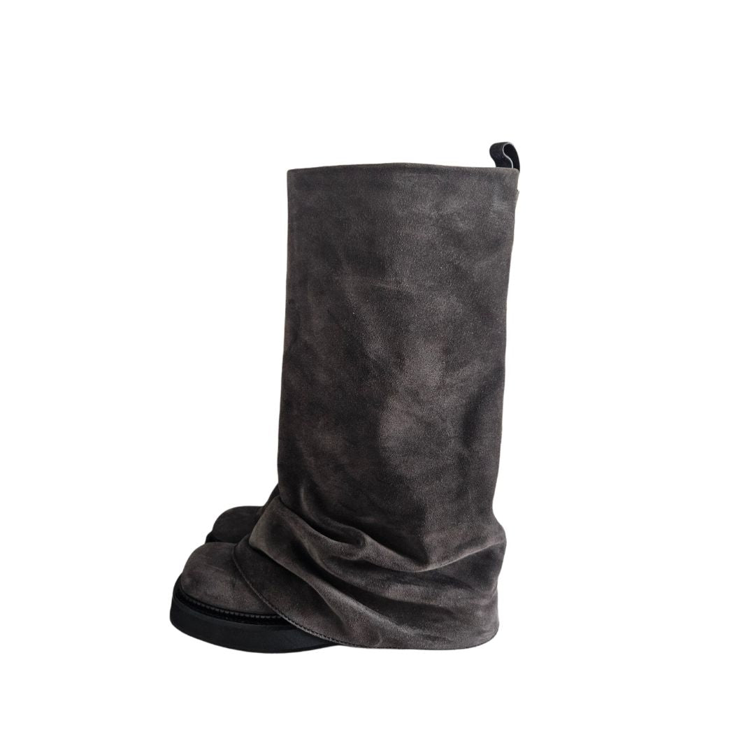 The Attico-Robin Suede Grey Combat Knee Boots,