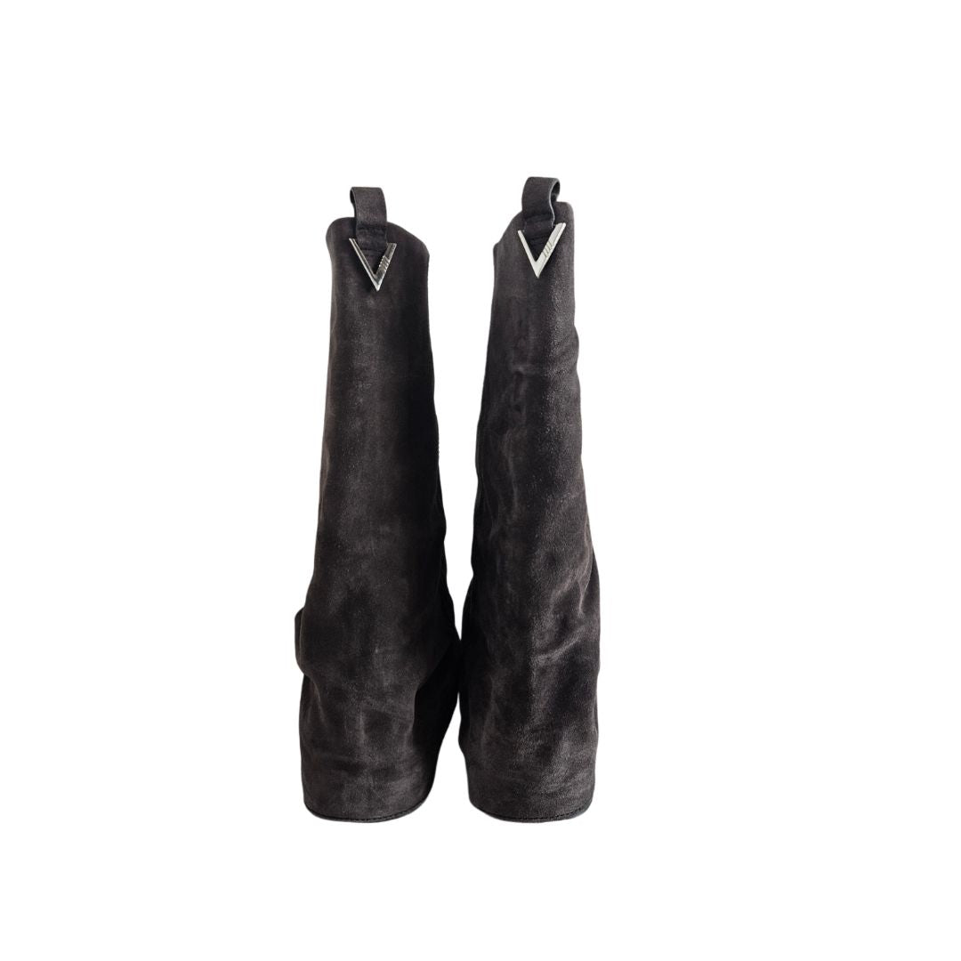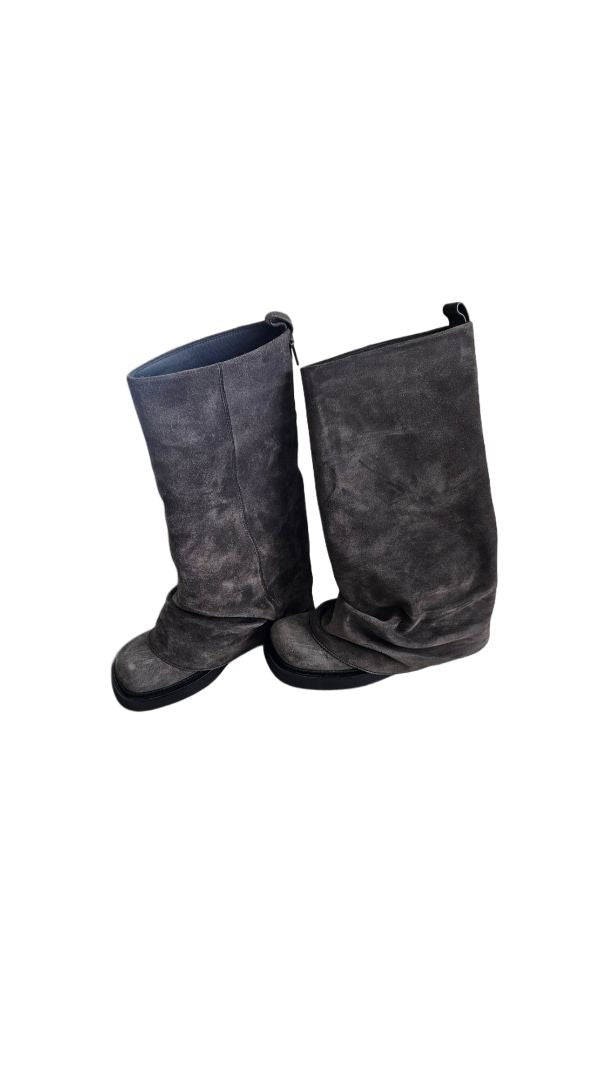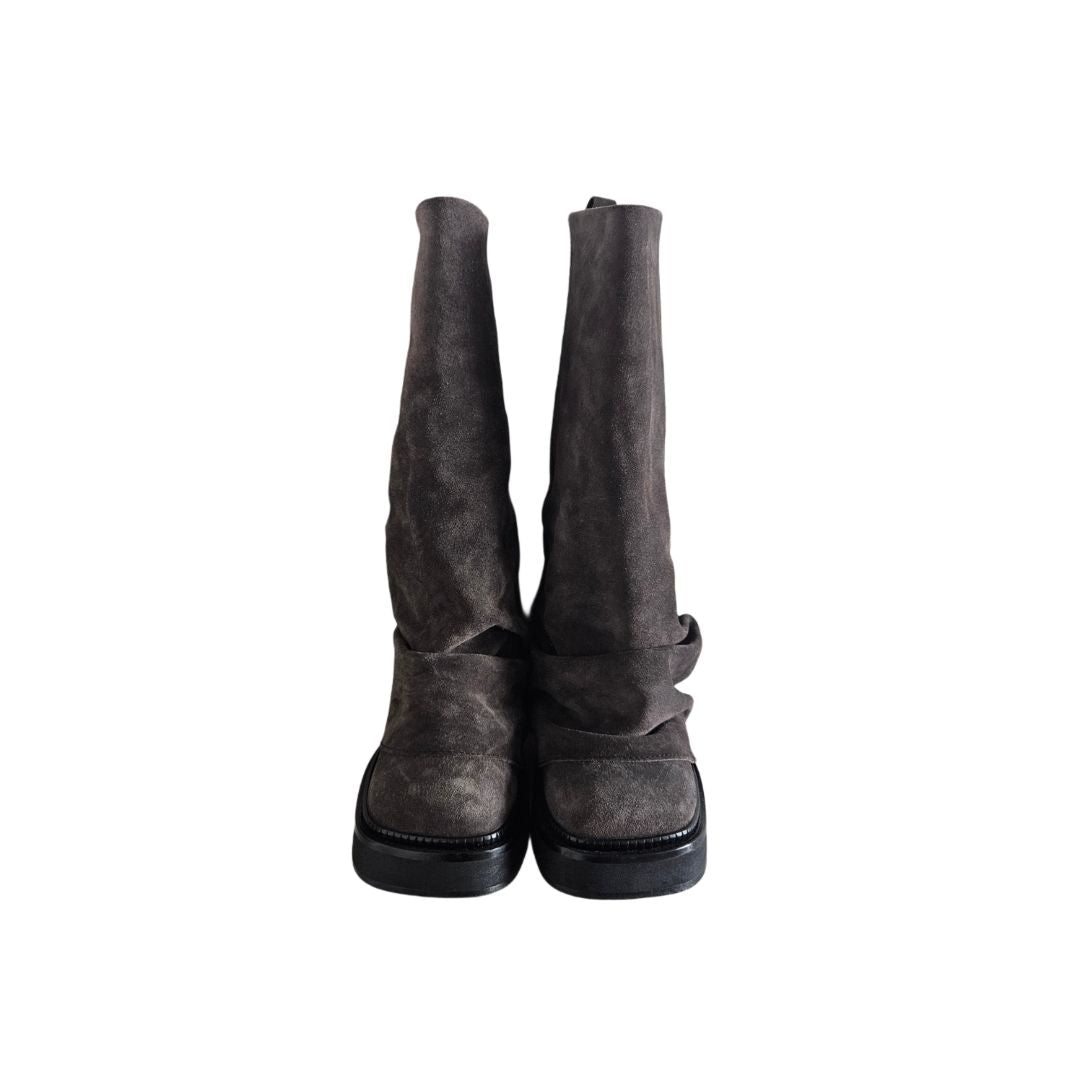 The Attico-Robin Suede Grey Combat Knee Boots,