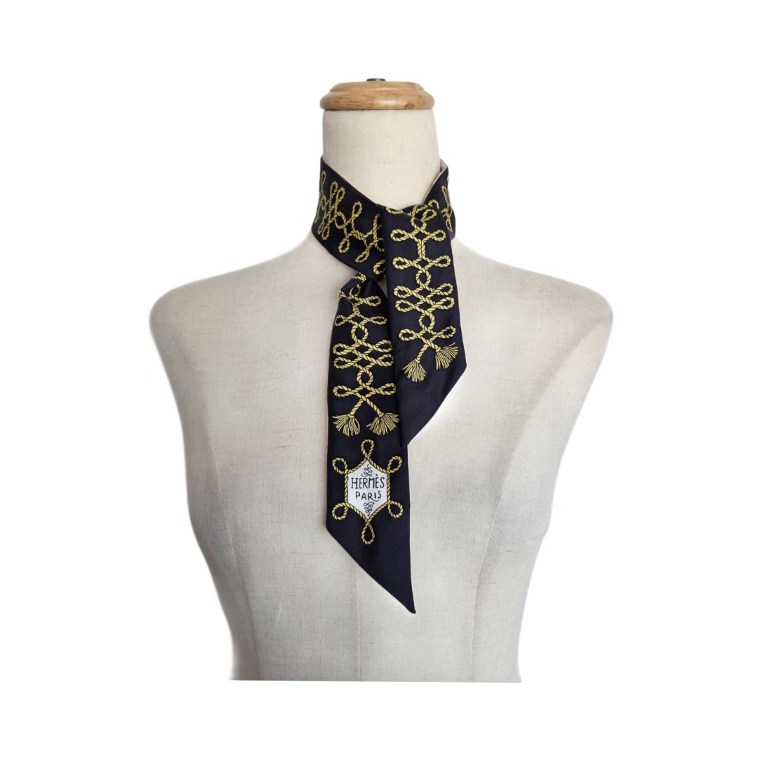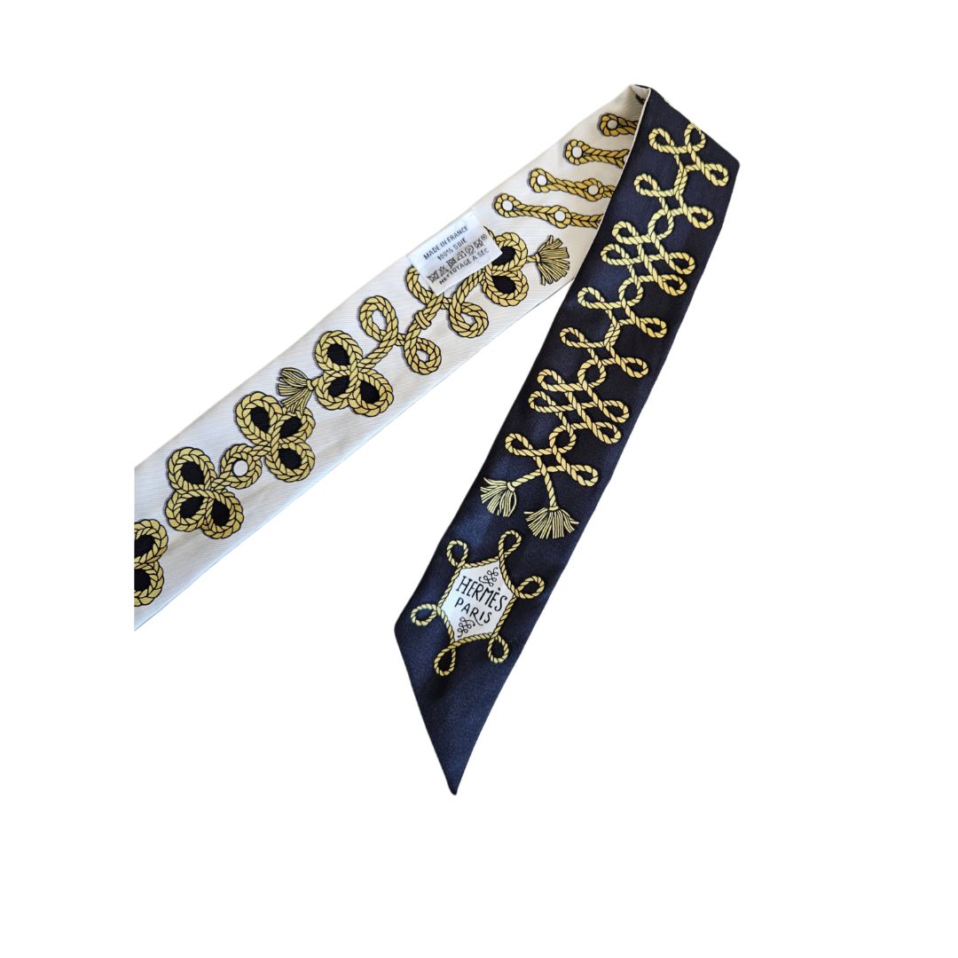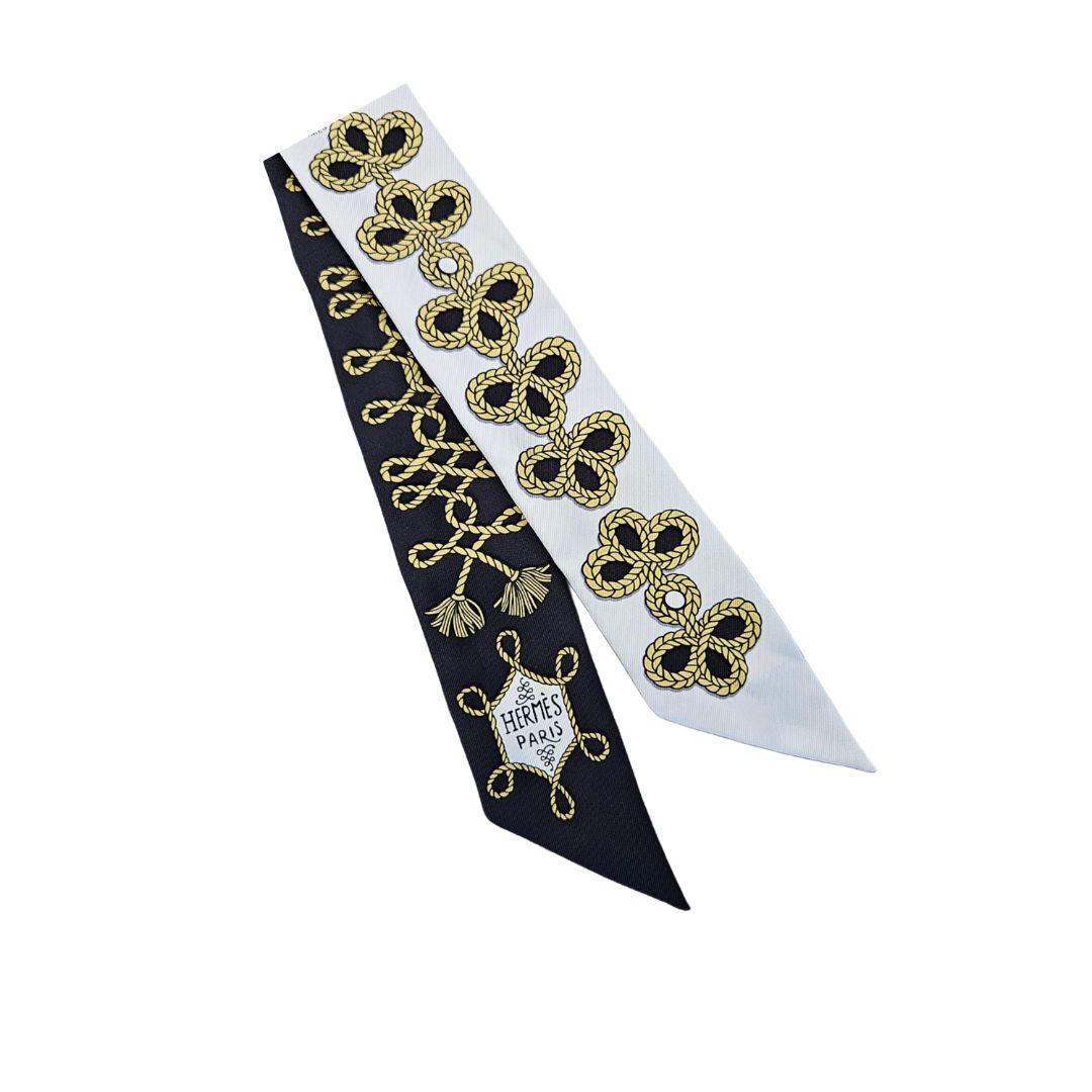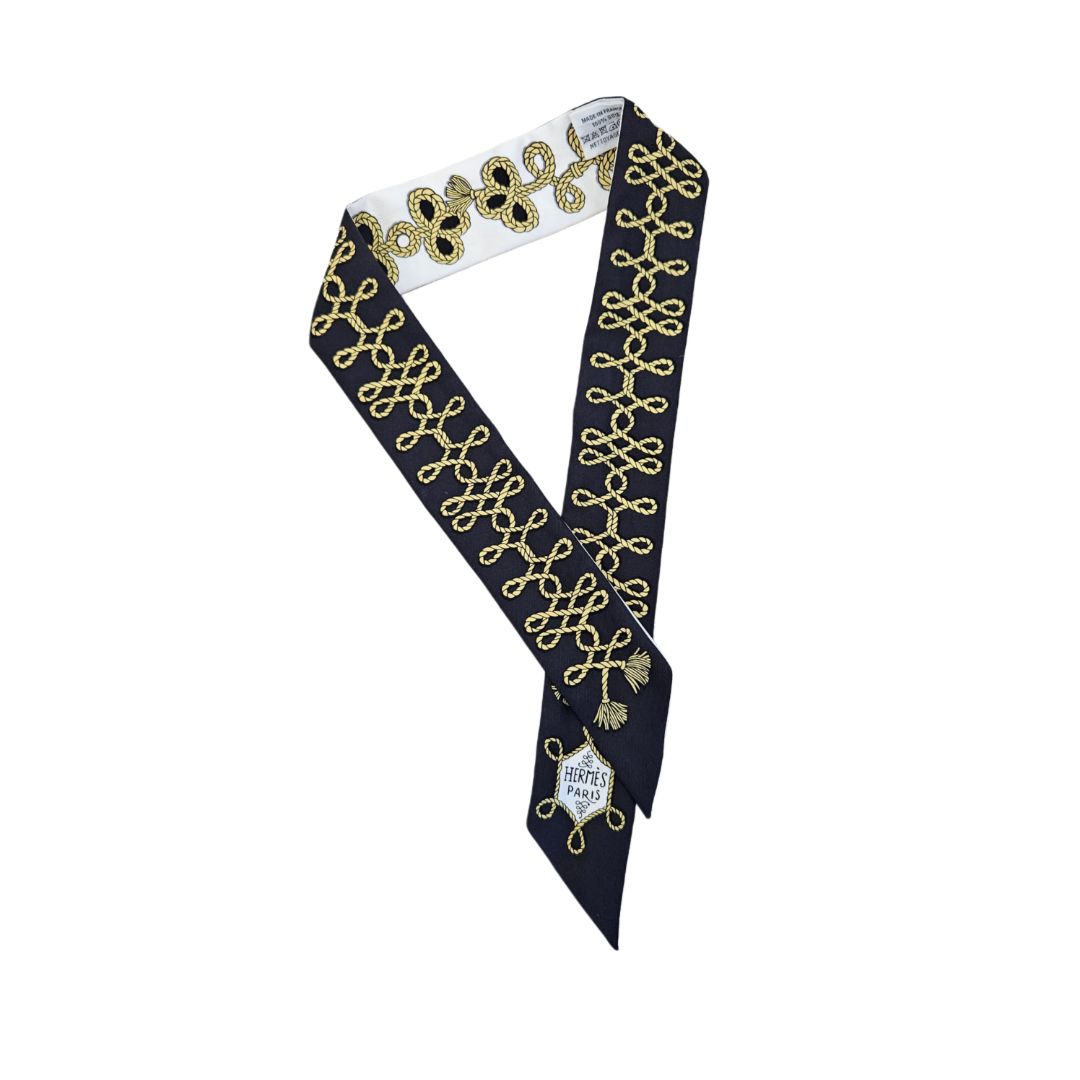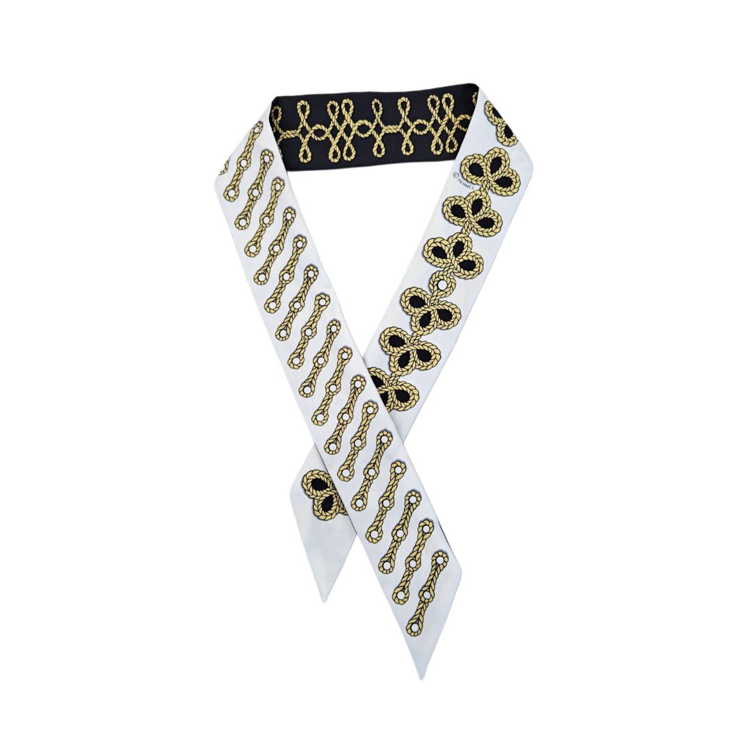 Hermes Blak/Gold/White Silk Galons Et Brandebourg Twilly