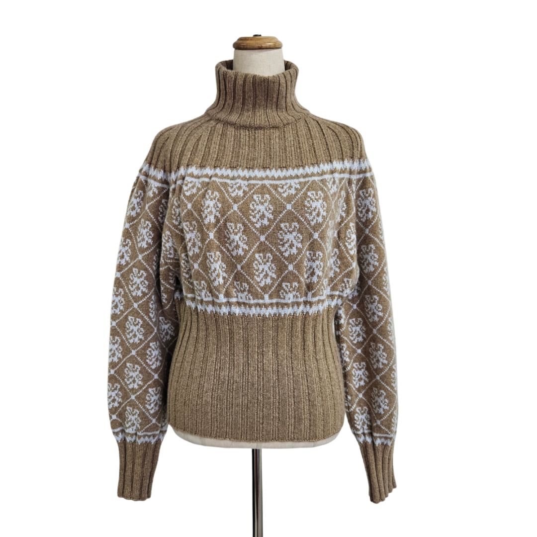 Hermes Knit Turtleneck Cashmere Light Brown /Grey Sweater