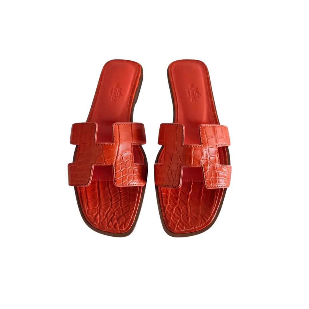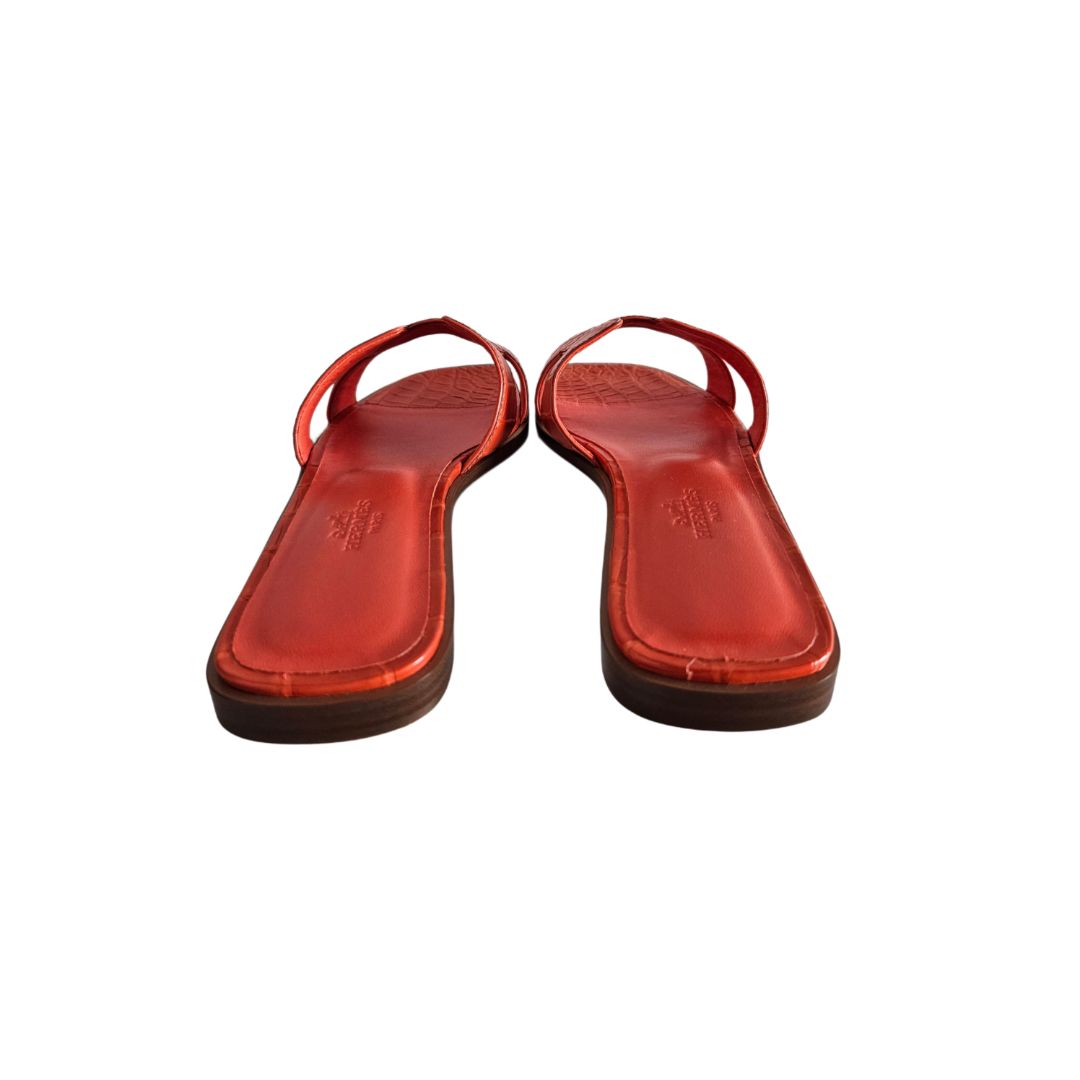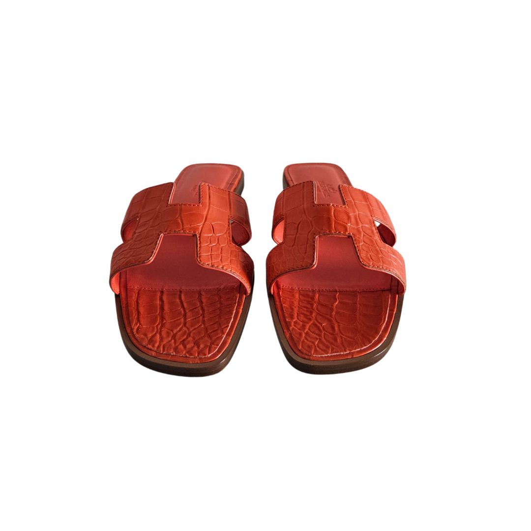 Hermes Orange Croc Leather Oran Sandal