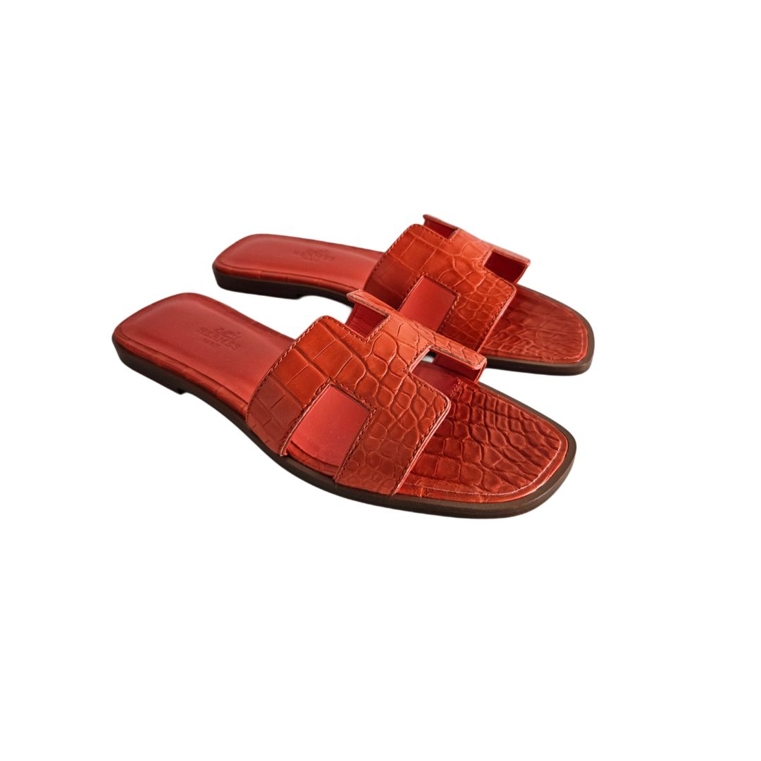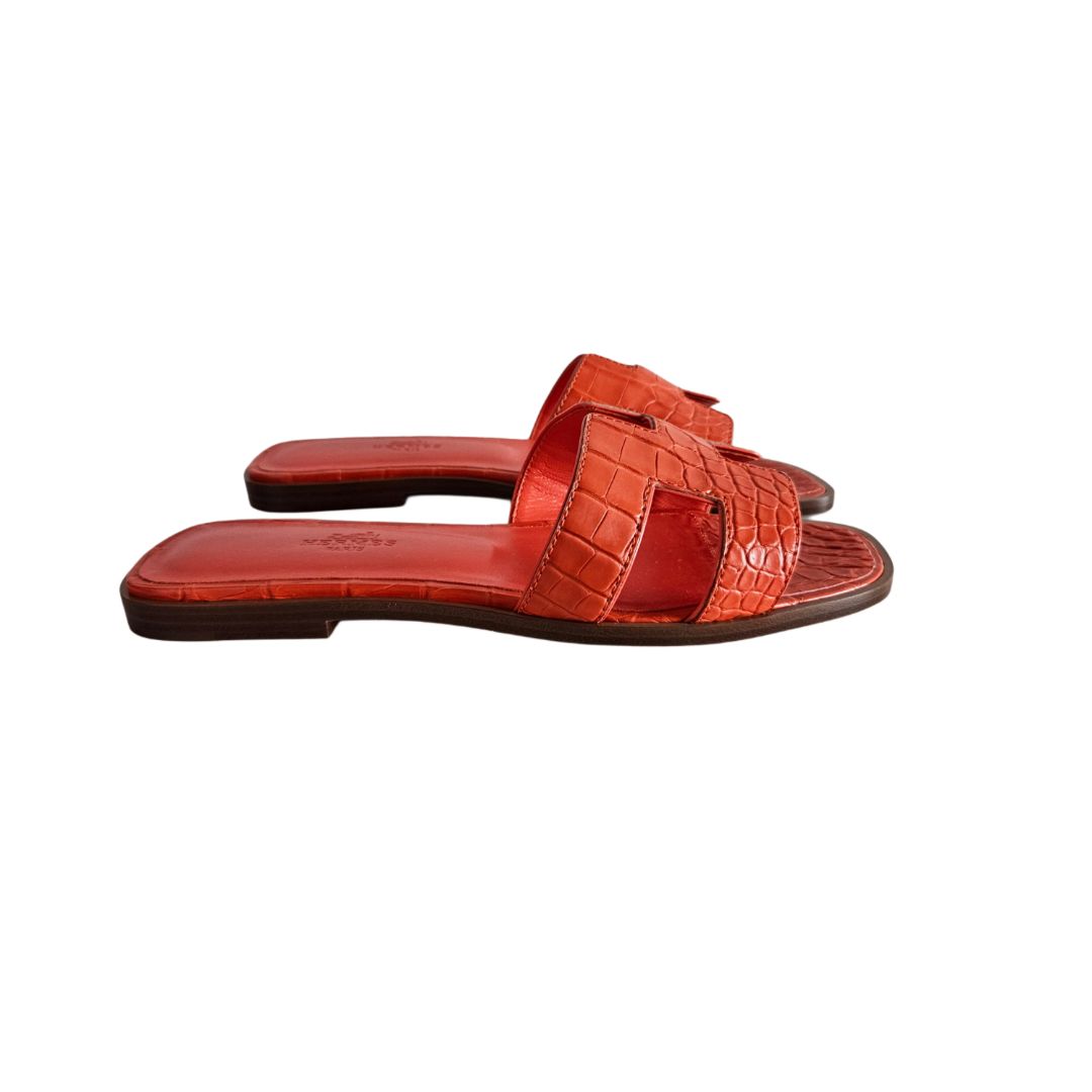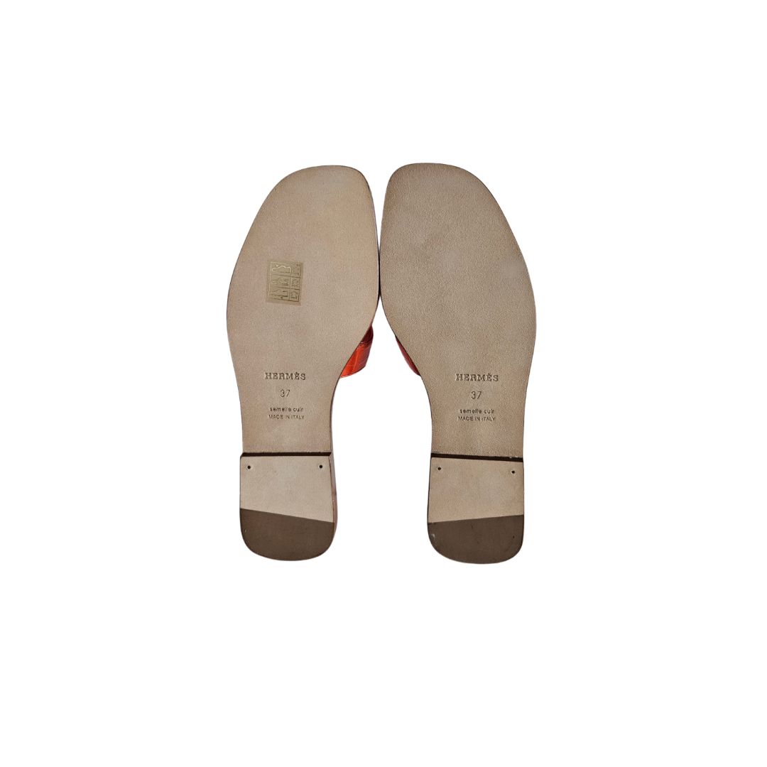 Hermes Orange Croc Leather Oran Sandal, Size 37
