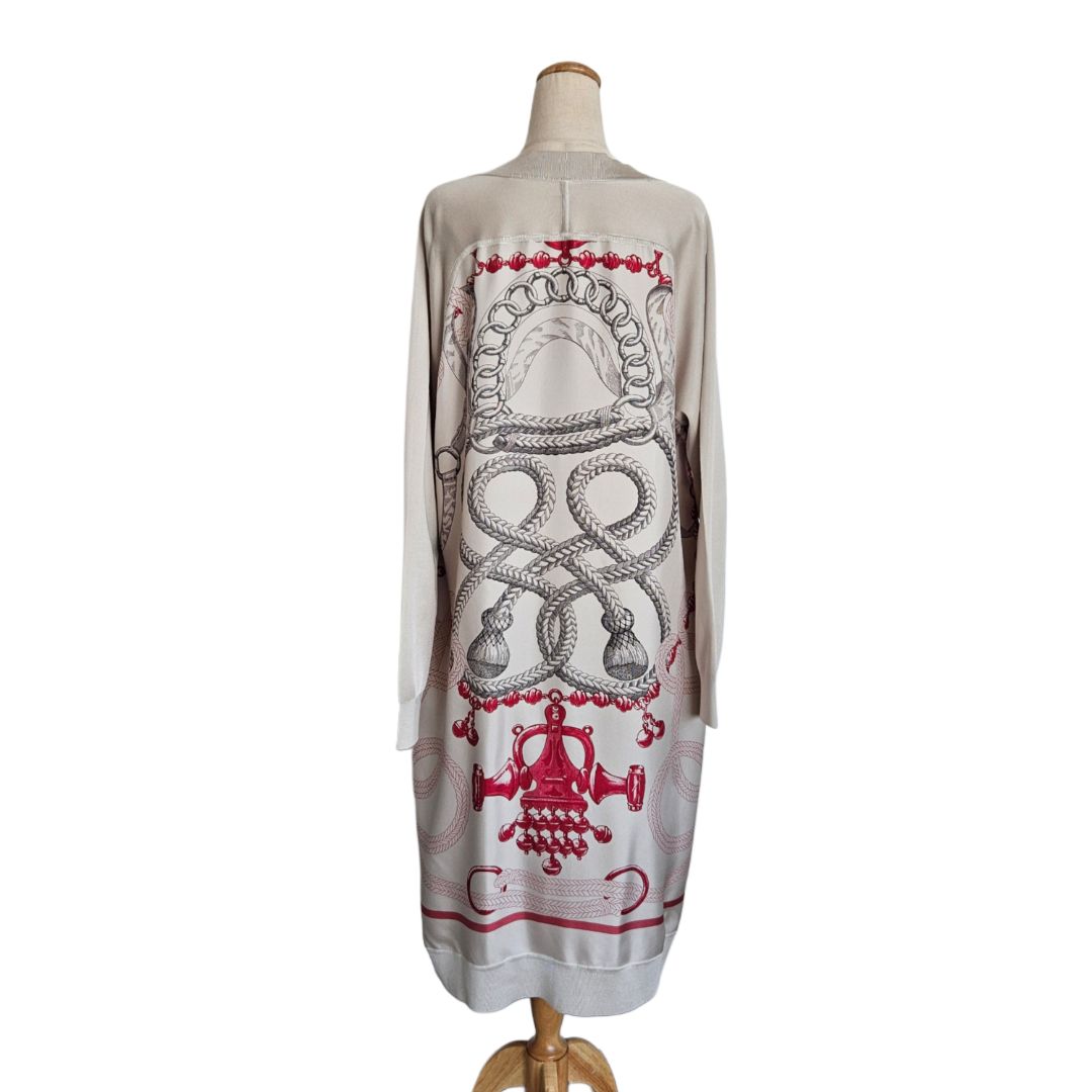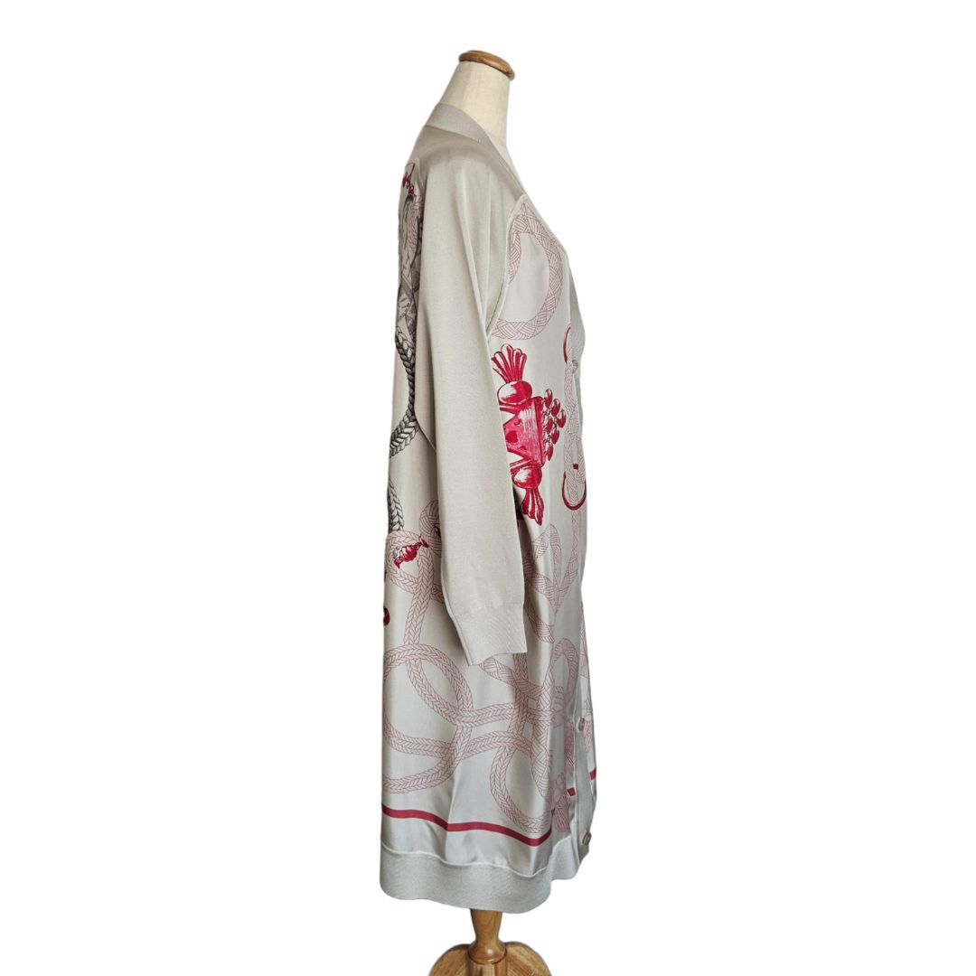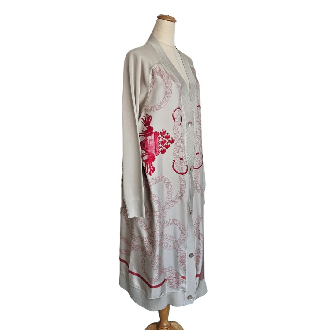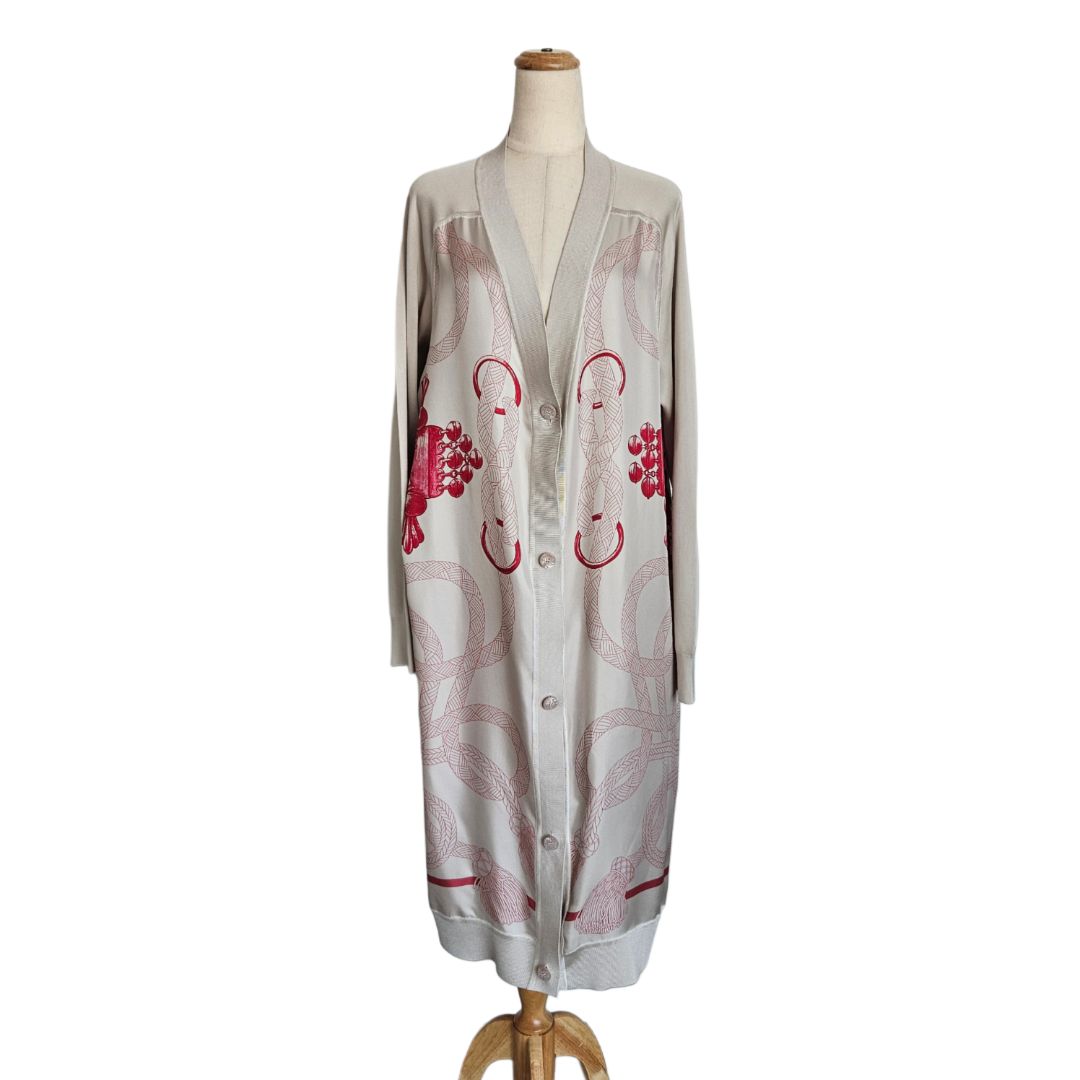 Hermes Pink/Khaki Long Sleeve Twillaine Palefroi Remix Print Silk Cardigan