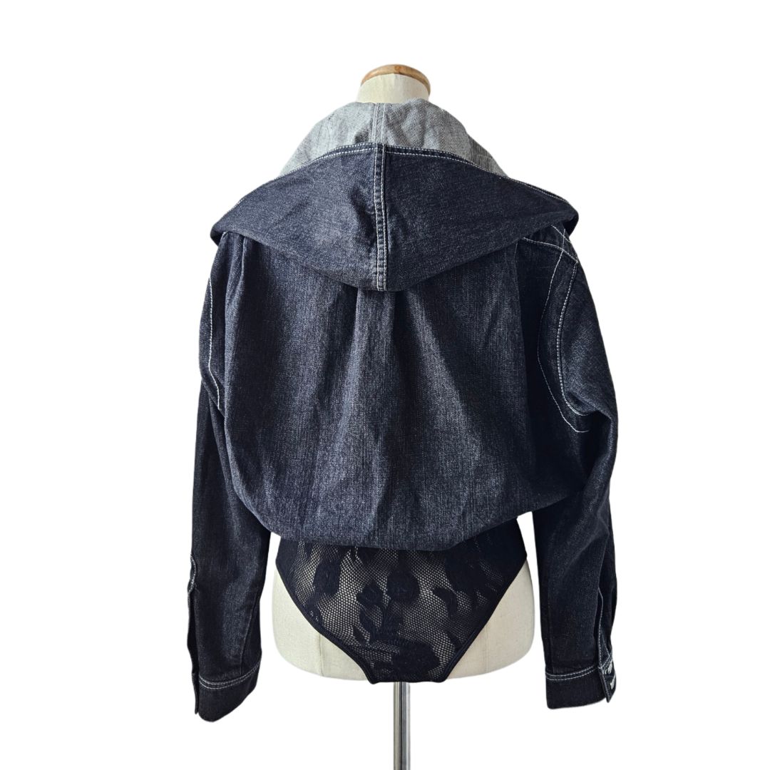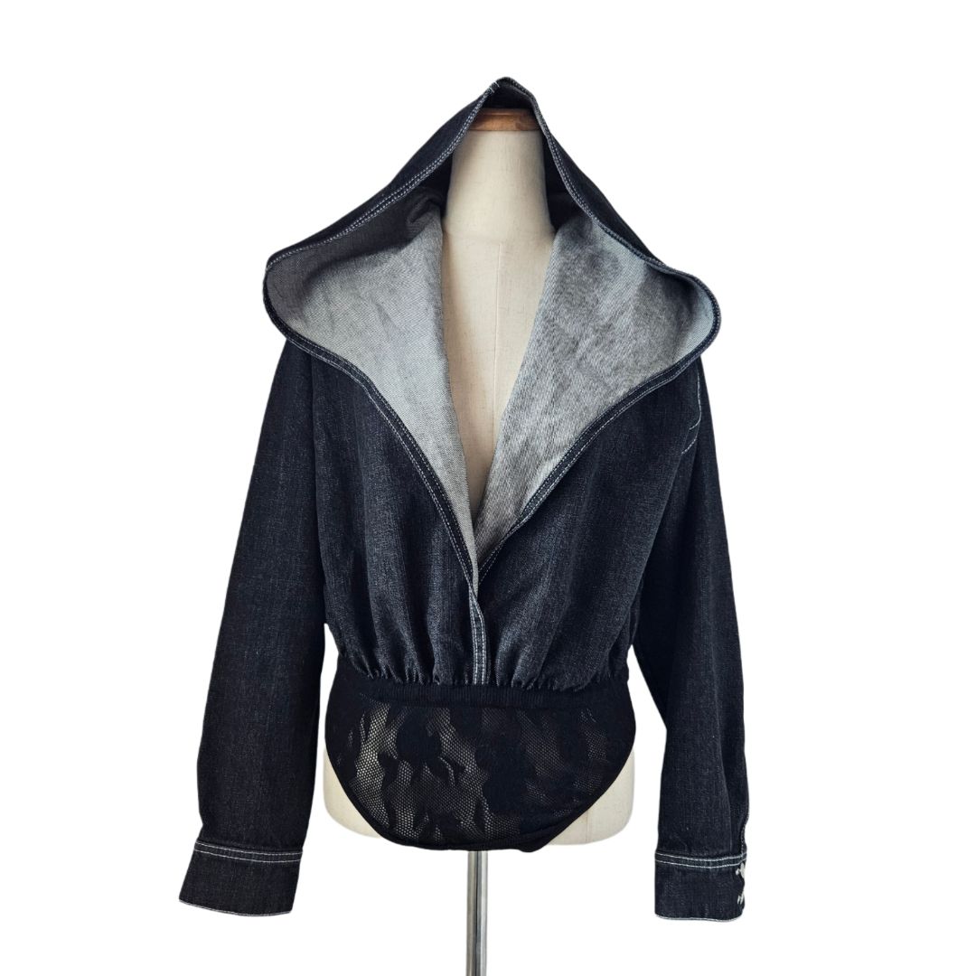 Alaia archetypes hooded denim and stretch-lace bodysuit