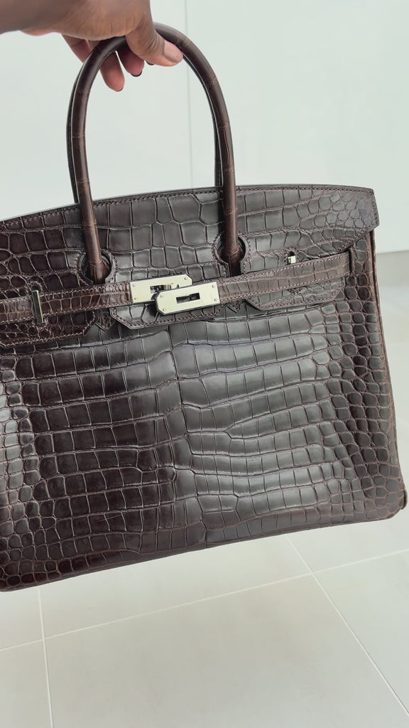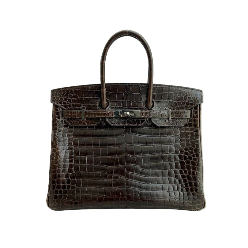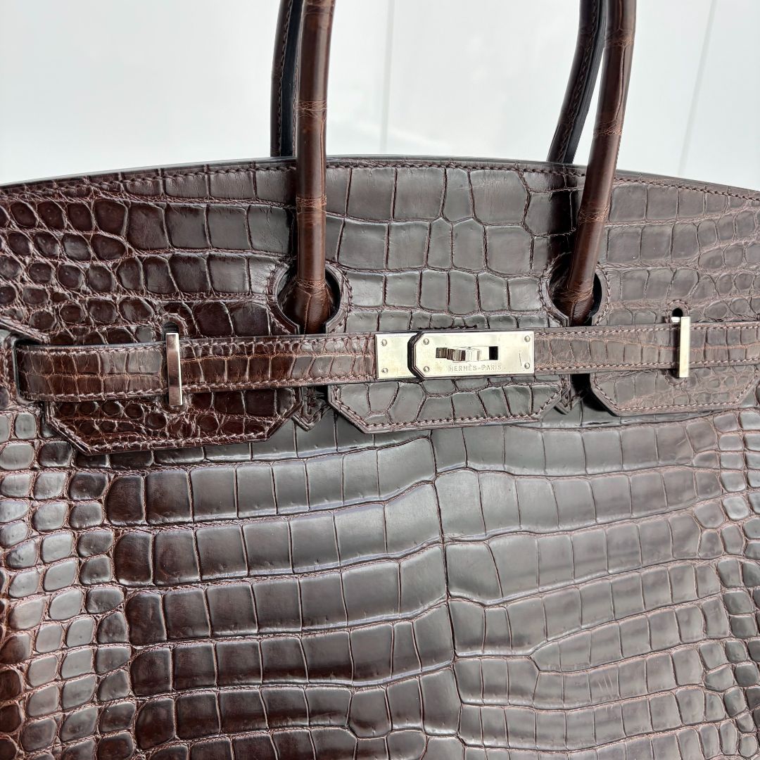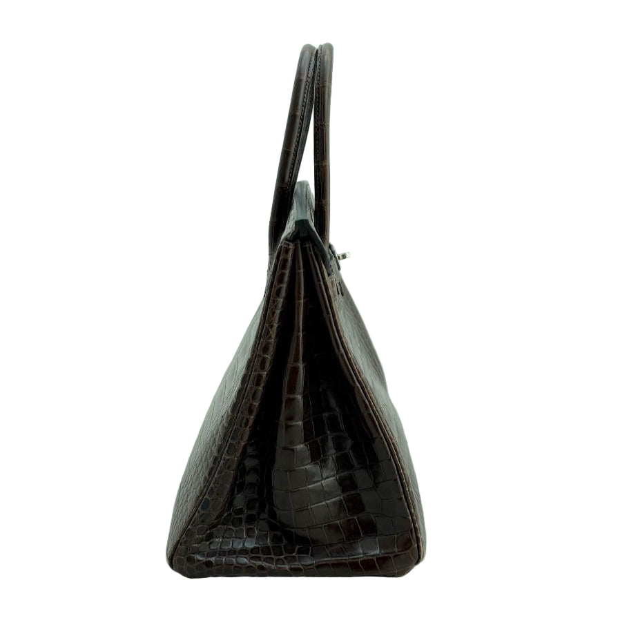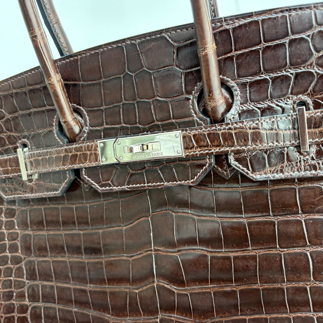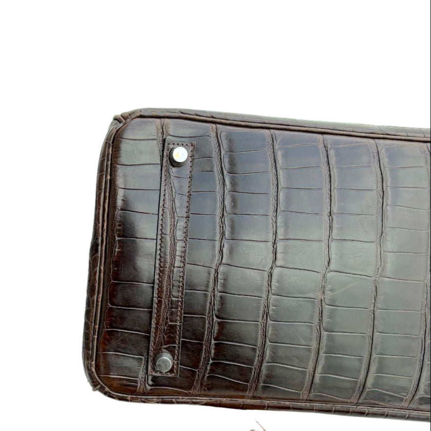 Hermès Chocolate Brown Porosus Crocodile Palladium Hardware Birkin 35
