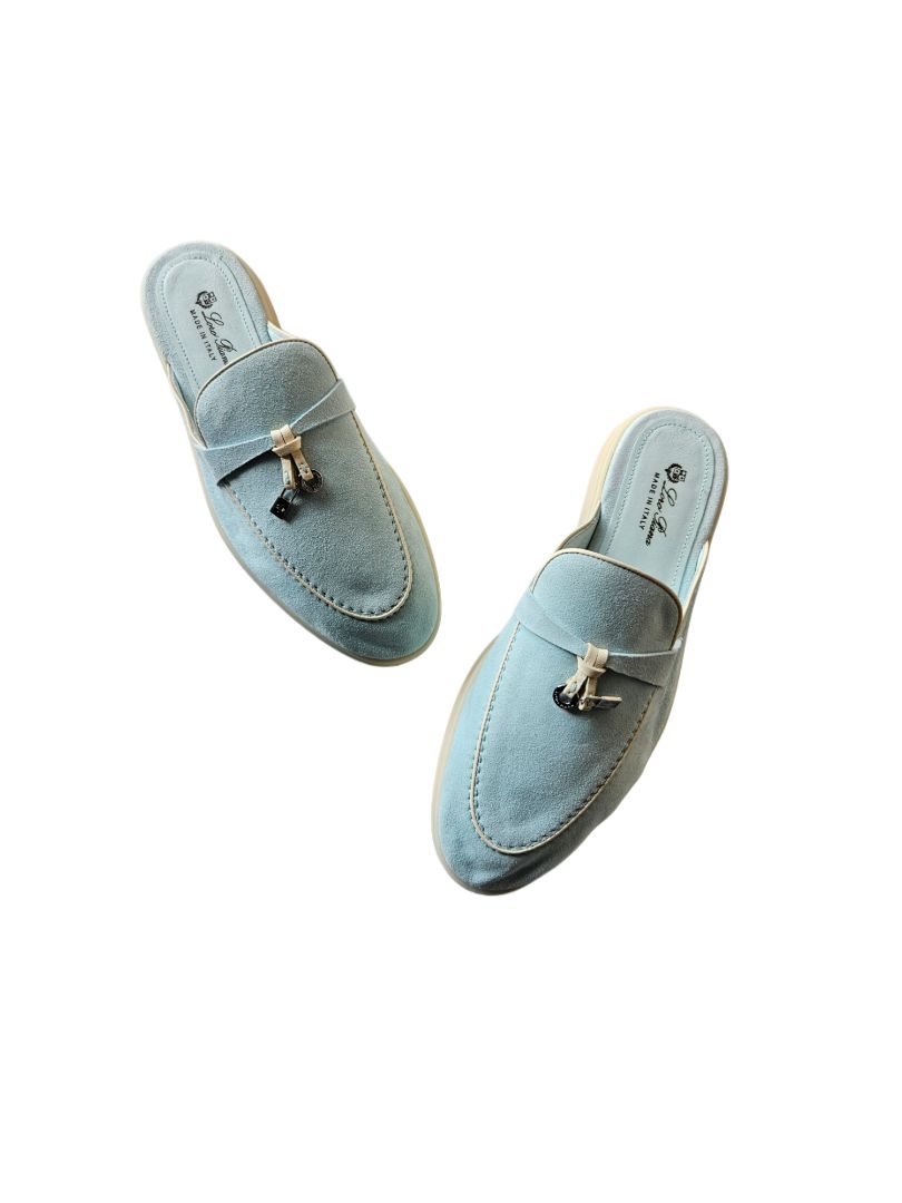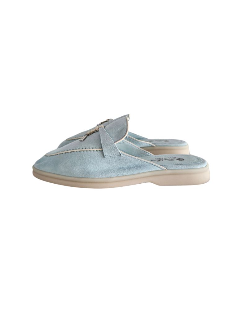 Loro Piana Light Blue Suede Babouche Charms Walk Mules , size 38.5
