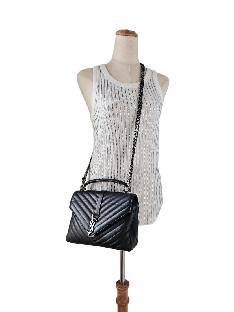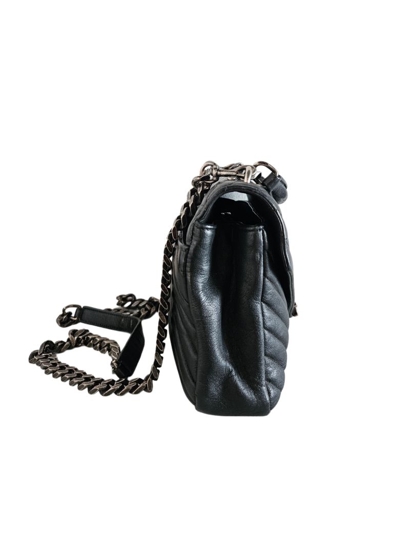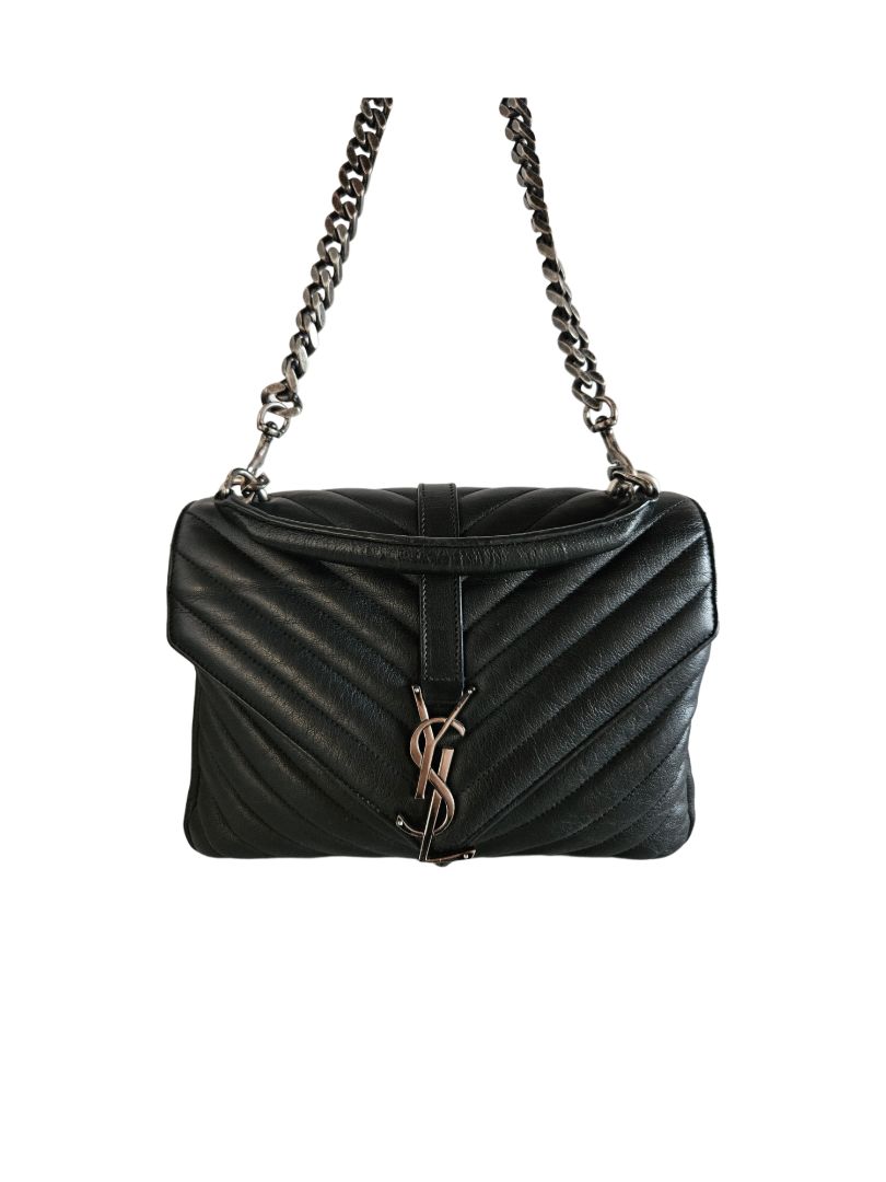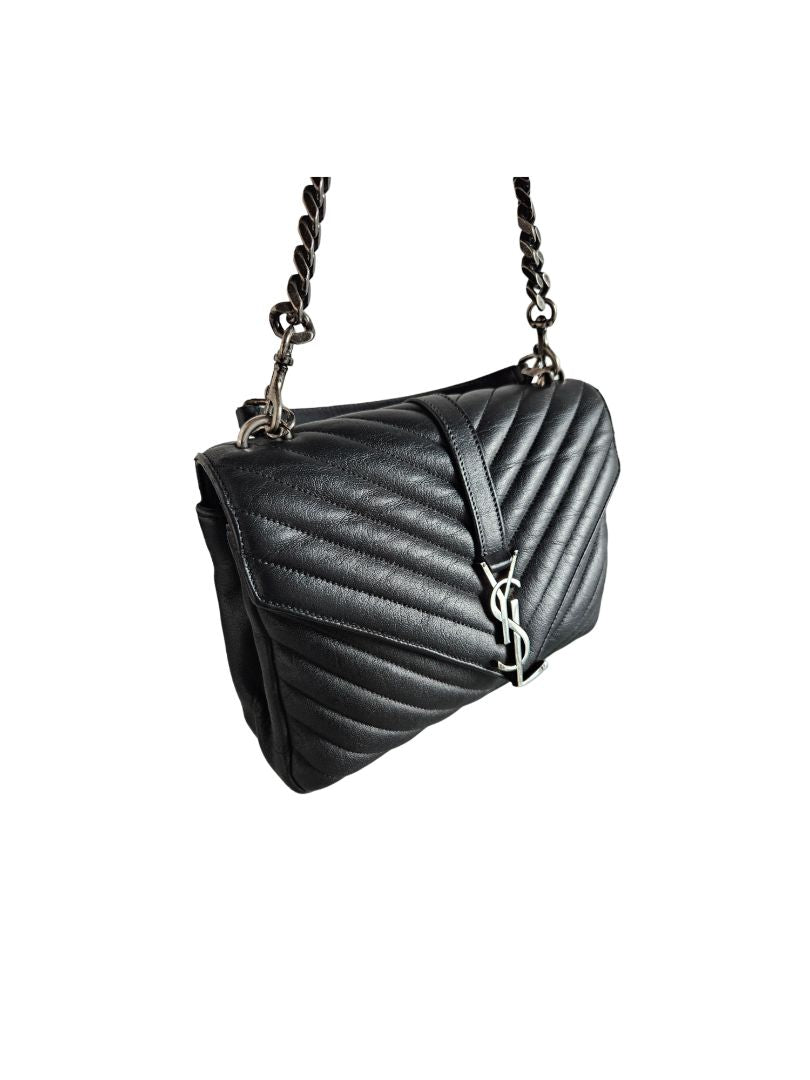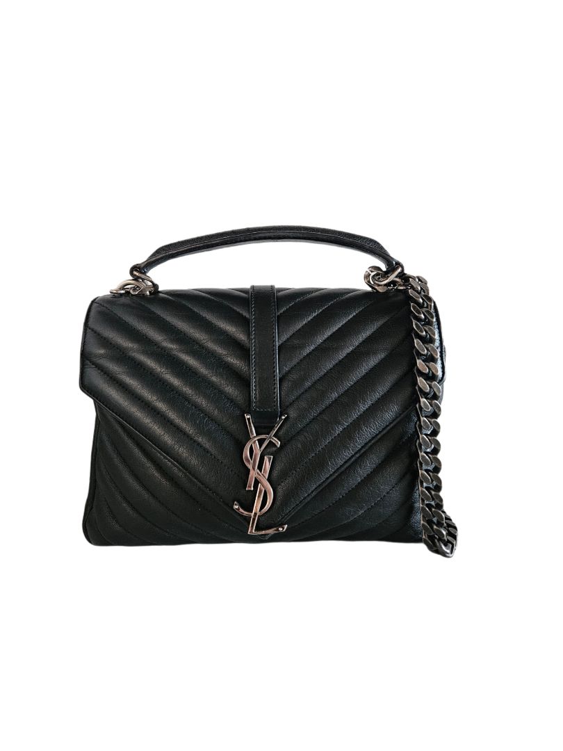Saint Laurent Black Leather Chevron Quilted Monogram College Flap Bag