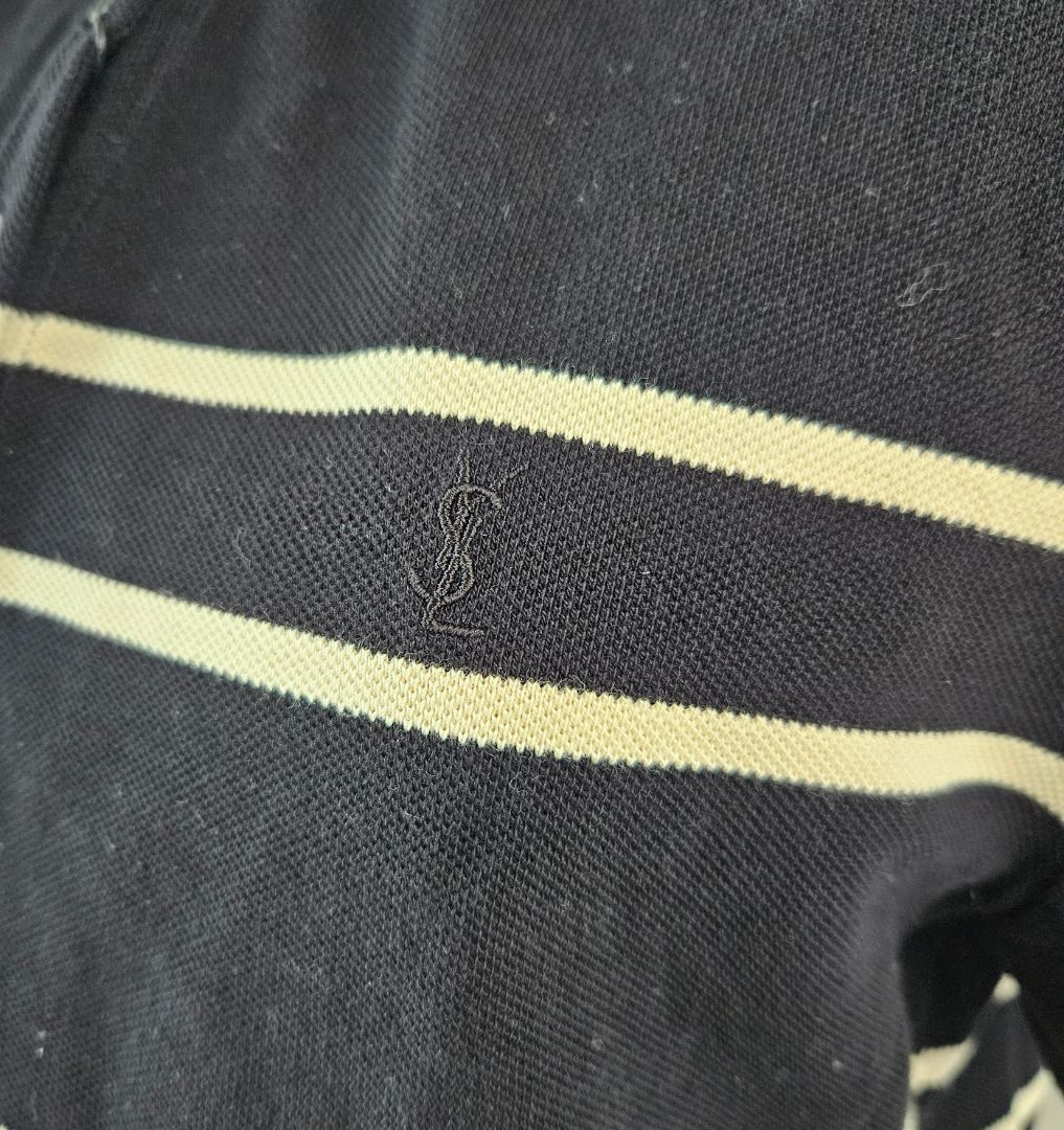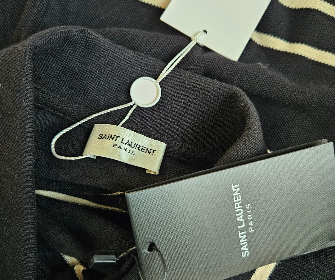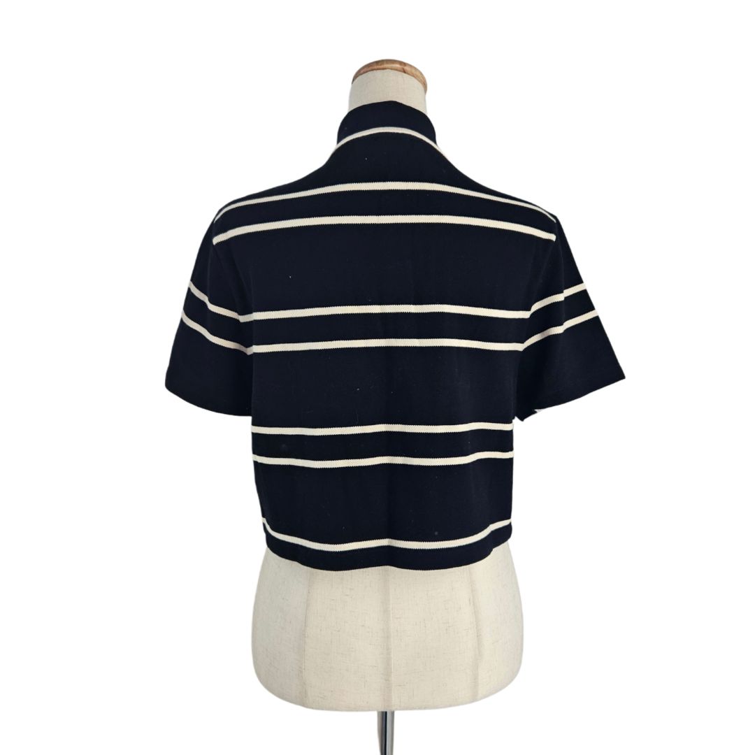 Saint Laurent Black & White Piqué Cropped Polo Shirt