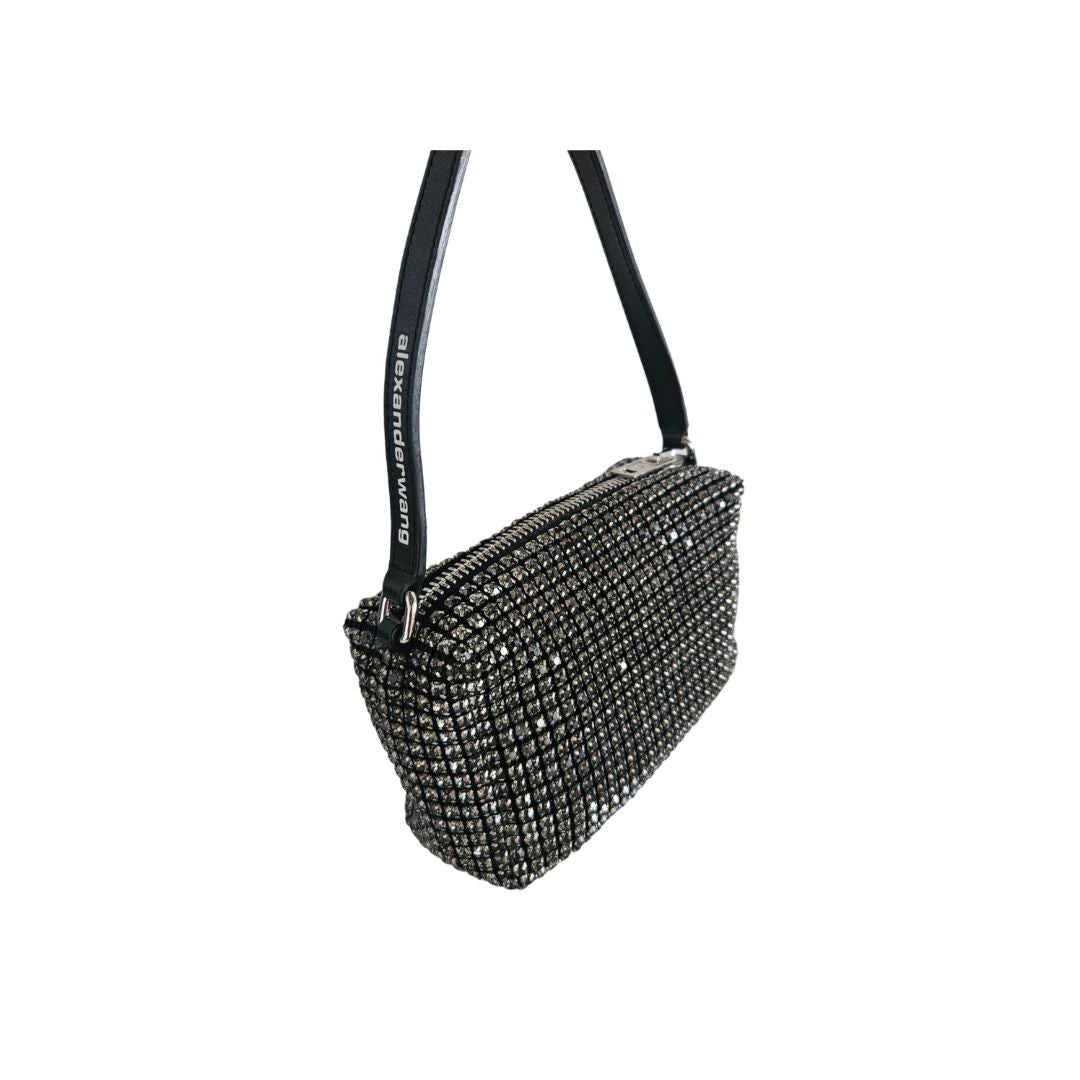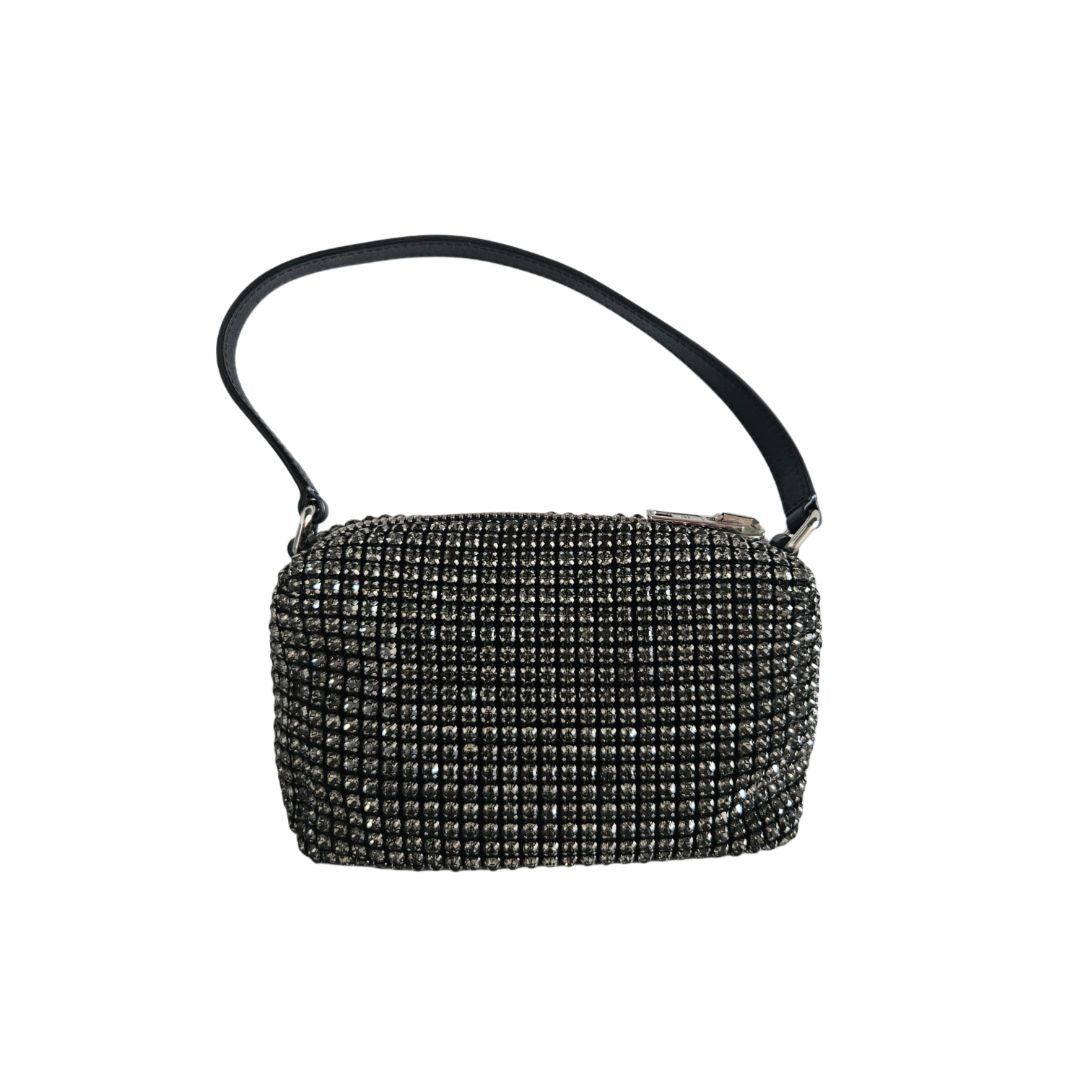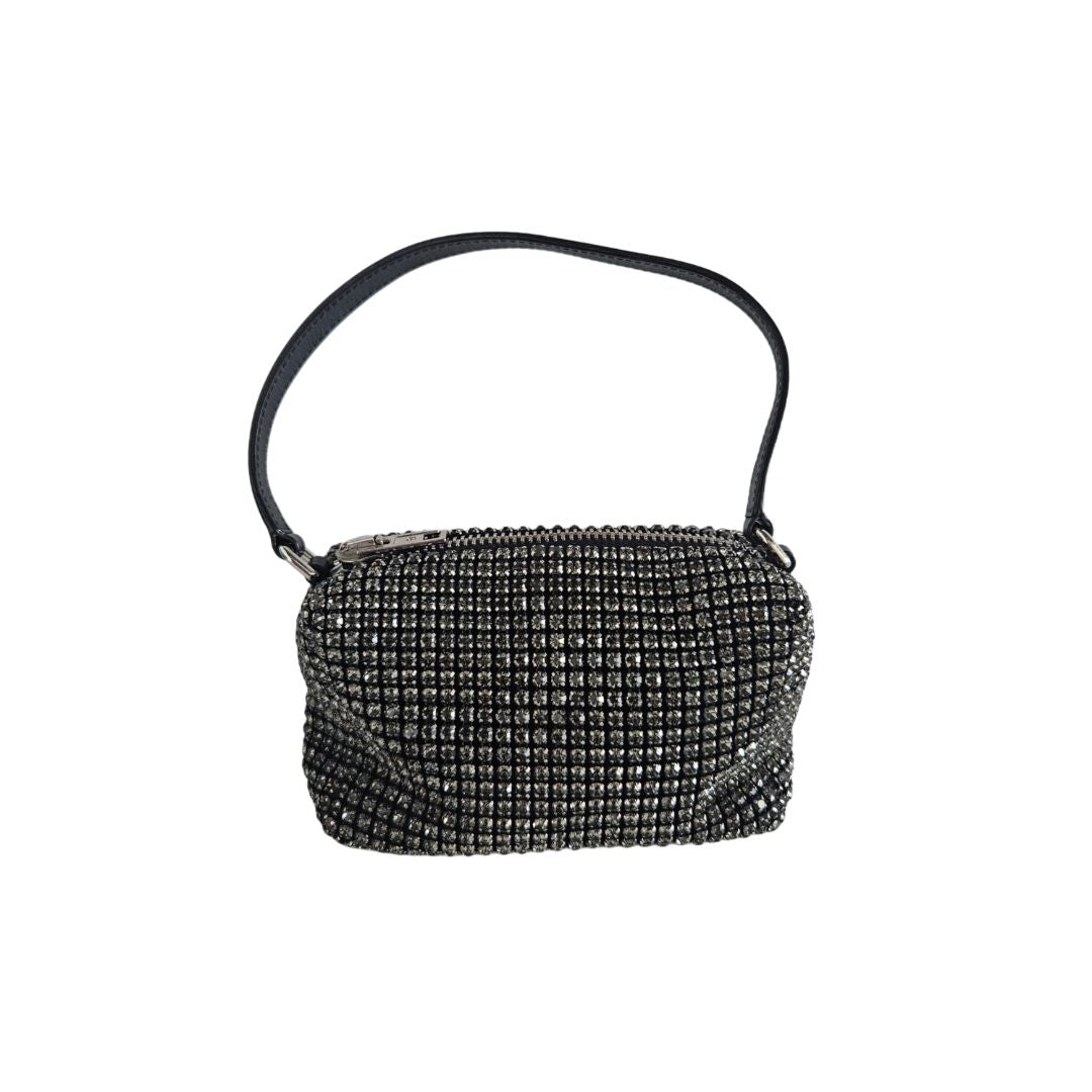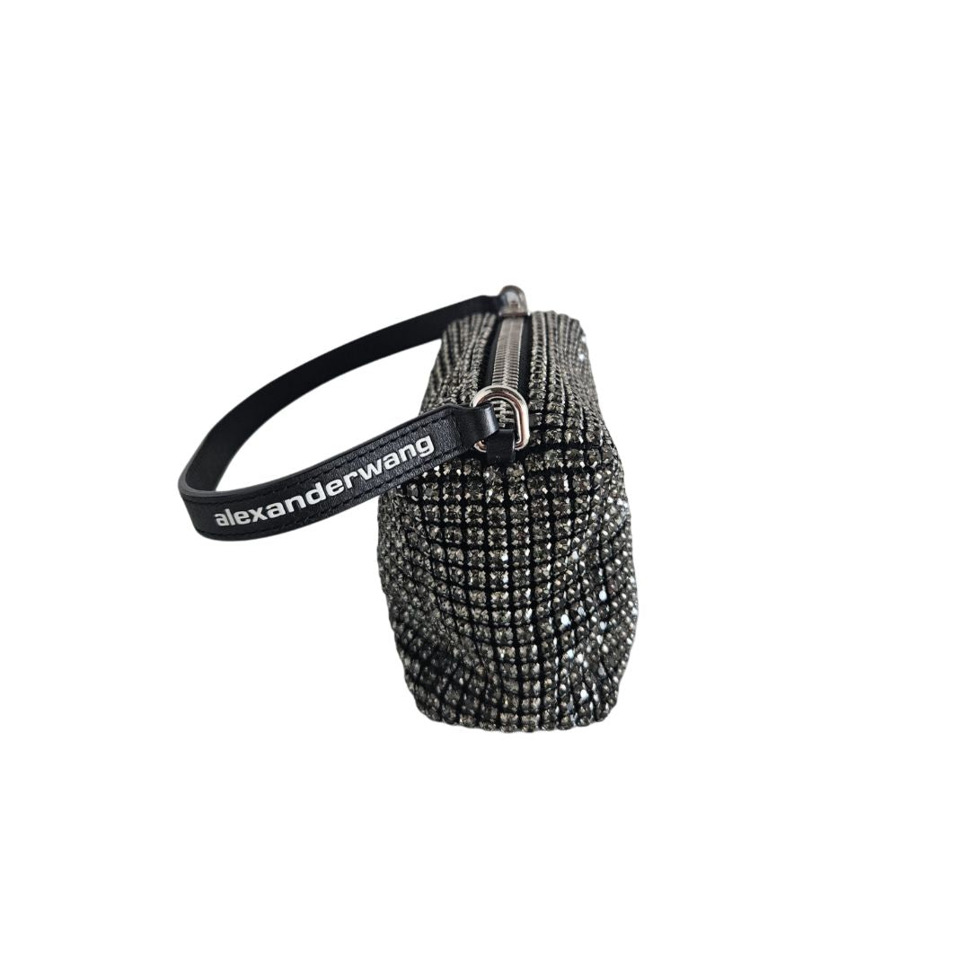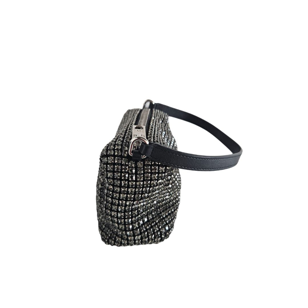 Alexander Wang Black Satin Crystal Embellished Clutch Bag