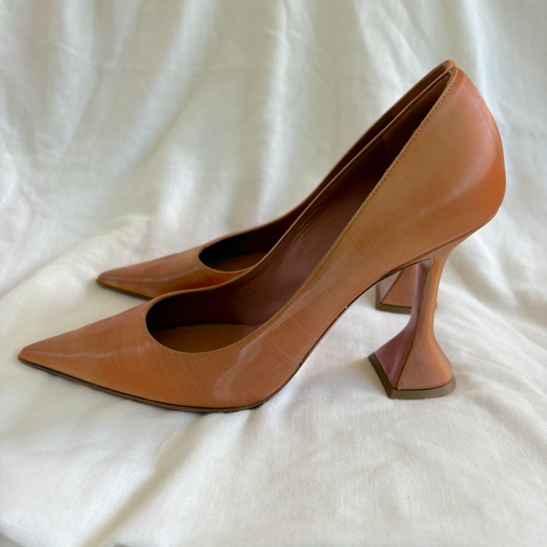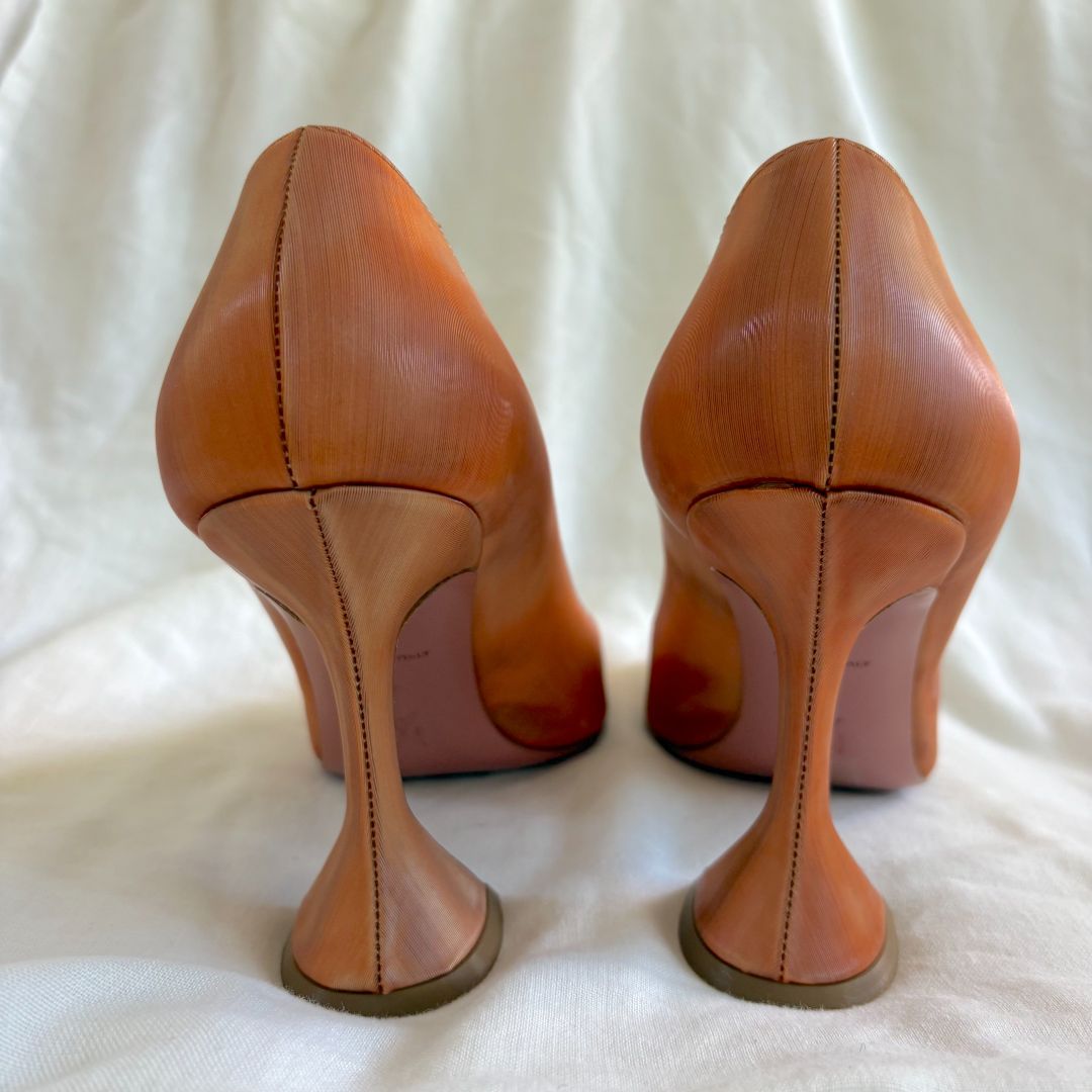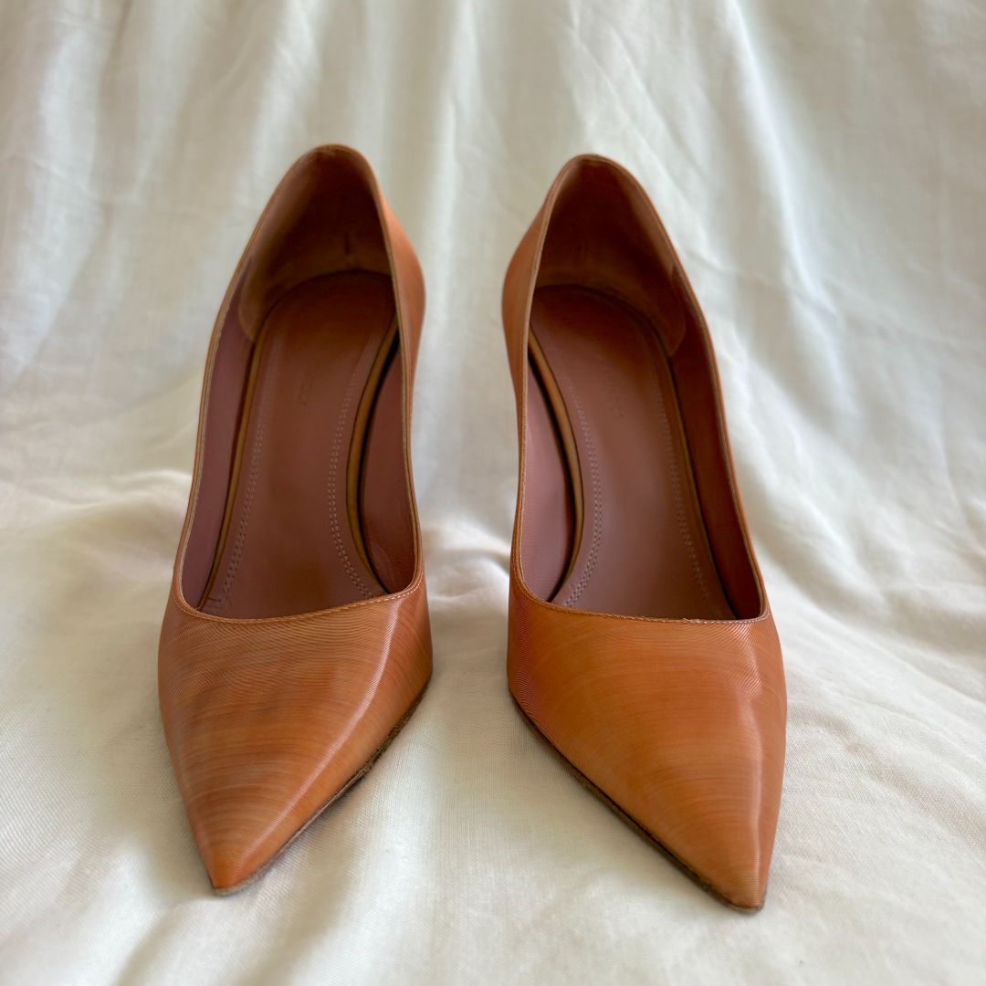 Amina Muaddi brown pointed toe pumps ridged multicolor, size 38